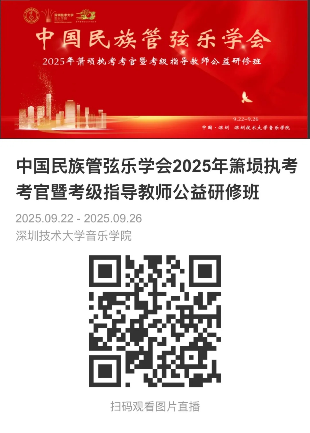 有幸参加2025年箫埙执考考官暨考级指导教师公益研修班,是一次人生难得的学习经历。五湖四海箫埙友人们齐聚一堂,不仅学习了技艺,更是感受到民乐艺术家们的对民乐传承的执着与创新发展的精神!“桦加沙”台风来袭,组委会克服重重困难,紧急调配设备,研习班第二天课程改为线上授课。老师们和学员们热情不减,更加珍惜这来之不易的学习机会。