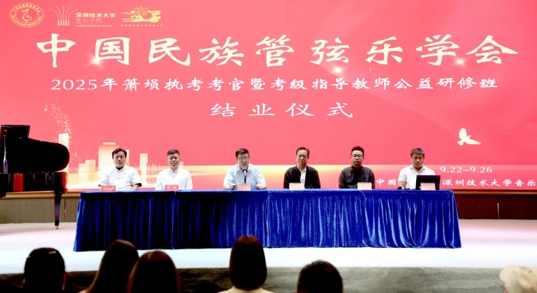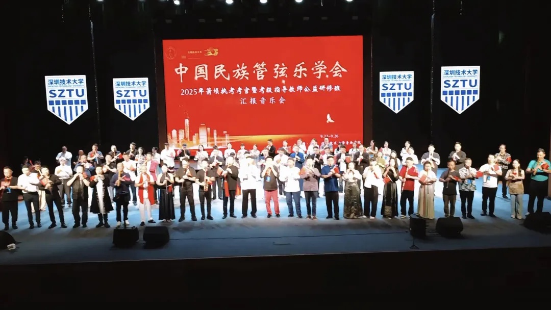 2025年9月22日至26日,由中国民族管弦乐学会主办、深圳技术大学音乐学院承办、深圳福田现代青年国乐团协办的“中国民族管弦乐学会2025箫埙执考考官暨考级指导教师公益研修班”在深圳技术大学成功举办。本次活动汇聚了全国80名箫埙从业者,通过名家讲座、技法精研、汇报音乐会等形式,系统推进箫埙艺术的教学与创新性传承。