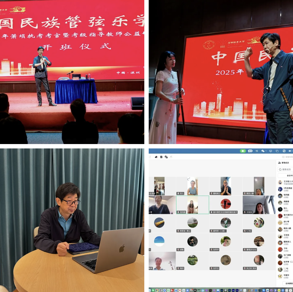 然研修方启,超强台风“桦加沙”突袭岭南,深圳启动“五停”应急响应。幸得现代科技之便,课堂瞬移云端,屏幕虽隔,教习不辍。诸师于线上细析考级评判标尺,辨析音色优劣之界;学员静听箴言,于风雨声中顿悟传承之责。天佑粤土,台风翌日转向。重聚校园时,指尖似萦古埙之清越,耳畔如绕雅箫之悠扬。方悟民乐精髓,技道合一,匠心独运。