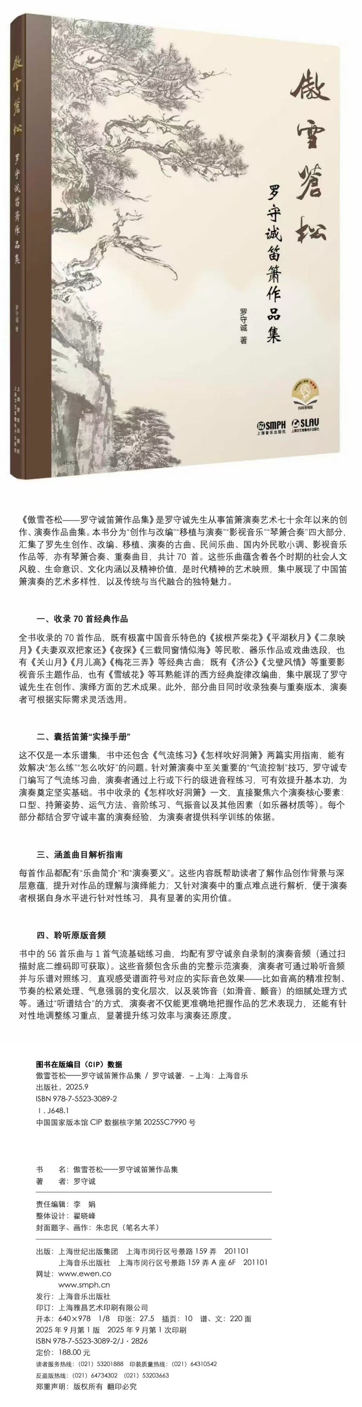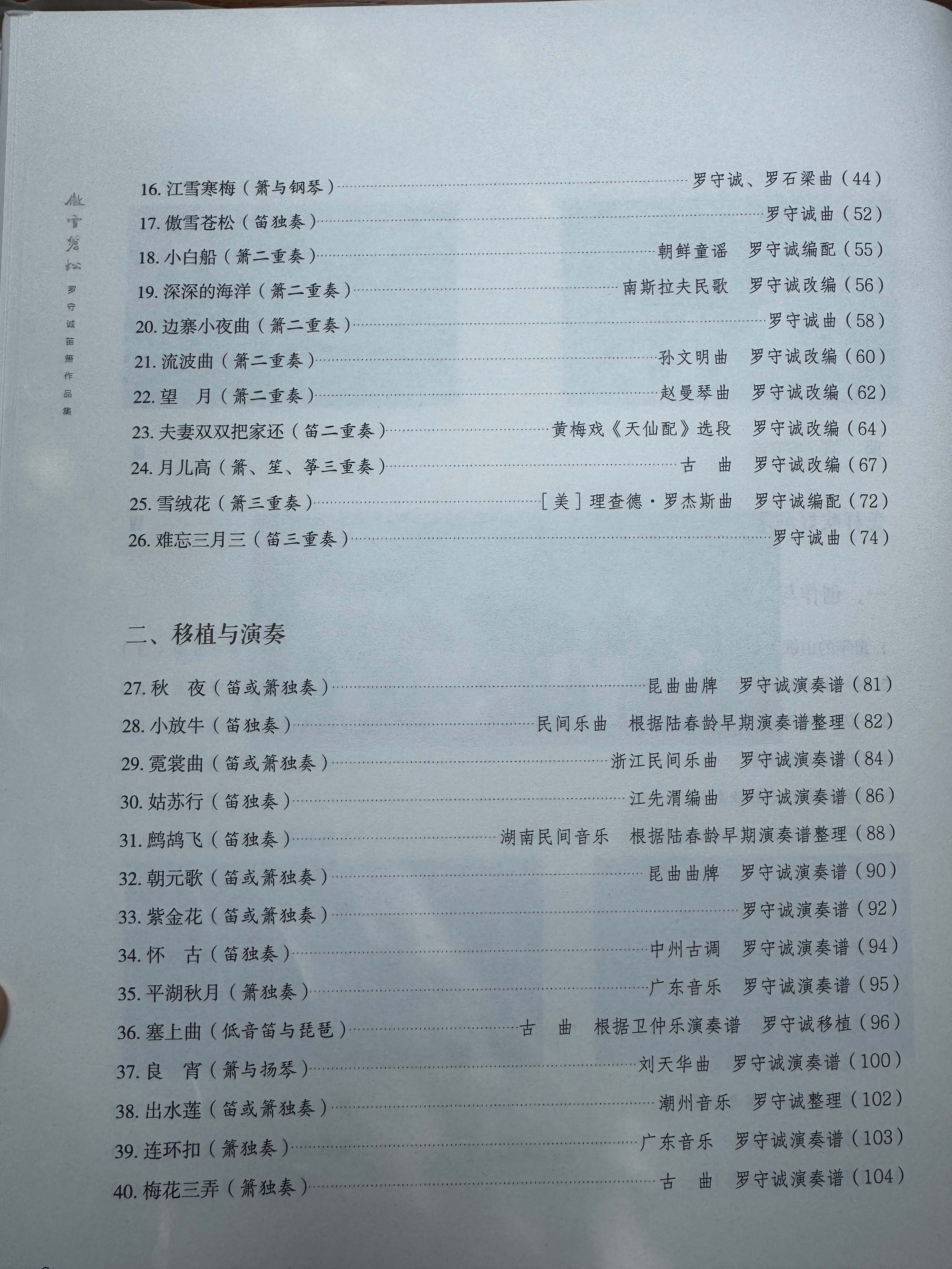 国庆第二天,惊喜收到了著名笛箫演奏家罗守诚先生亲笔签名的作品集《傲雪苍松——罗守诚笛箫作品集》(上海音乐出版社)!罗先生已届耄耋之年,这本著作满载着先生六七十年的艺术心血,格外珍贵。