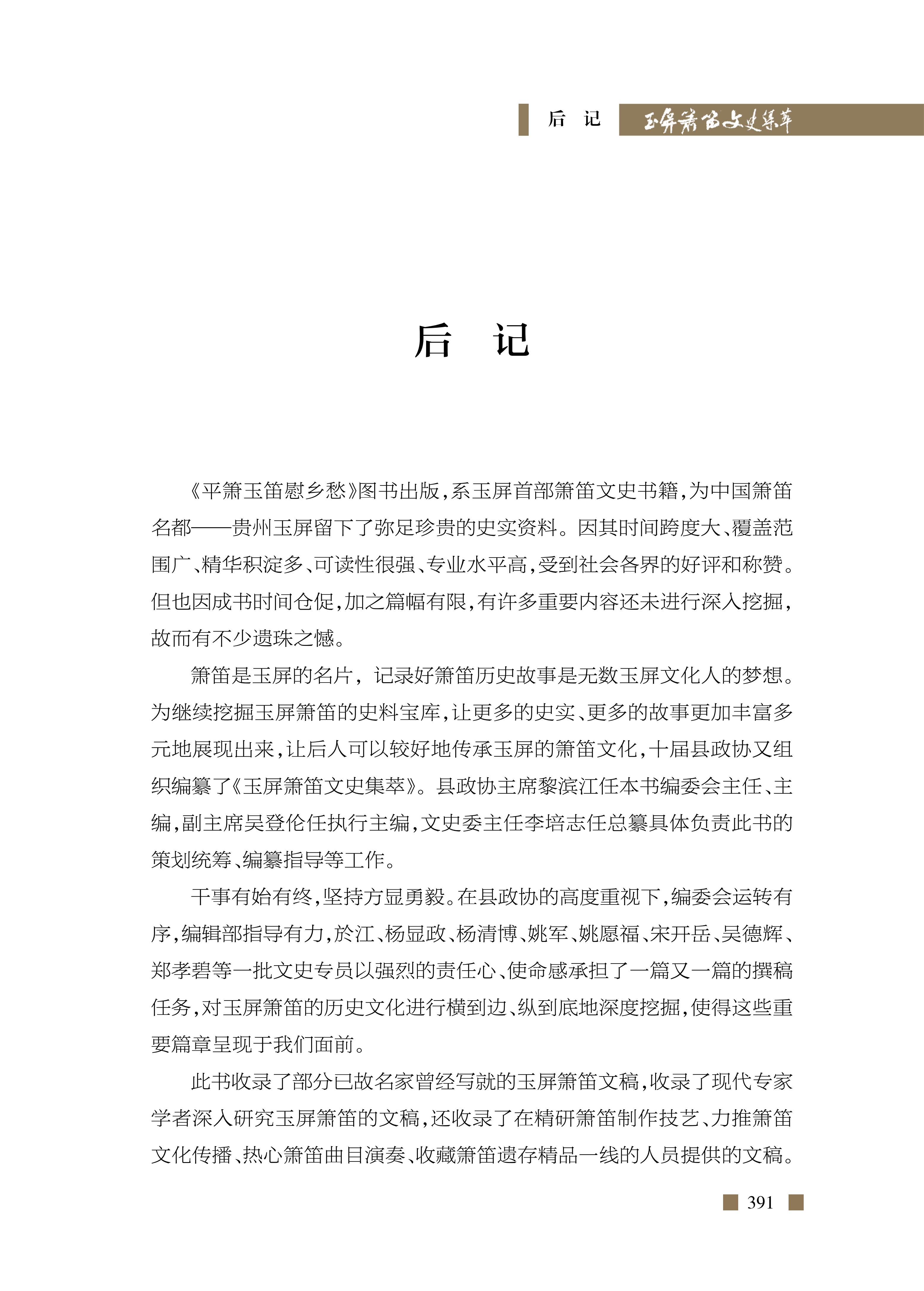 箫笛史话入籍来——《平箫玉笛慰乡愁》文史书籍编纂记事 李培志