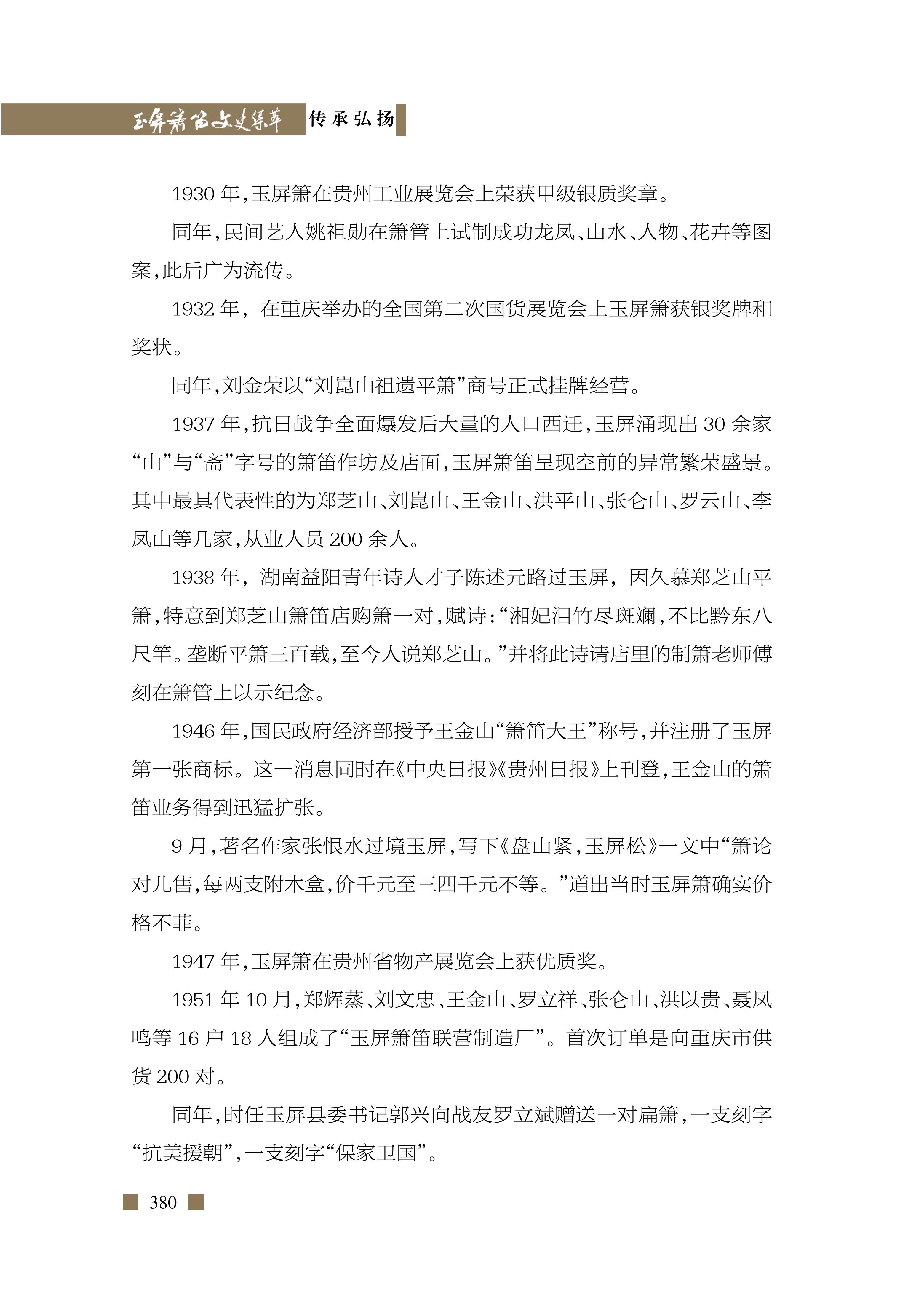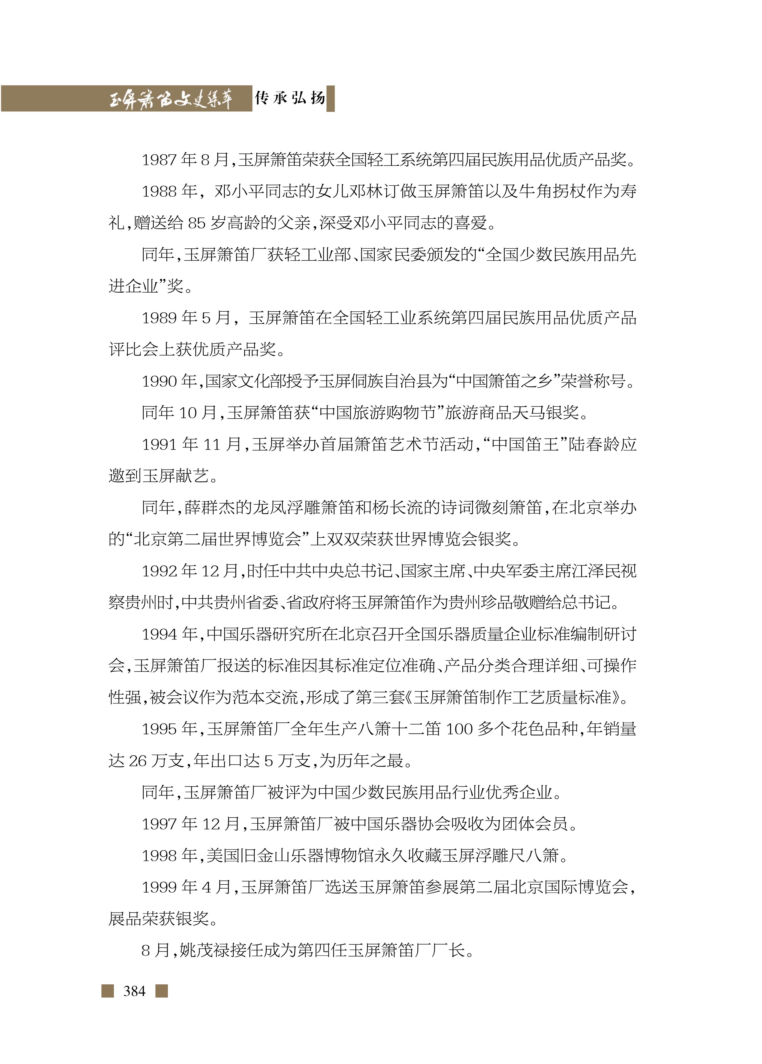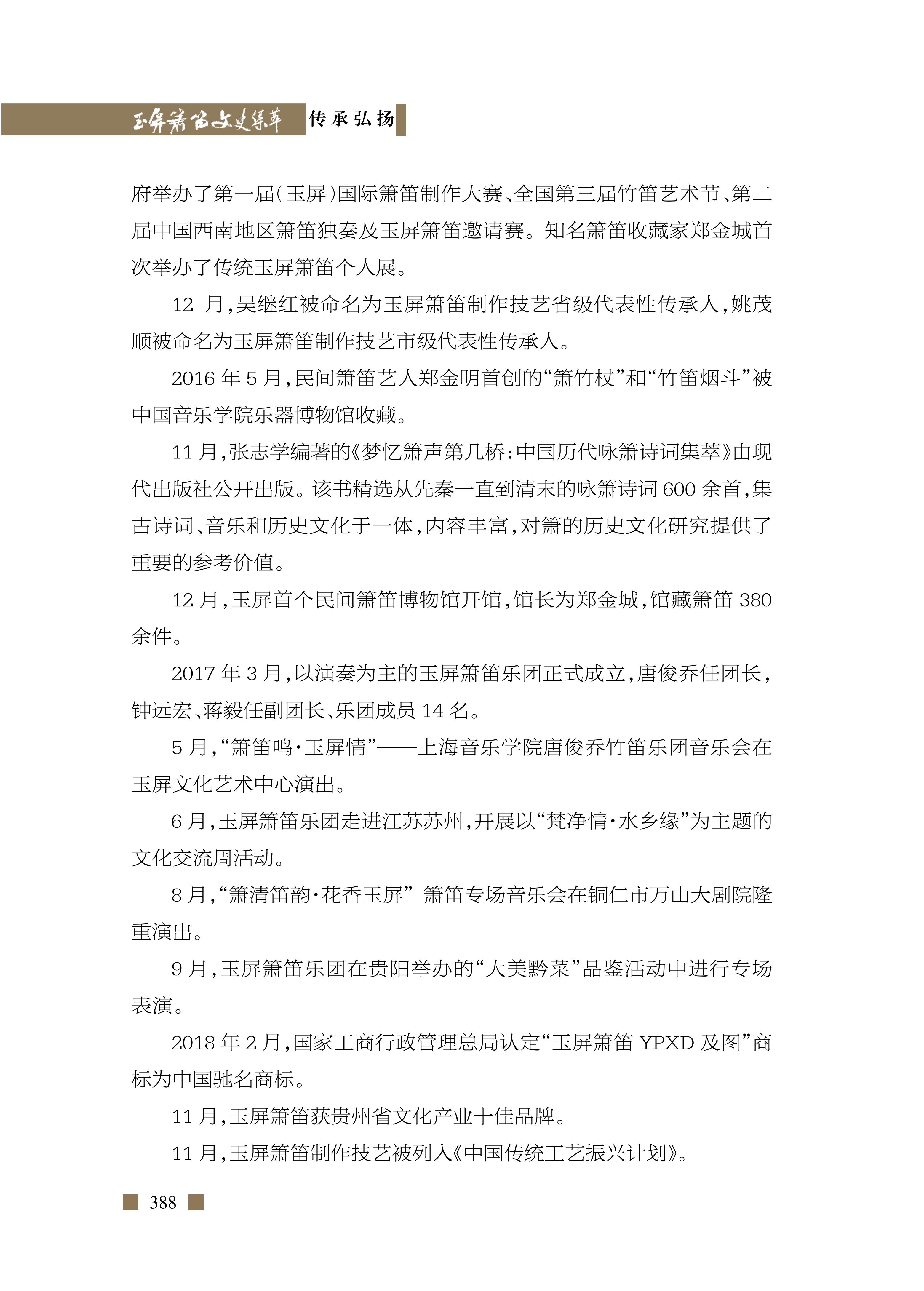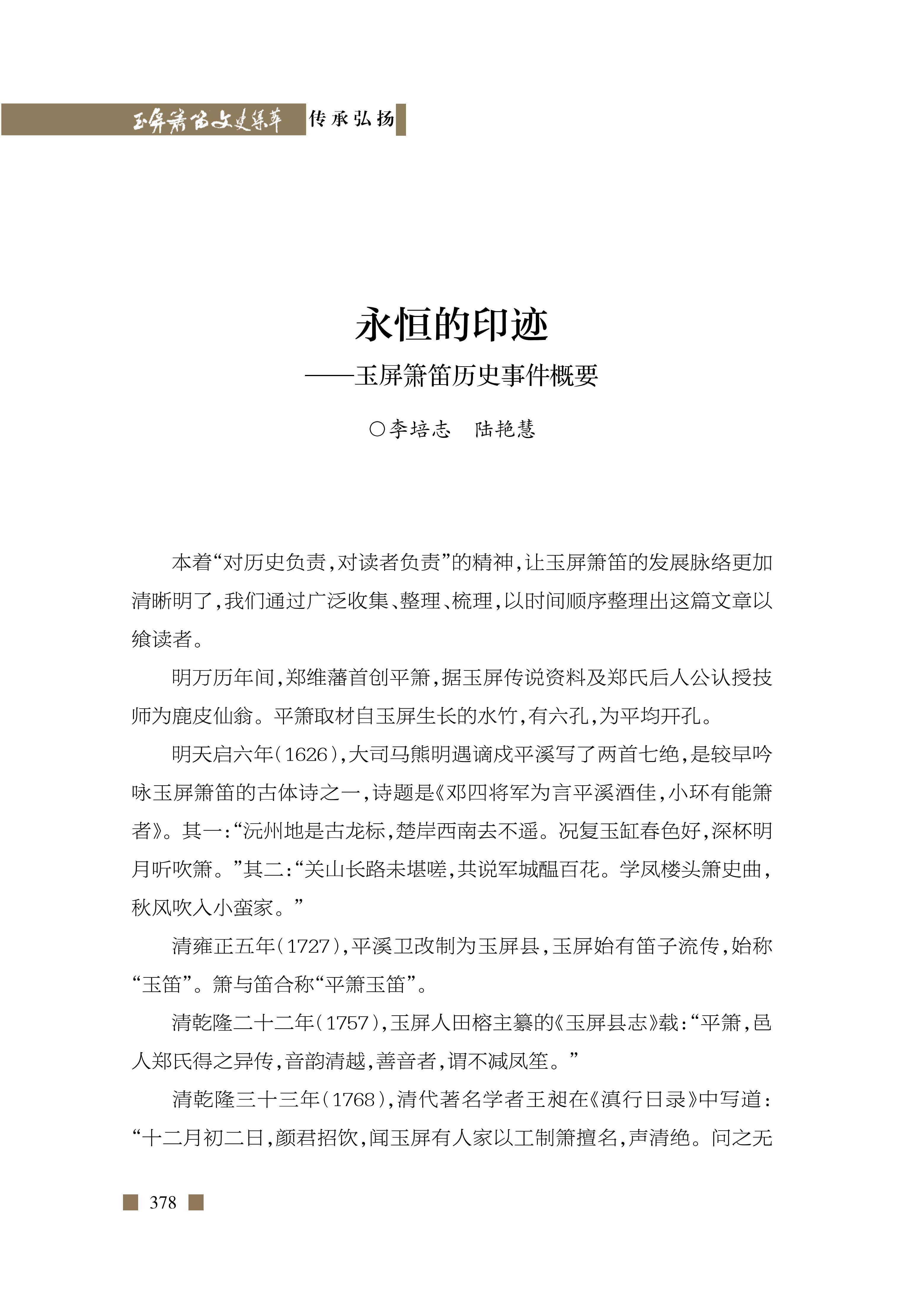 永恒的印迹——玉屏箫笛历史事件概要 李培志 陆艳慧《玉屏箫笛文史集萃》
