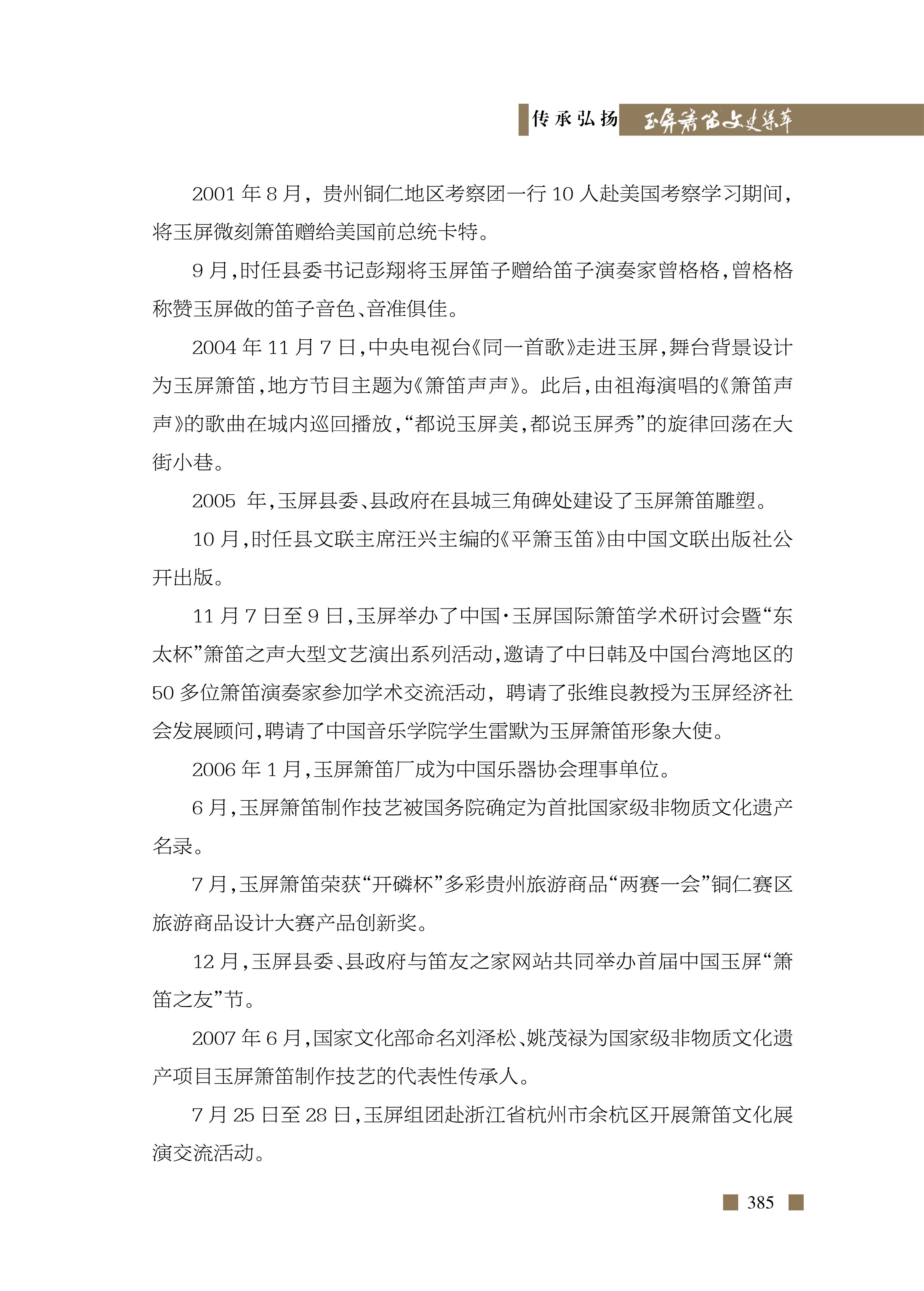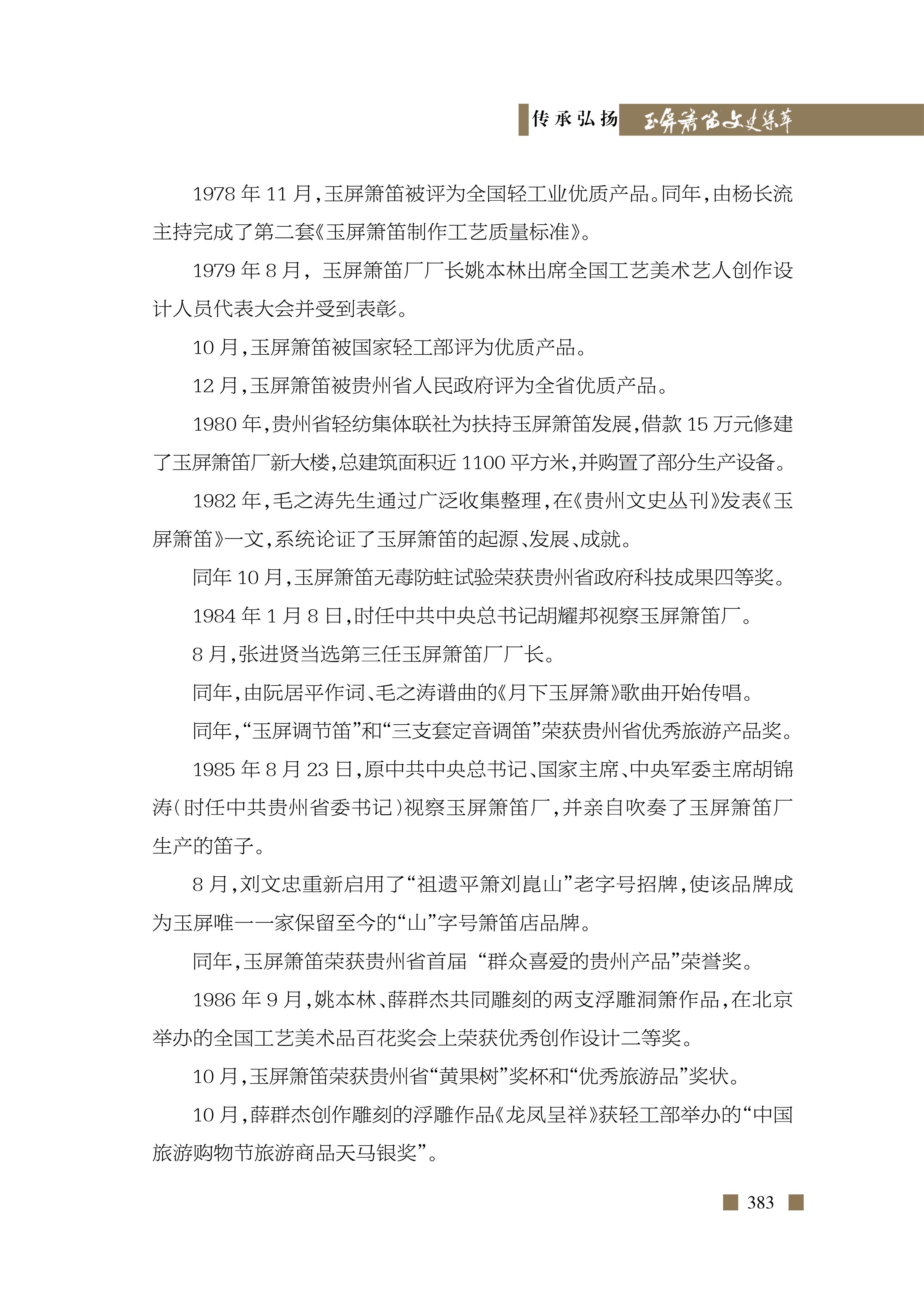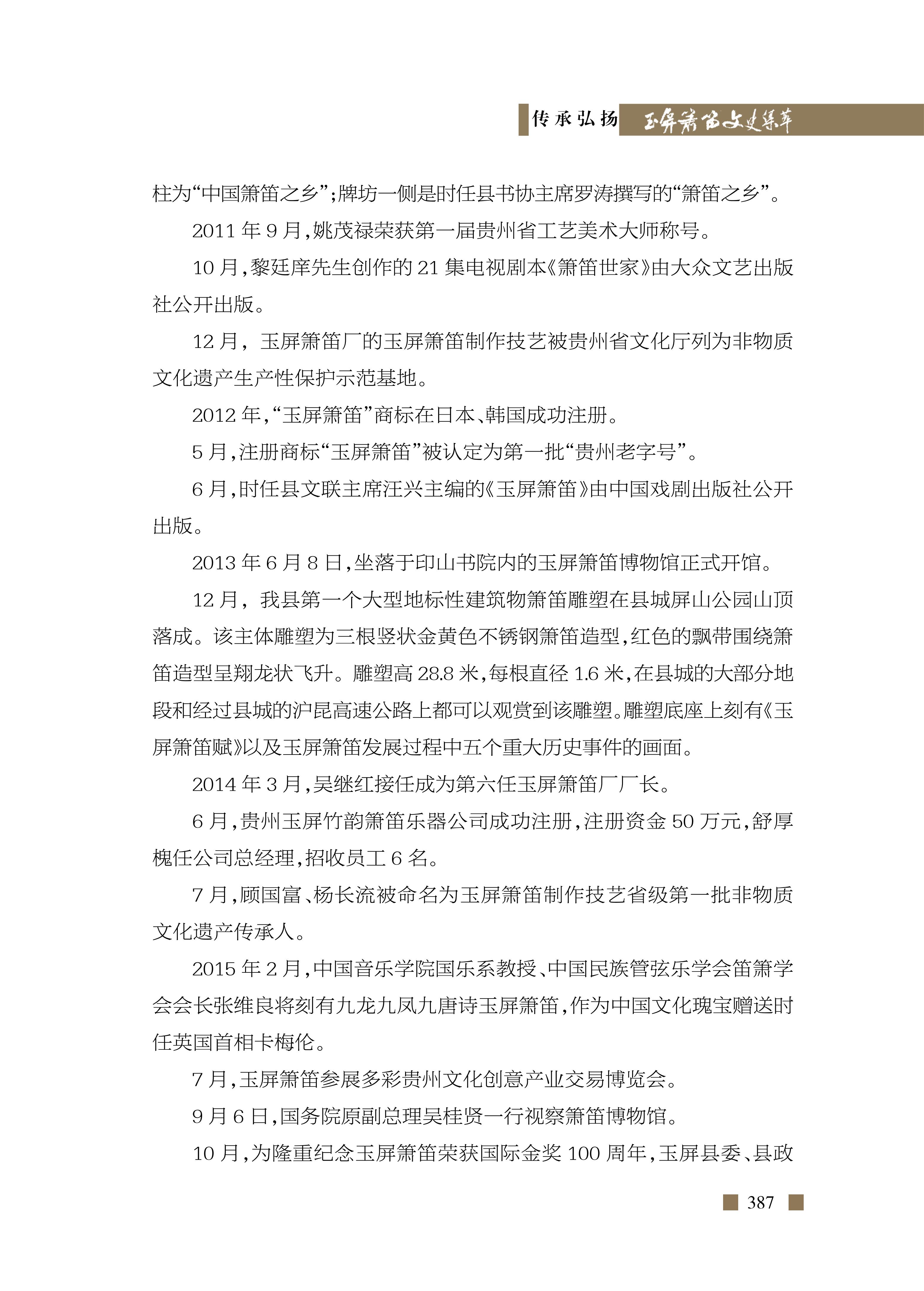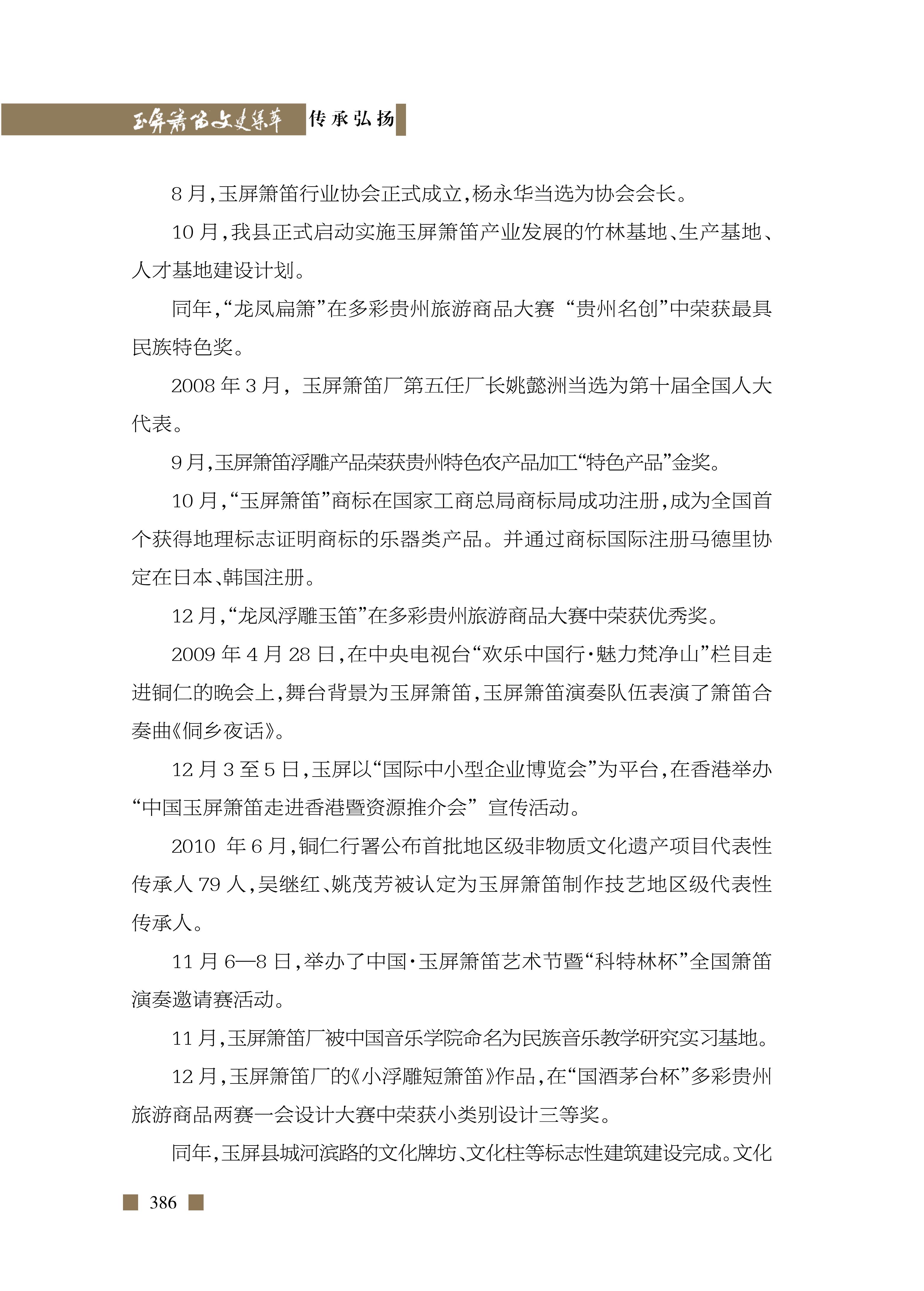 永恒的印迹——玉屏箫笛历史事件概要 李培志 陆艳慧《玉屏箫笛文史集萃》