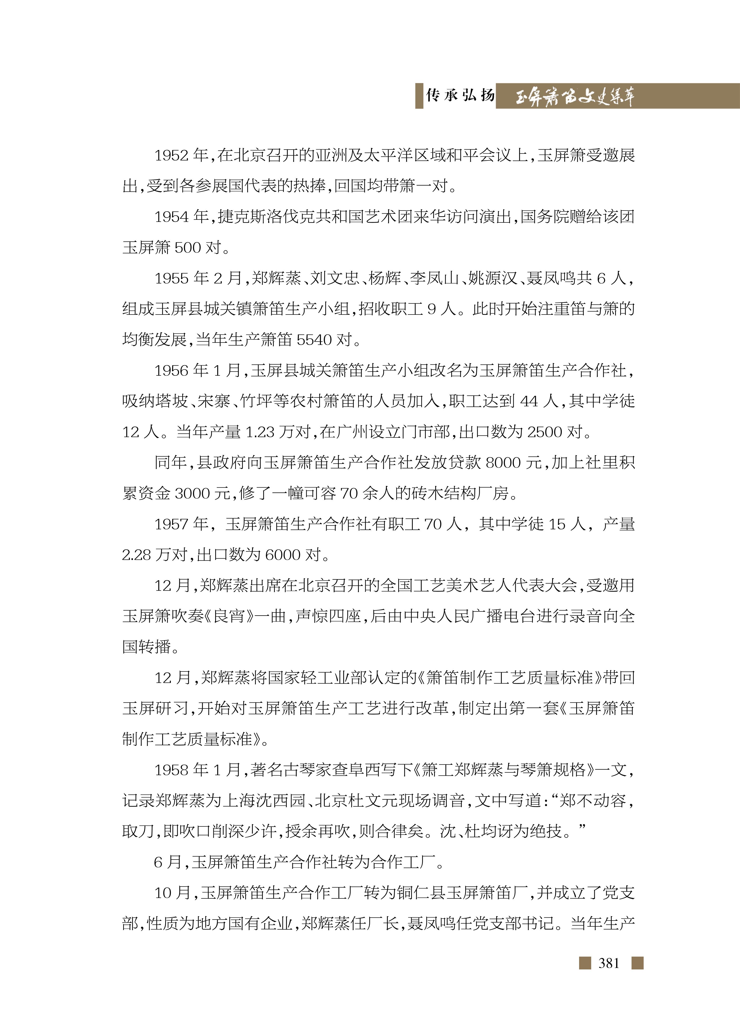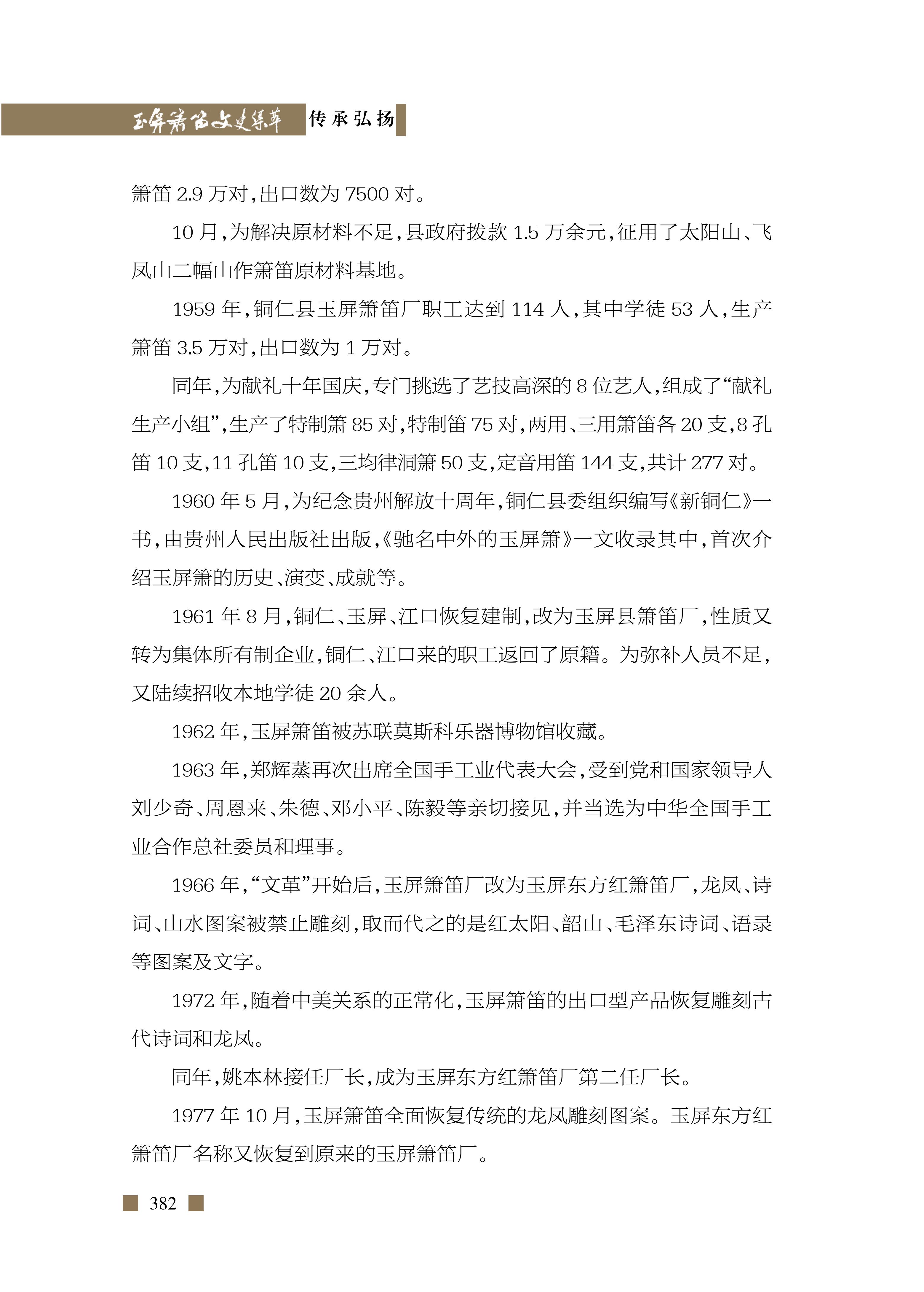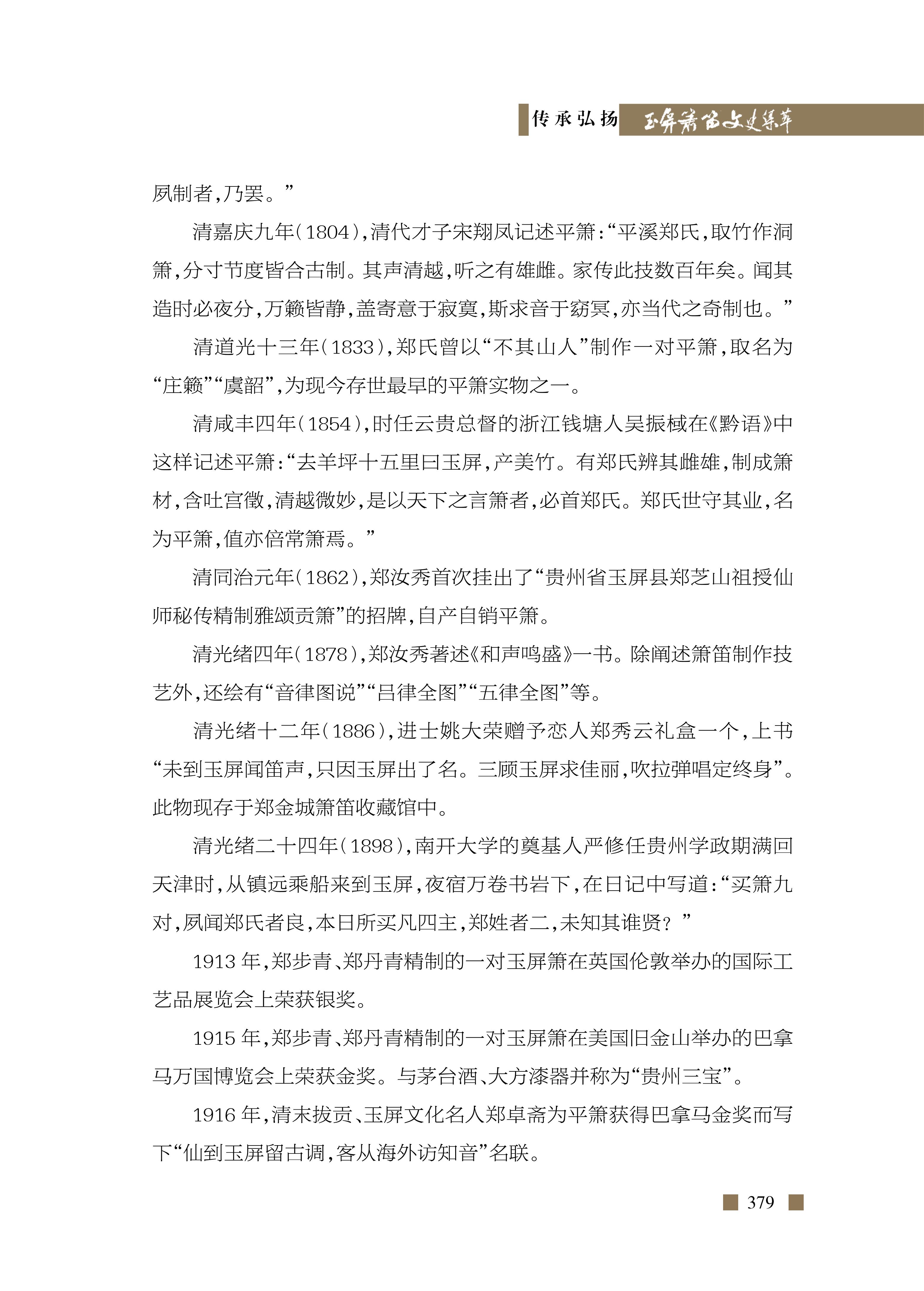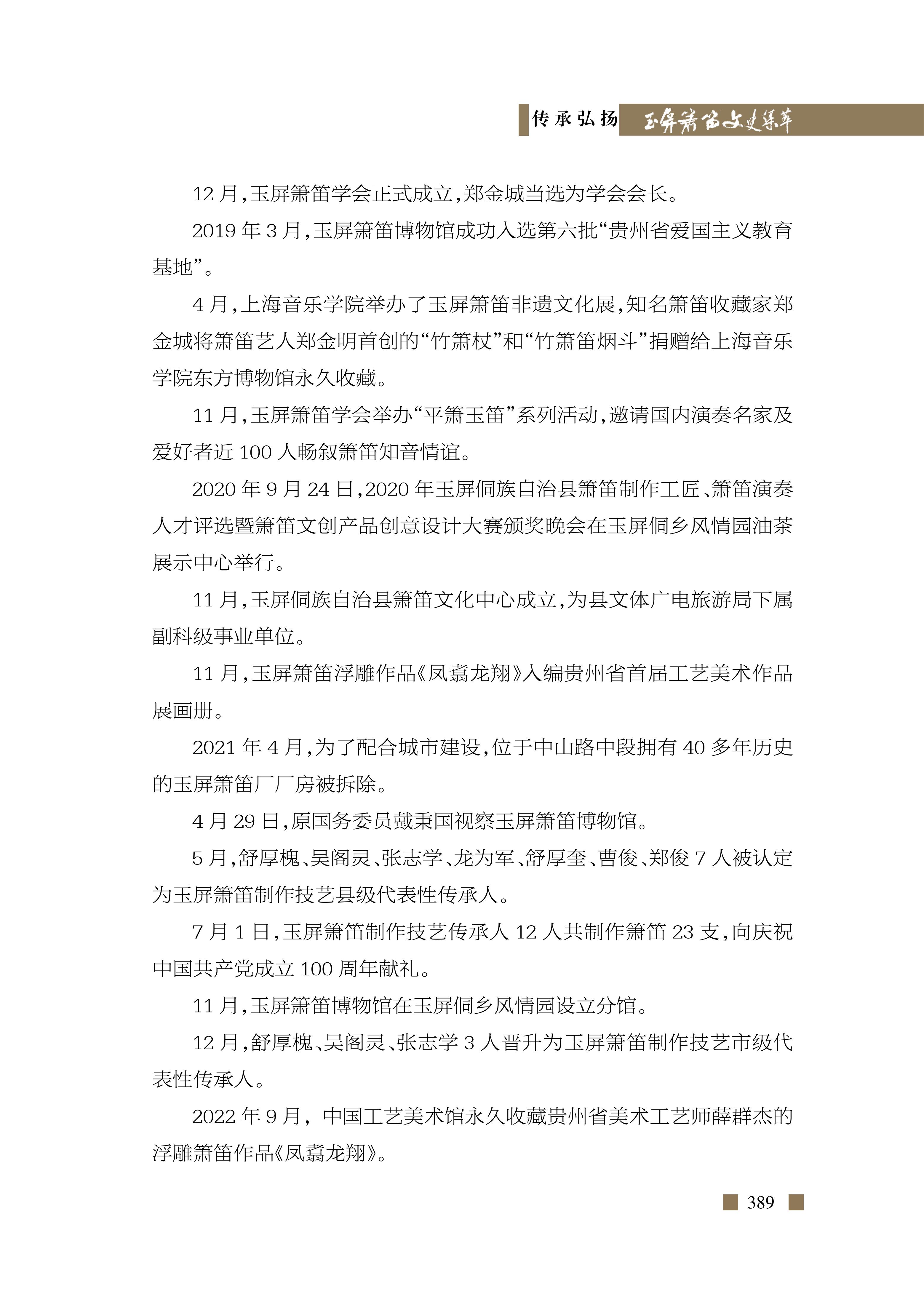 永恒的印迹——玉屏箫笛历史事件概要 李培志 陆艳慧《玉屏箫笛文史集萃》