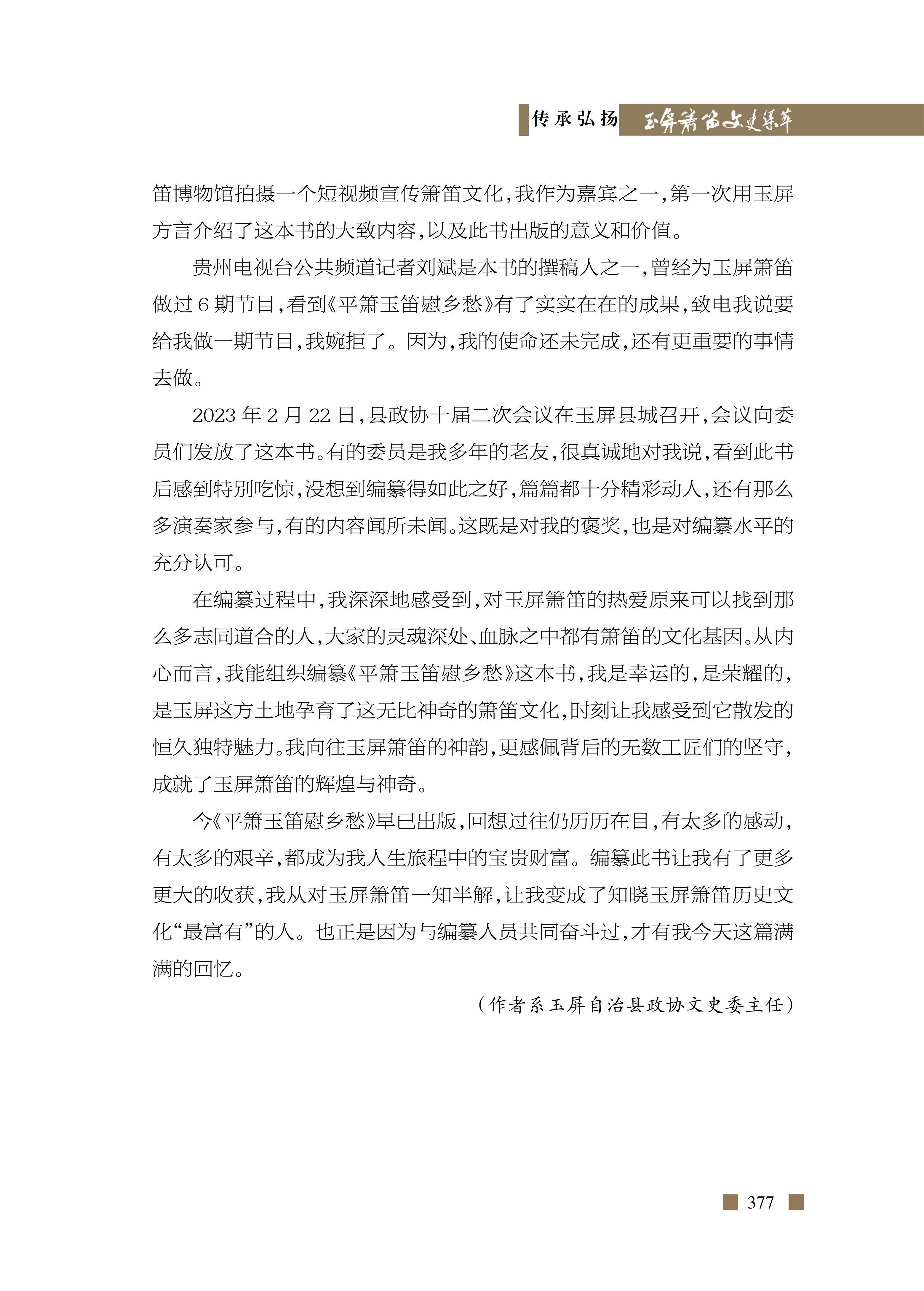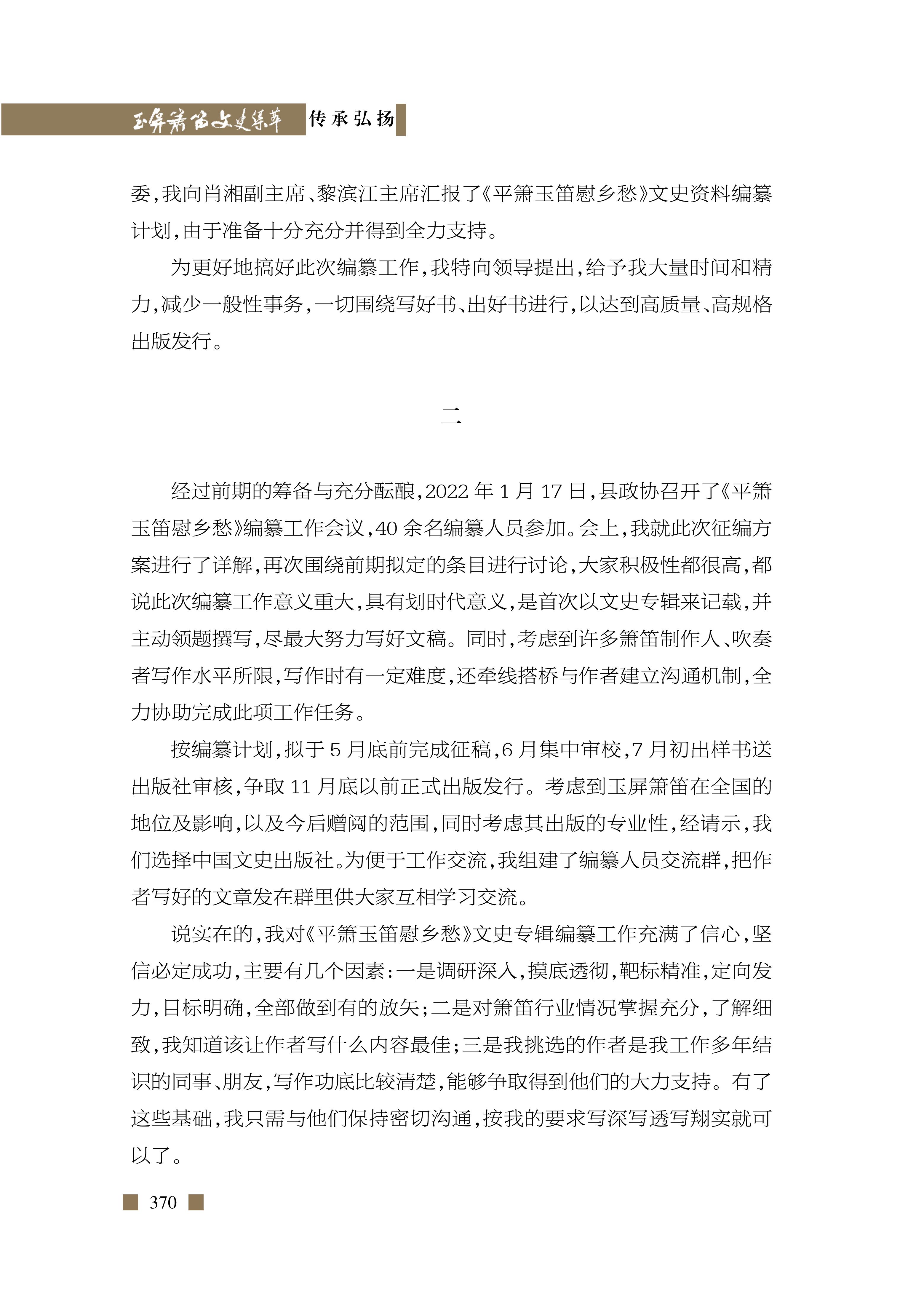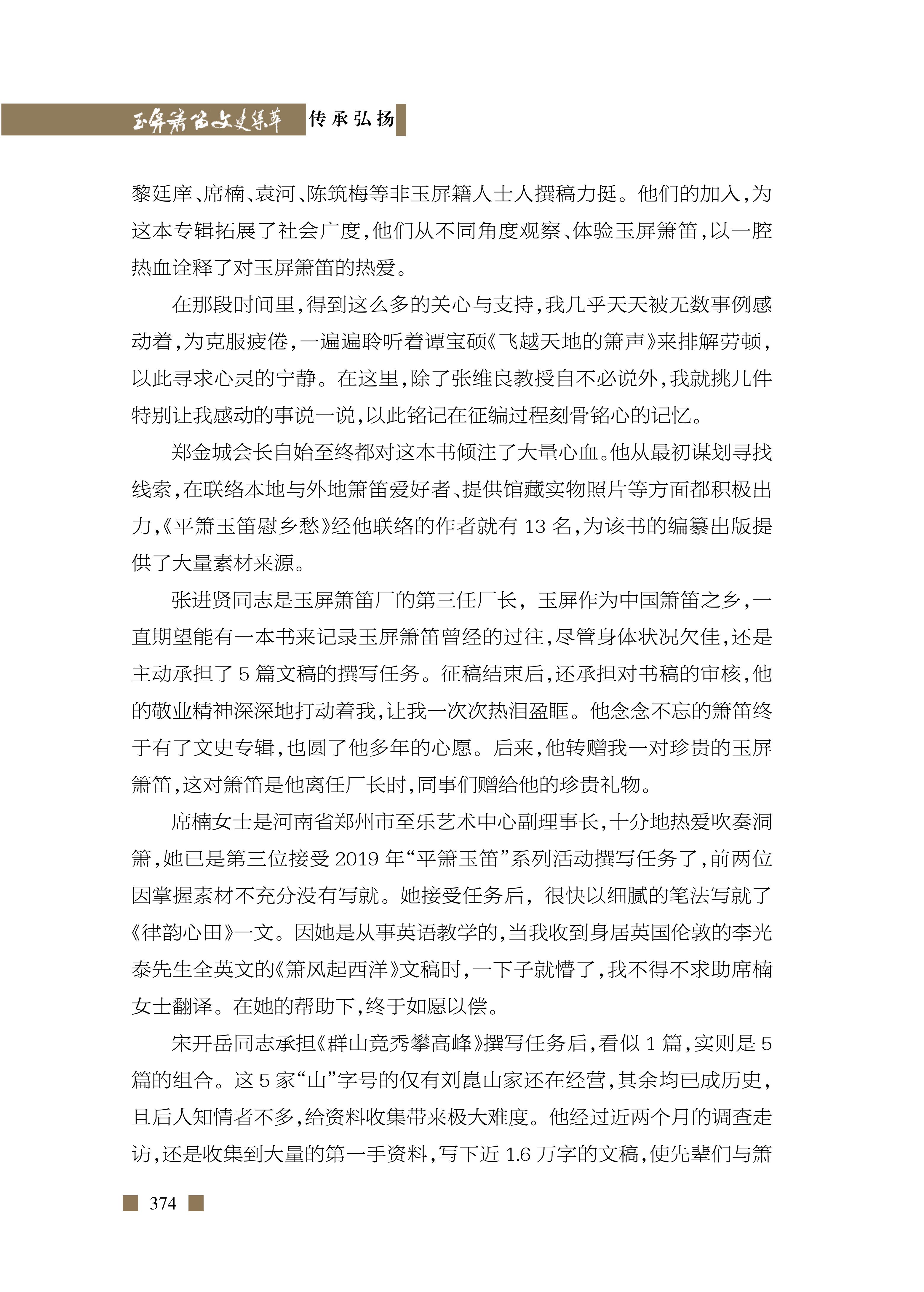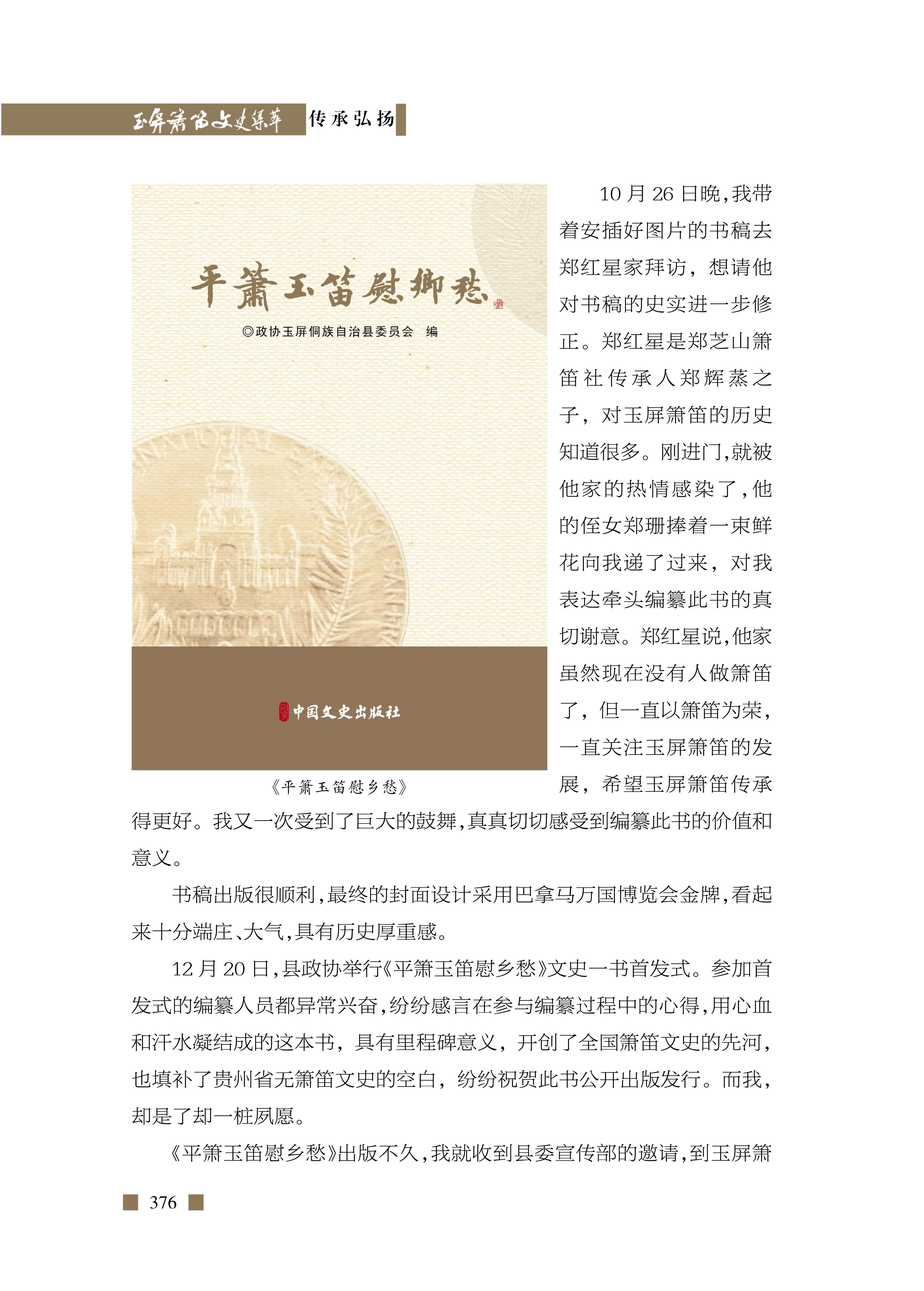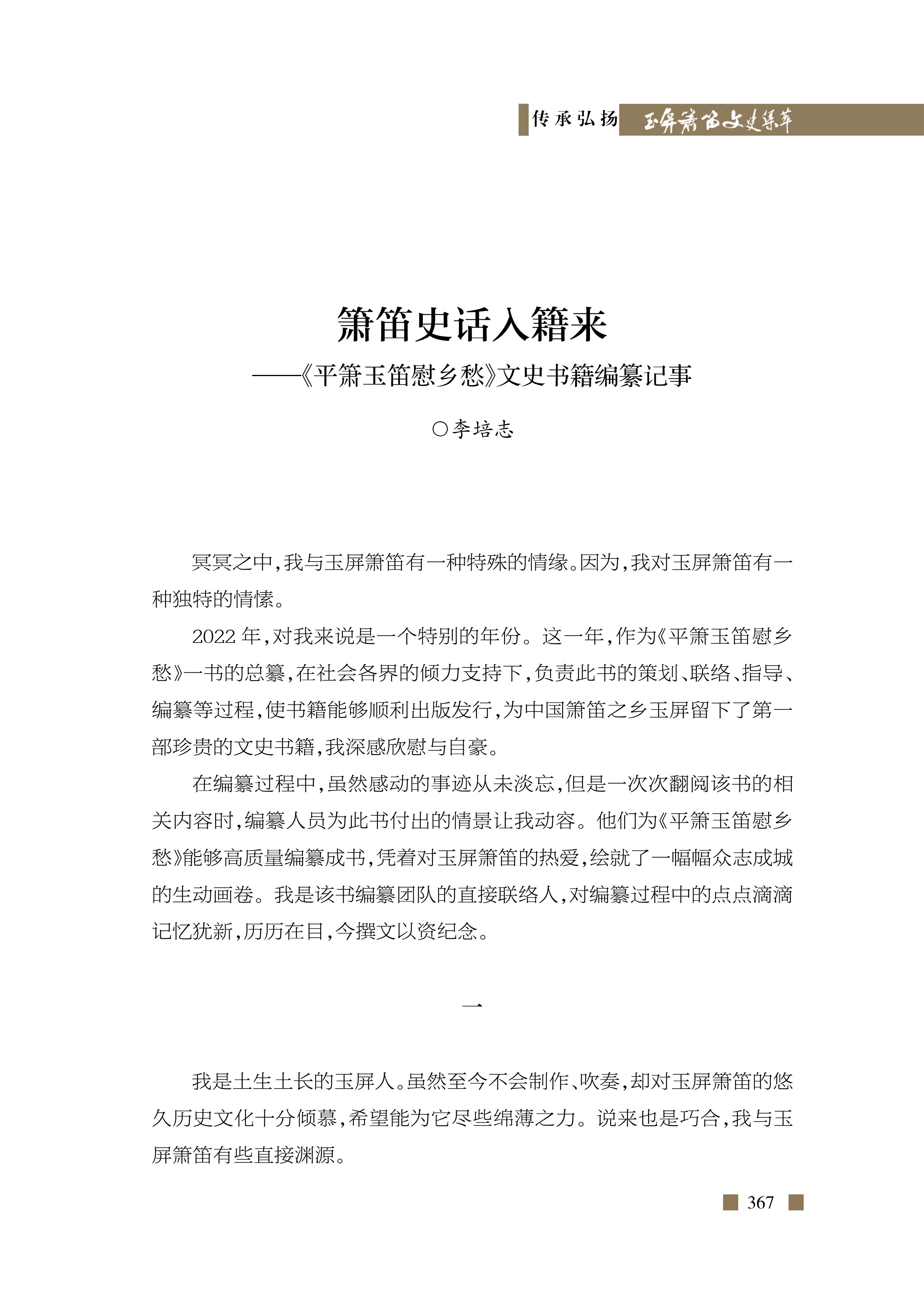 箫笛史话入籍来——《平箫玉笛慰乡愁》文史书籍编纂记事 李培志《玉屏箫笛文史集萃》