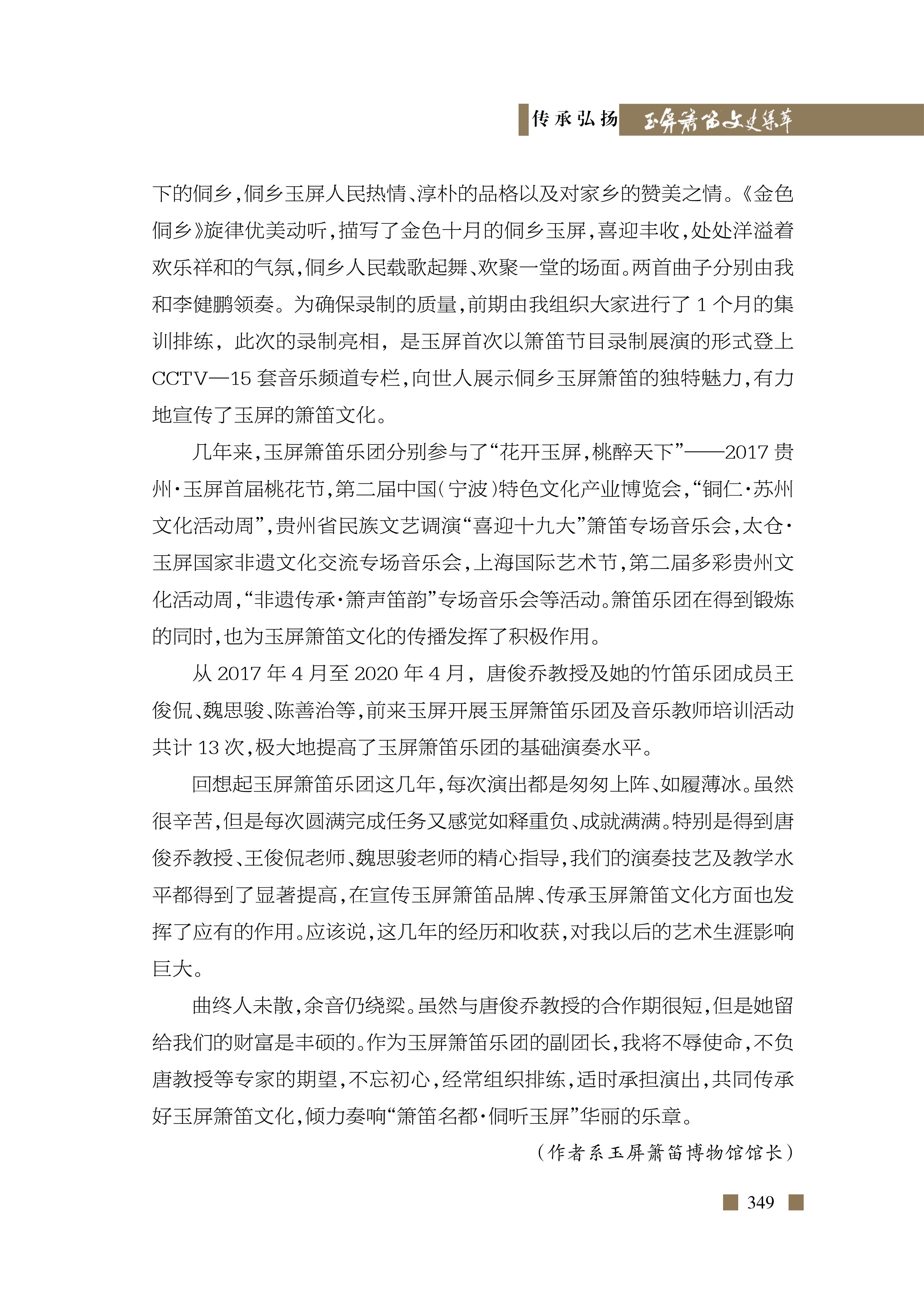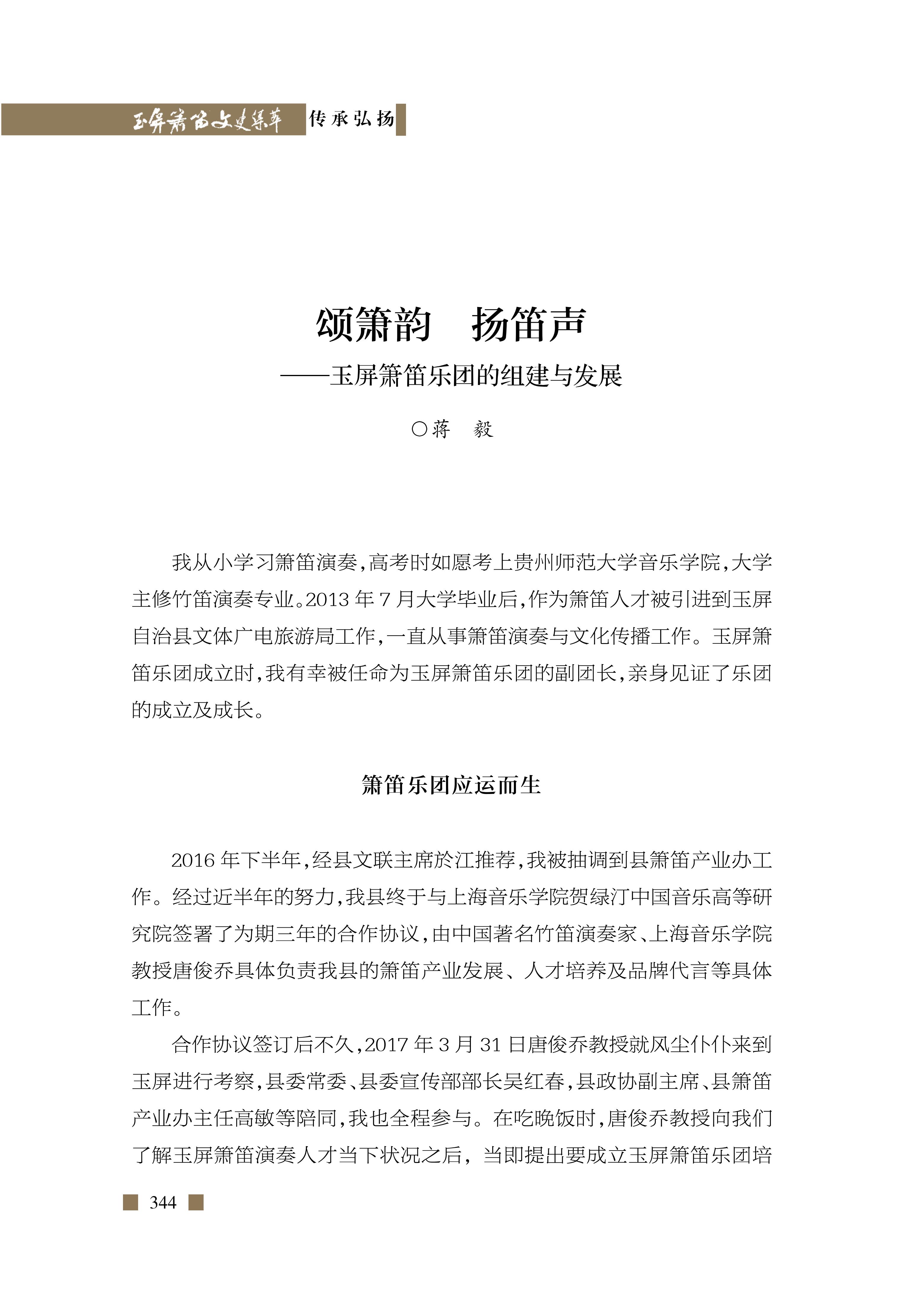 颂箫韵 扬笛声——玉屏箫笛乐团的组建与发展 蒋 毅《玉屏箫笛文史集萃》