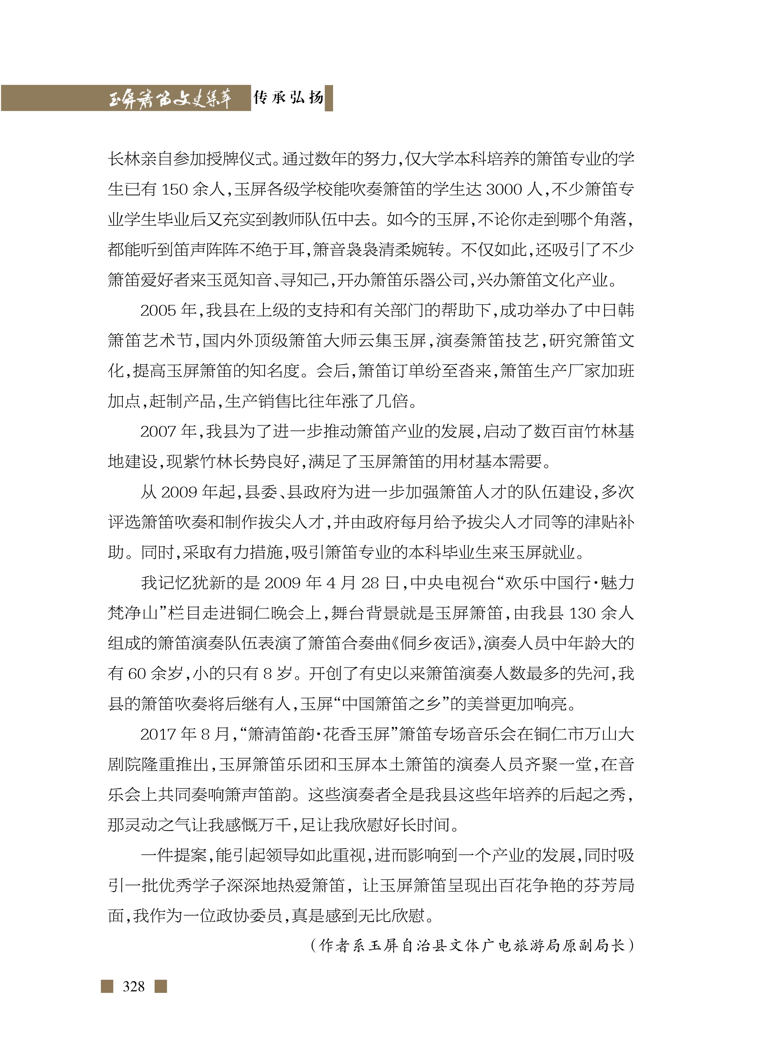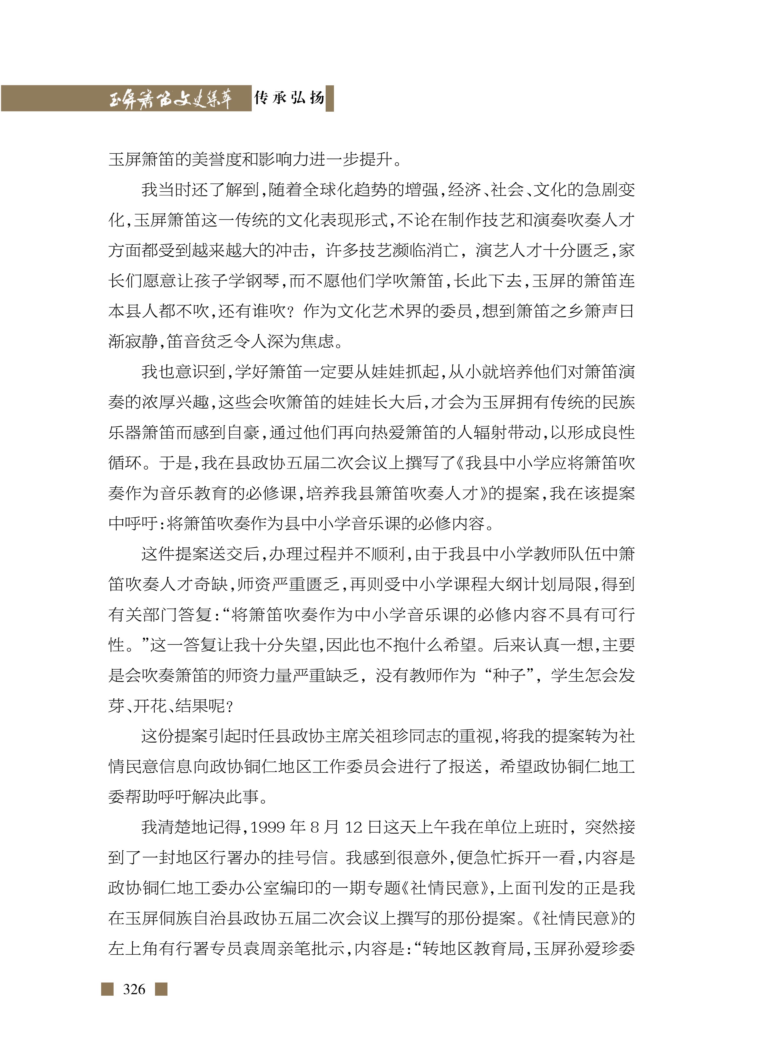 政协提案让箫笛文化在玉屏校园传承 孙爱珍《玉屏箫笛文史集萃》