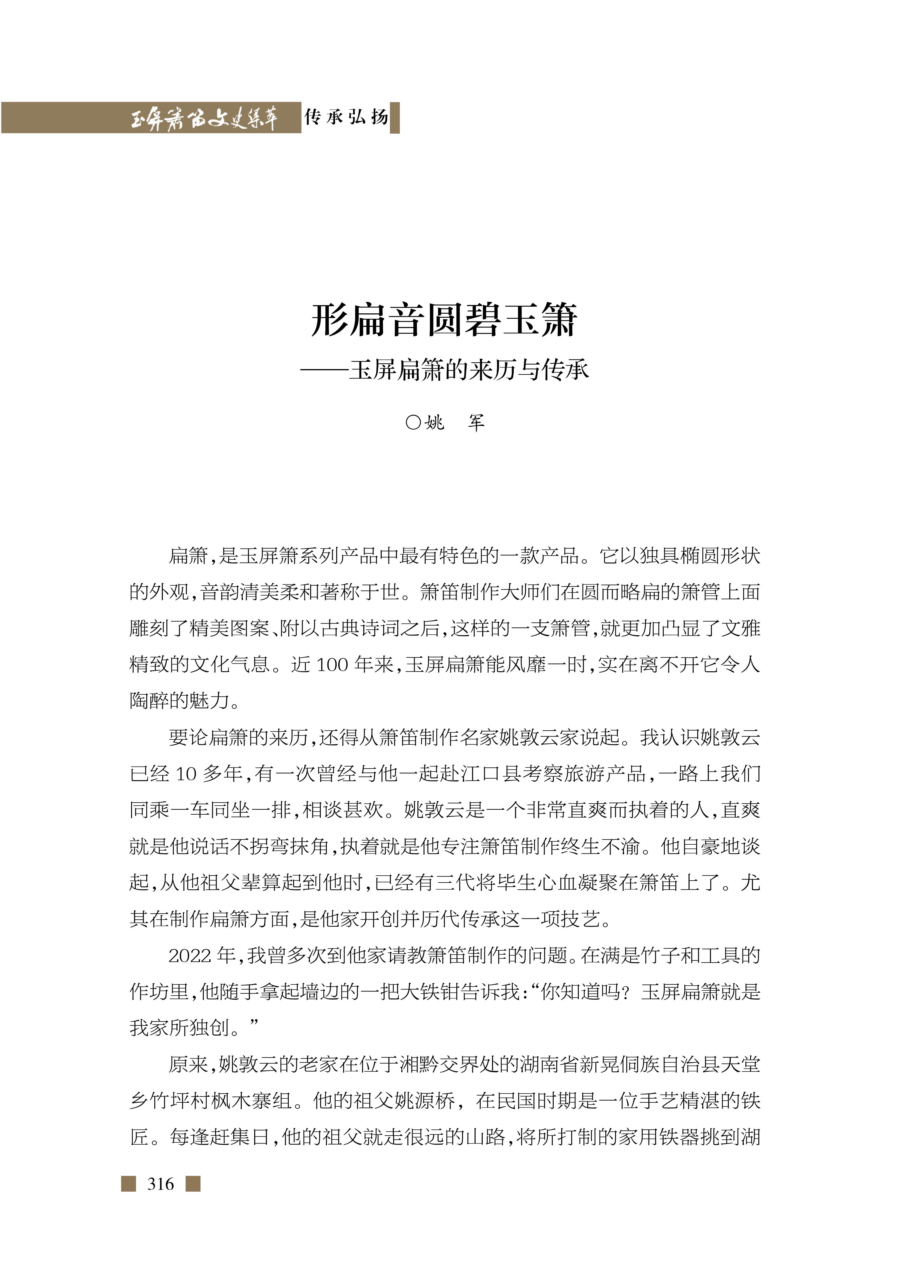 形扁音圆碧玉箫——玉屏扁箫的来历与传承 姚 军《玉屏箫笛文史集萃》