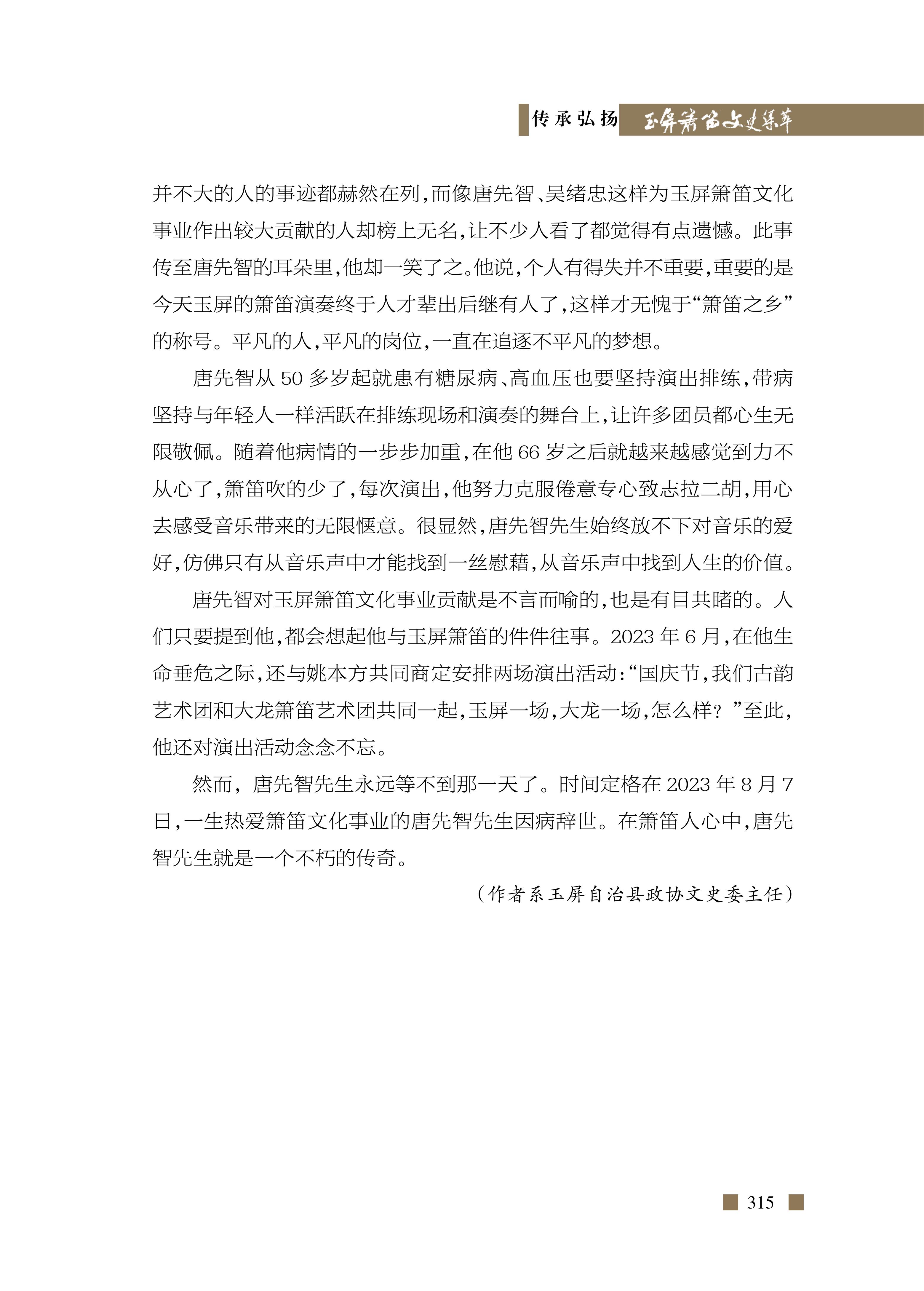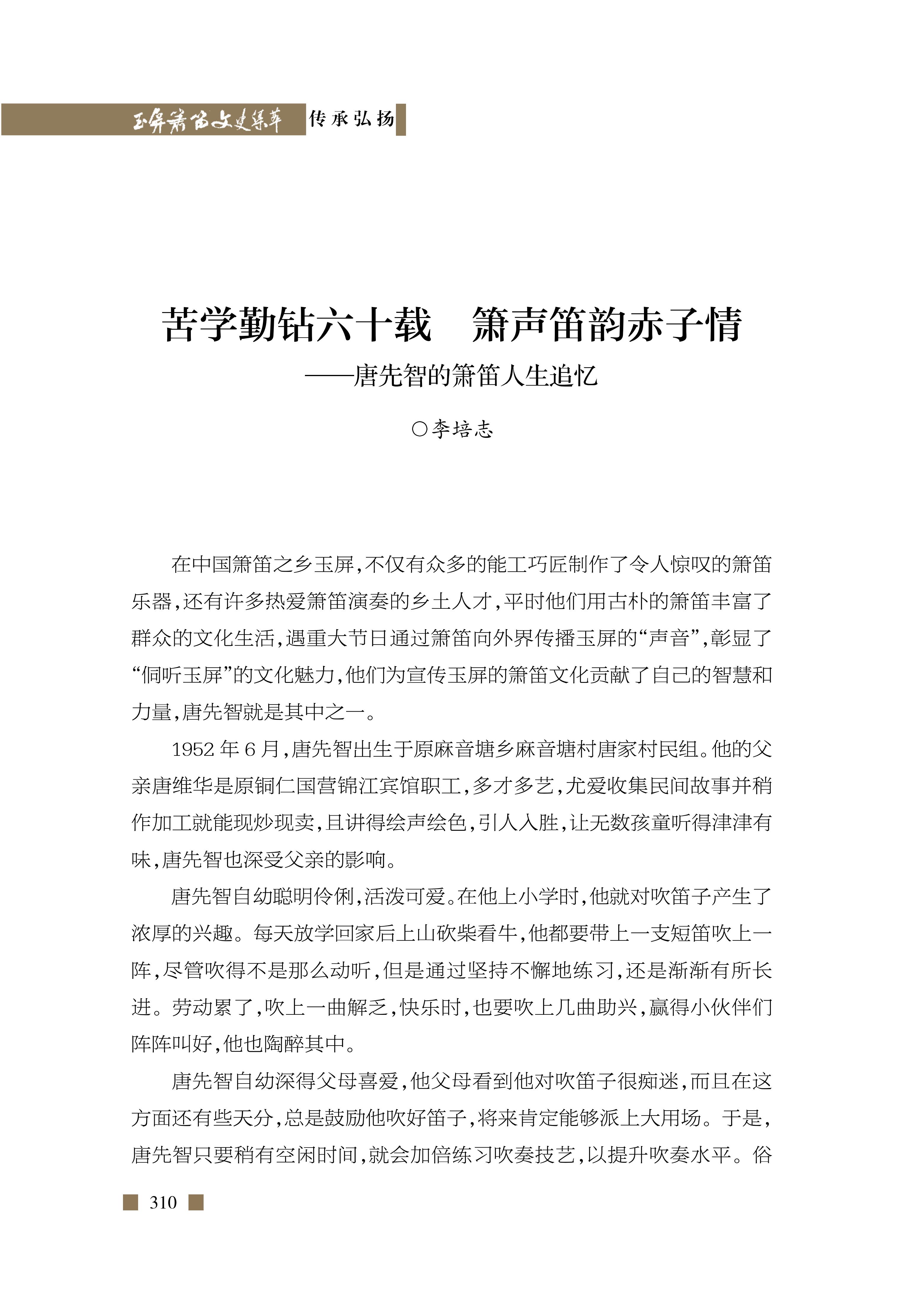 苦学勤钻六十载 箫声笛韵赤子情——唐先智的箫笛人生追忆 李培志《玉屏箫笛文史集萃》