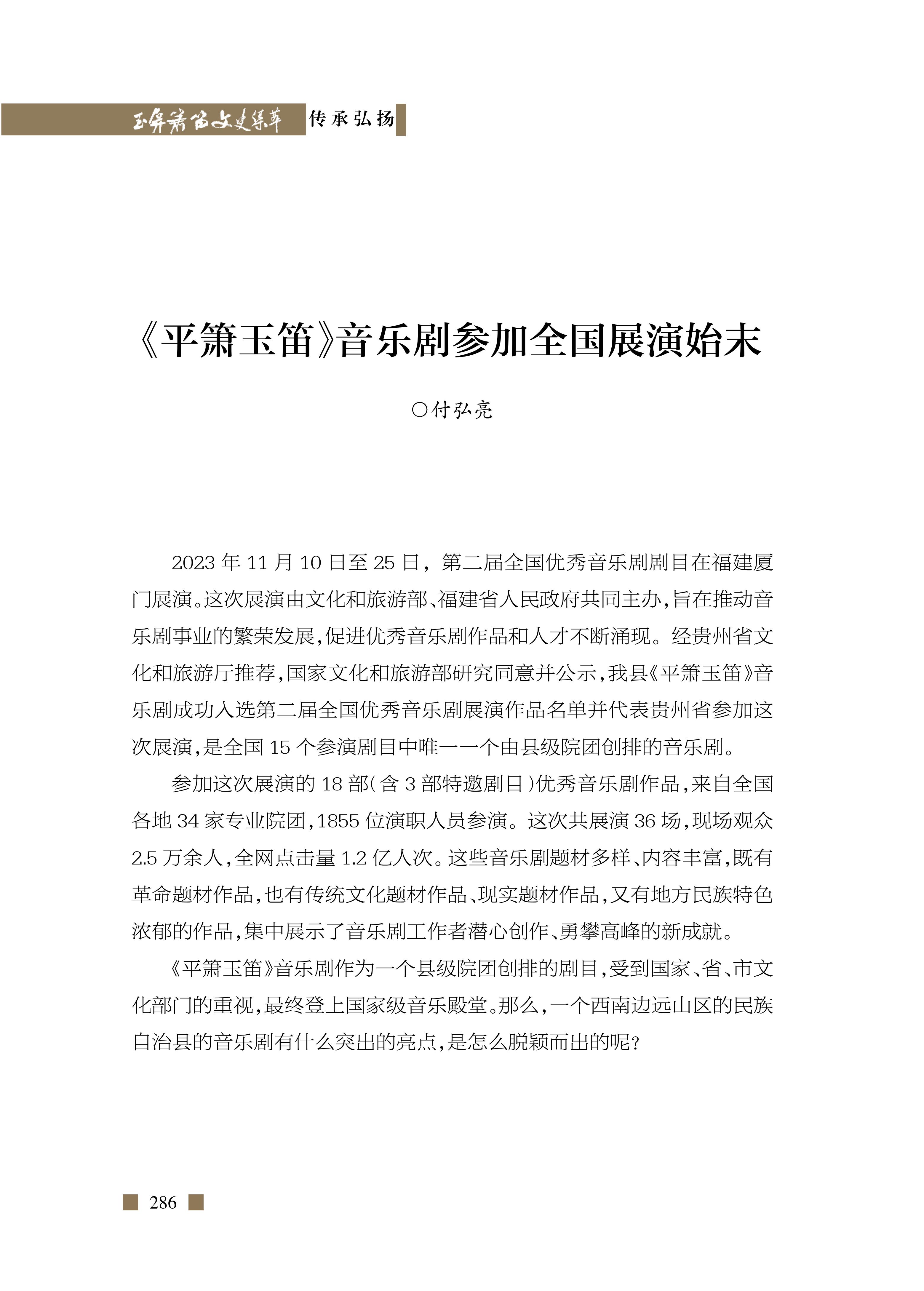 讲好箫笛故事 奏响时代乐章——侗家音乐剧《平箫玉笛》的创作经过 付弘亮