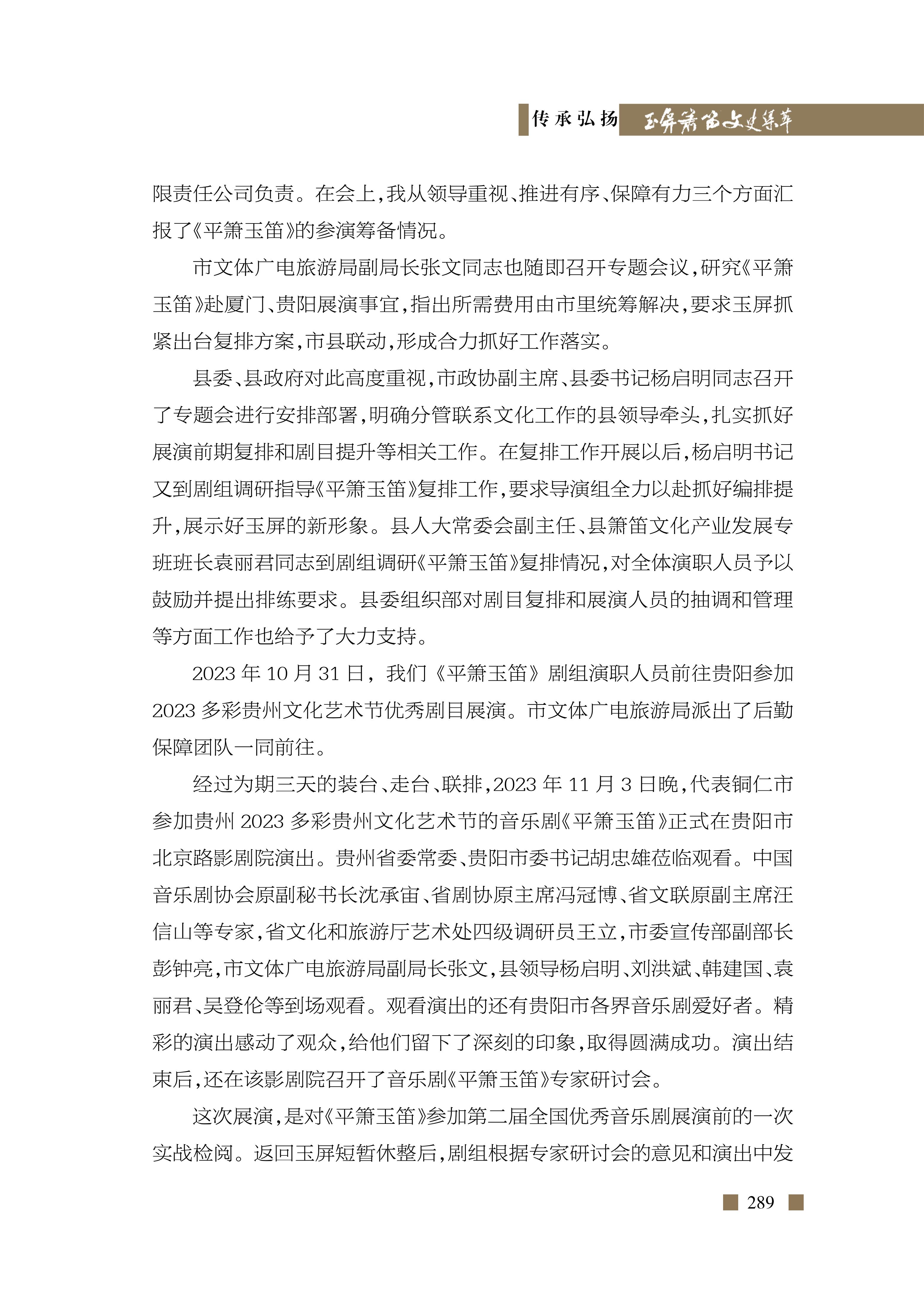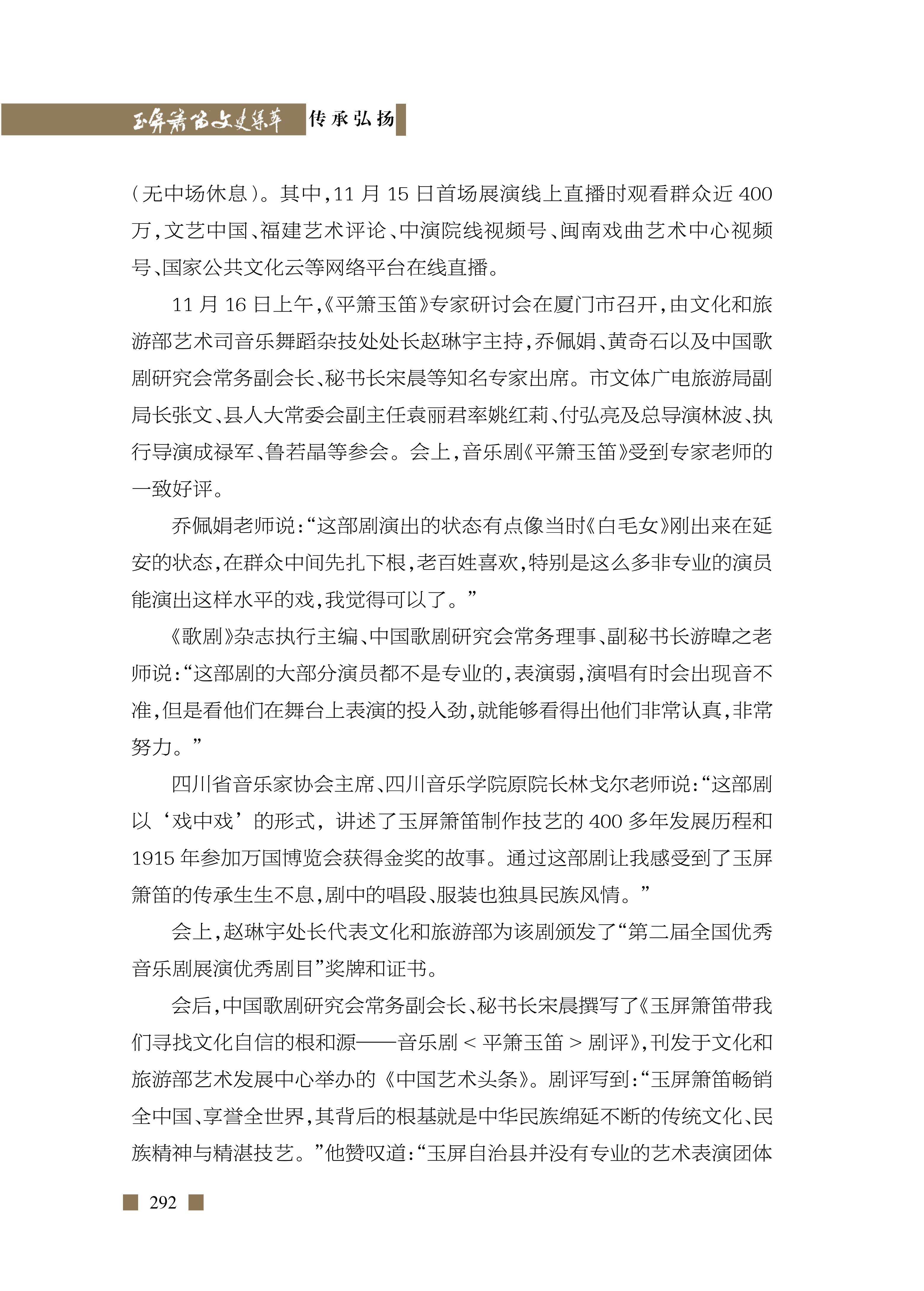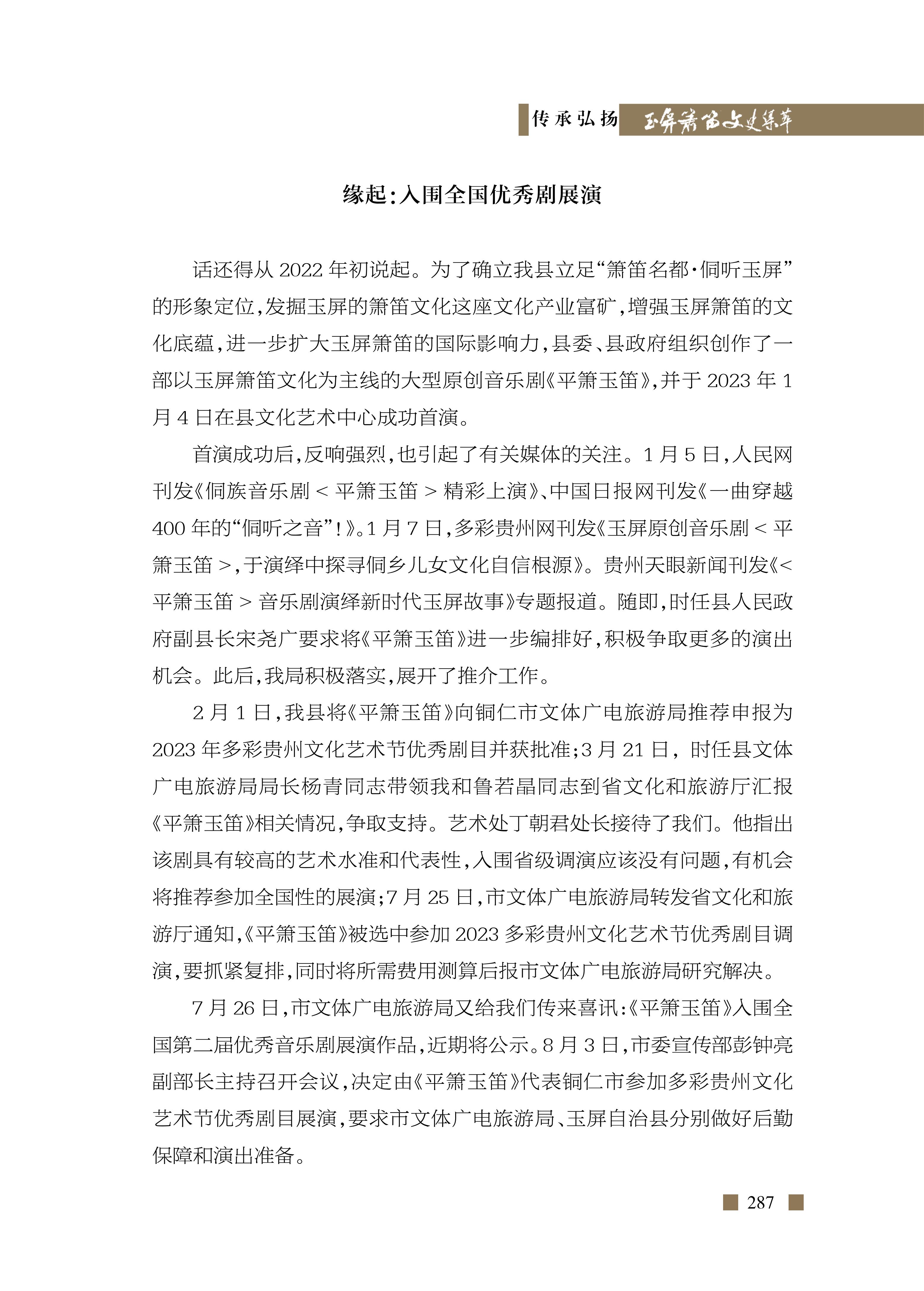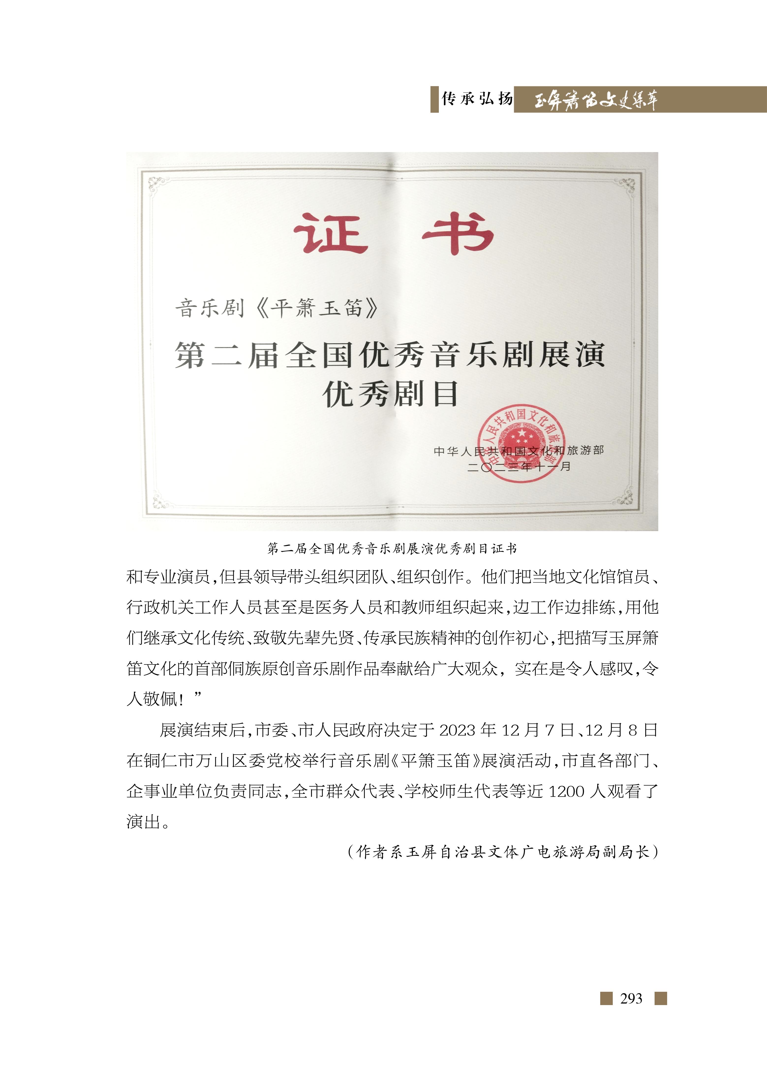 《平箫玉笛》音乐剧参加全国展演始末 付弘亮《玉屏箫笛文史集萃》