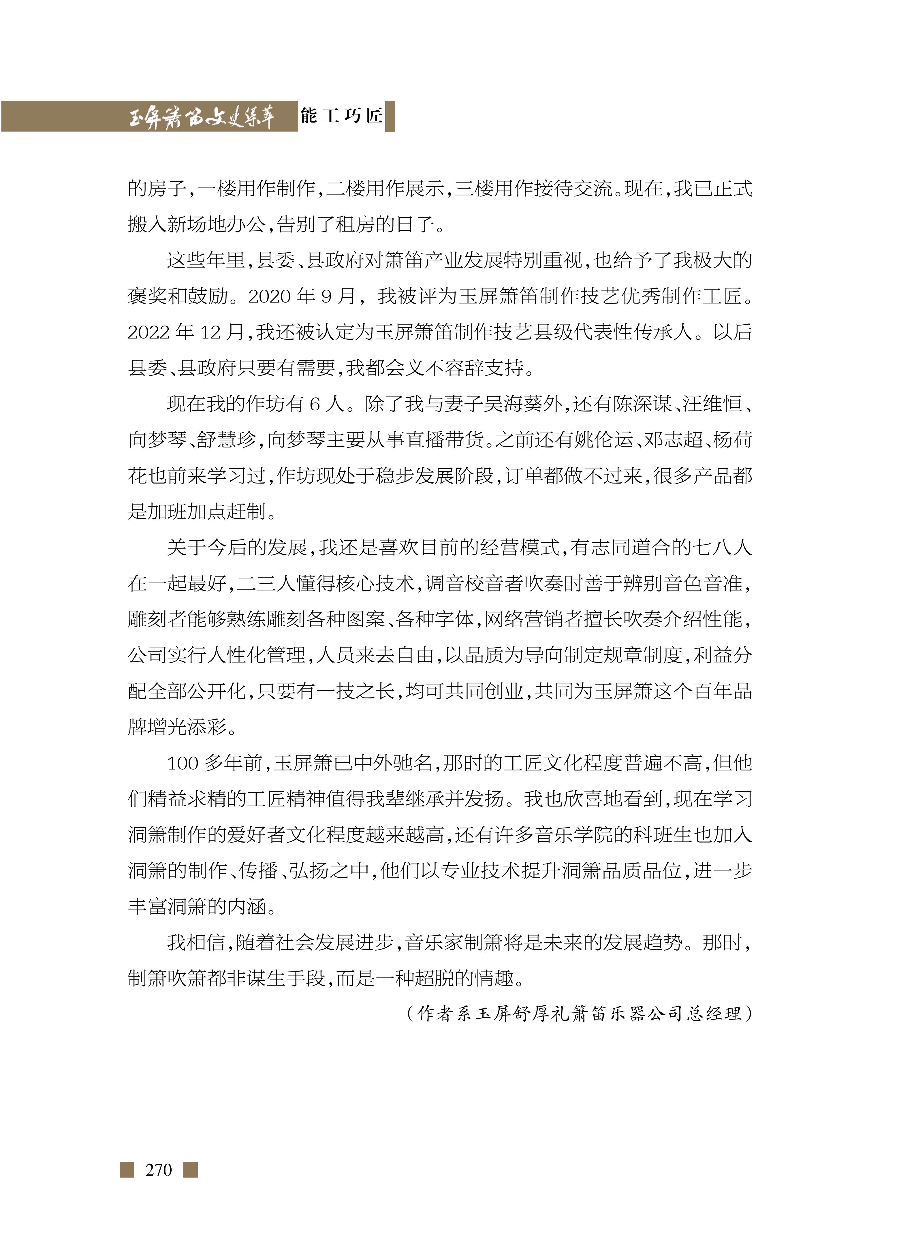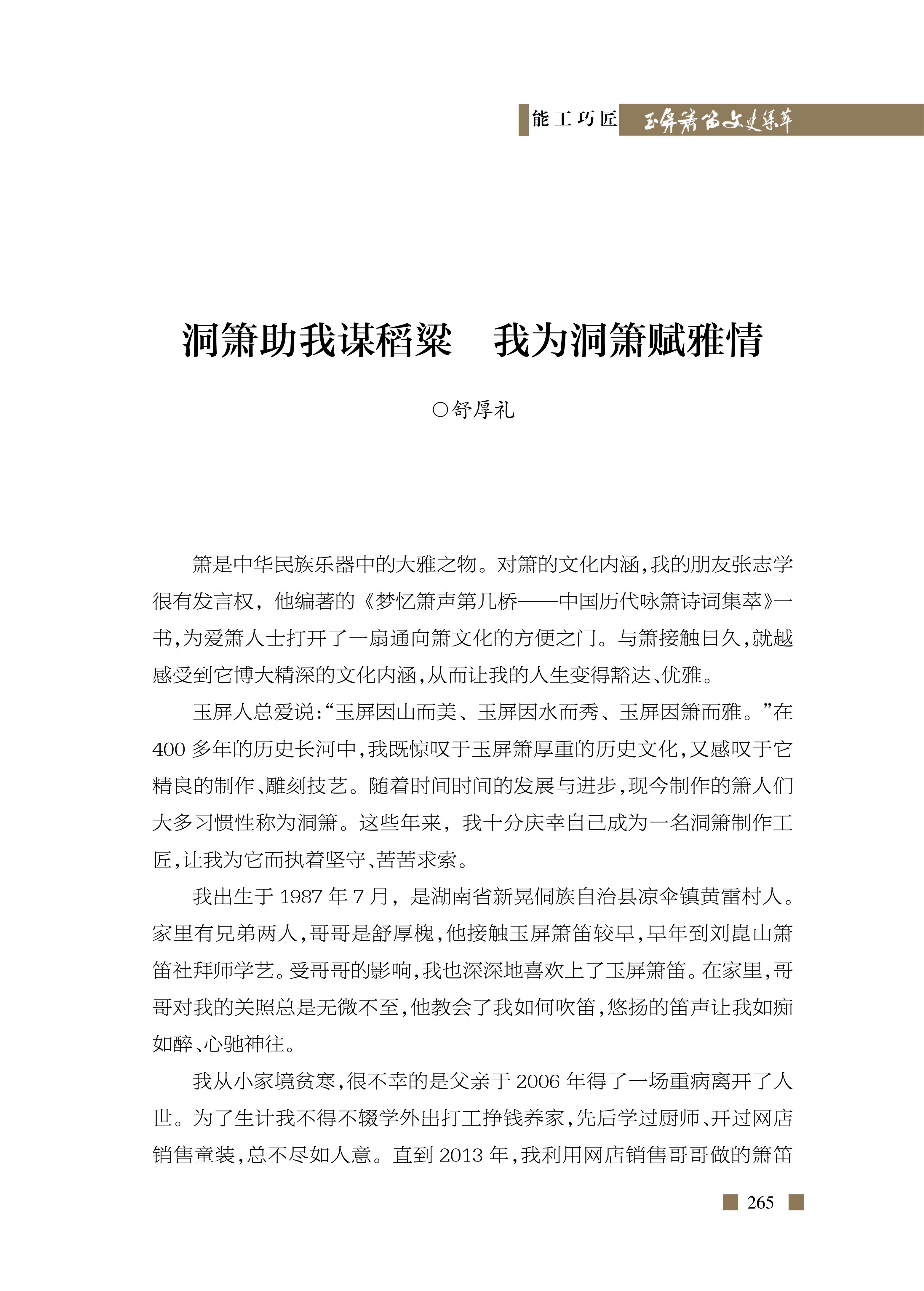 洞箫助我谋稻粱 我为洞箫赋雅情 舒厚礼《玉屏箫笛文史集萃》
