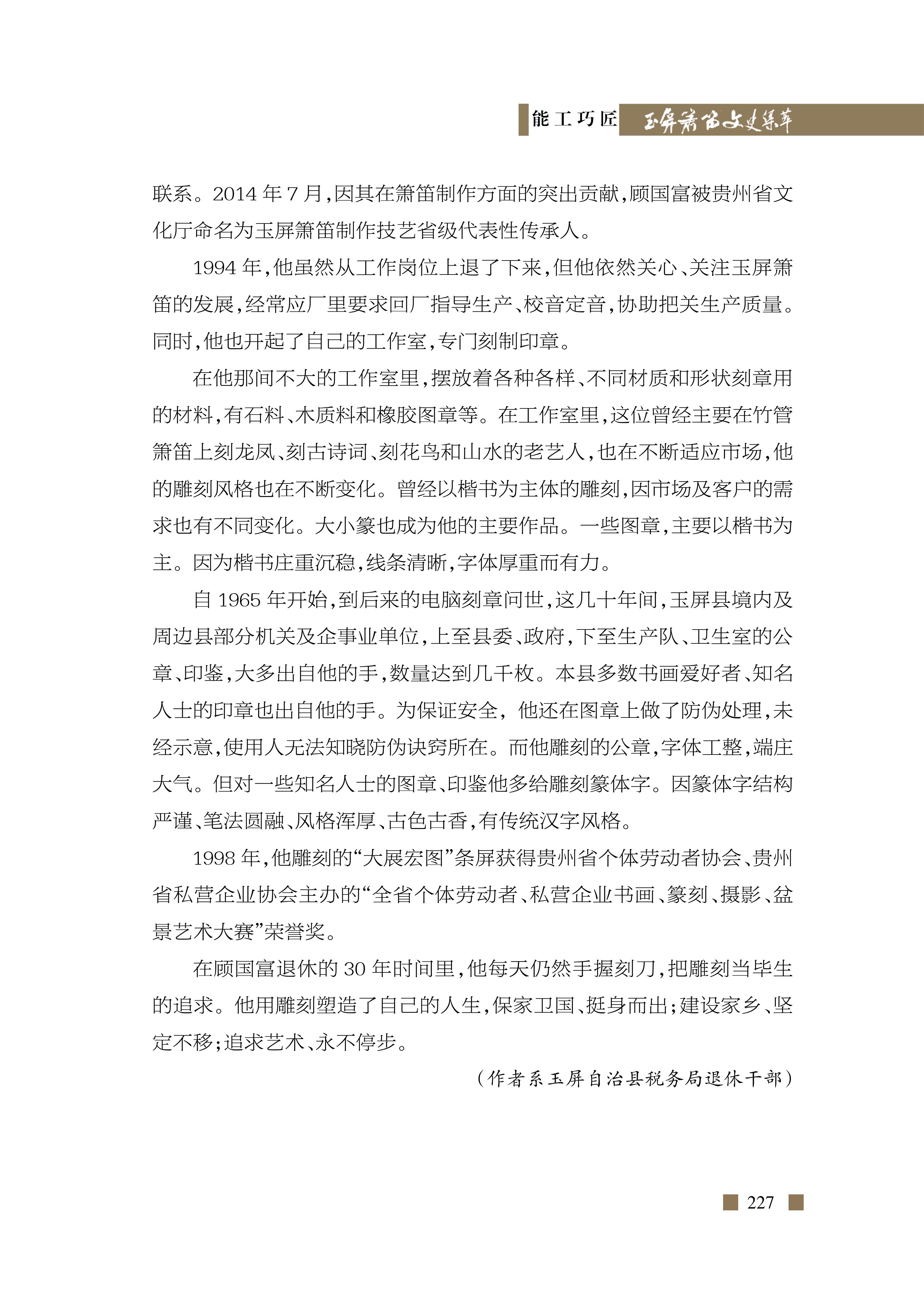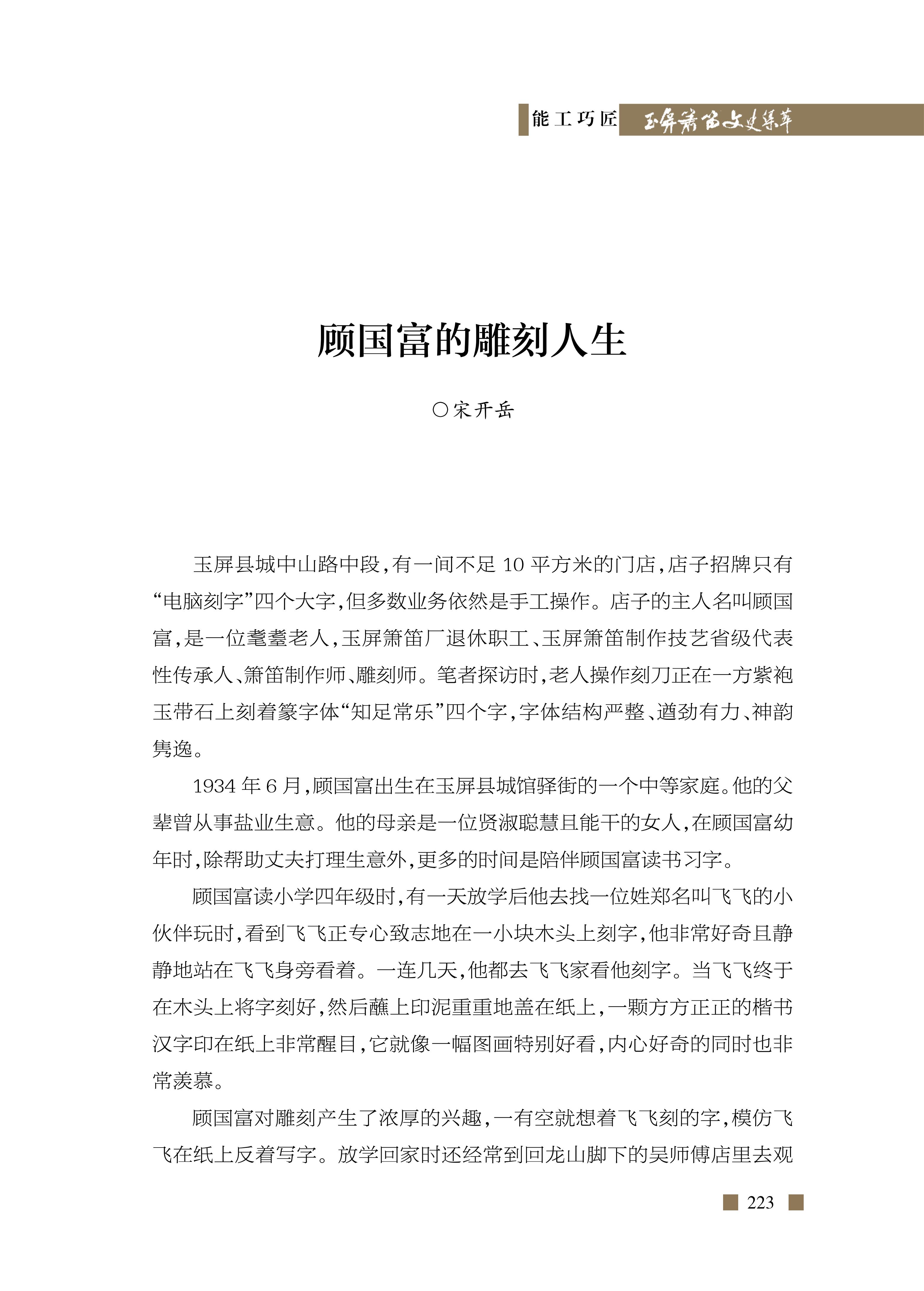 顾国富的雕刻人生 宋开岳《玉屏箫笛文史集萃》