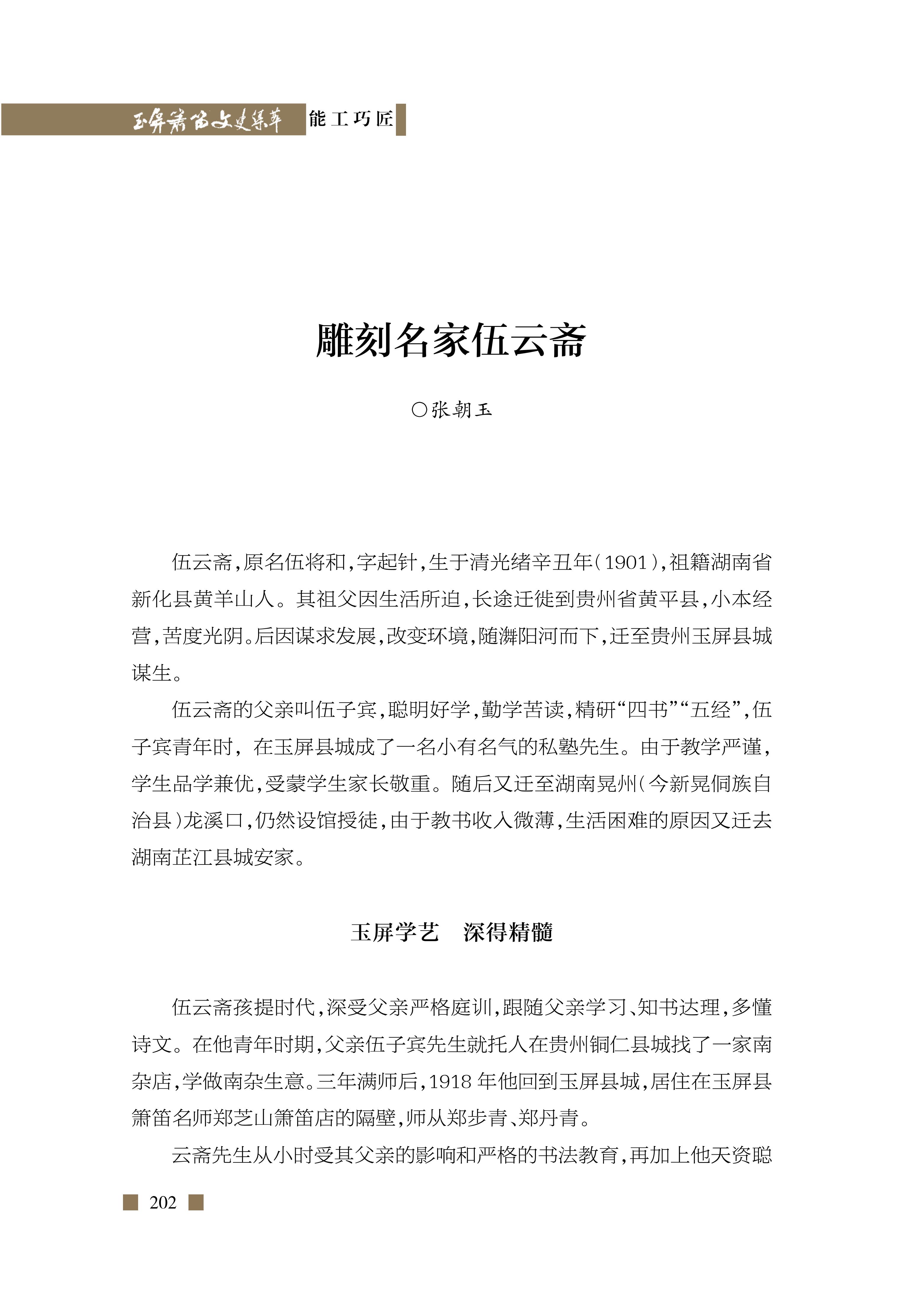 雕刻名家伍云斋 张朝玉《玉屏箫笛文史集萃》