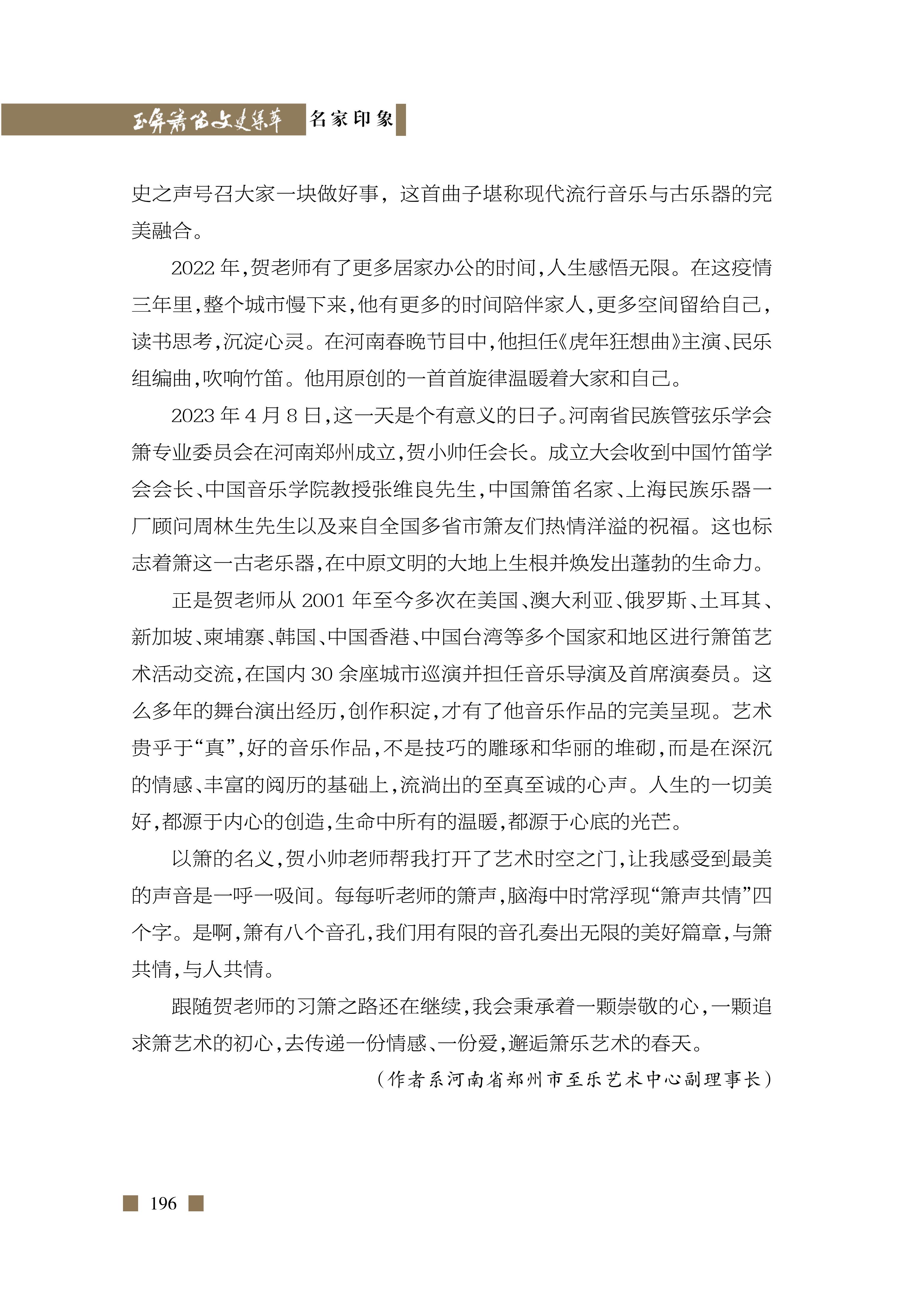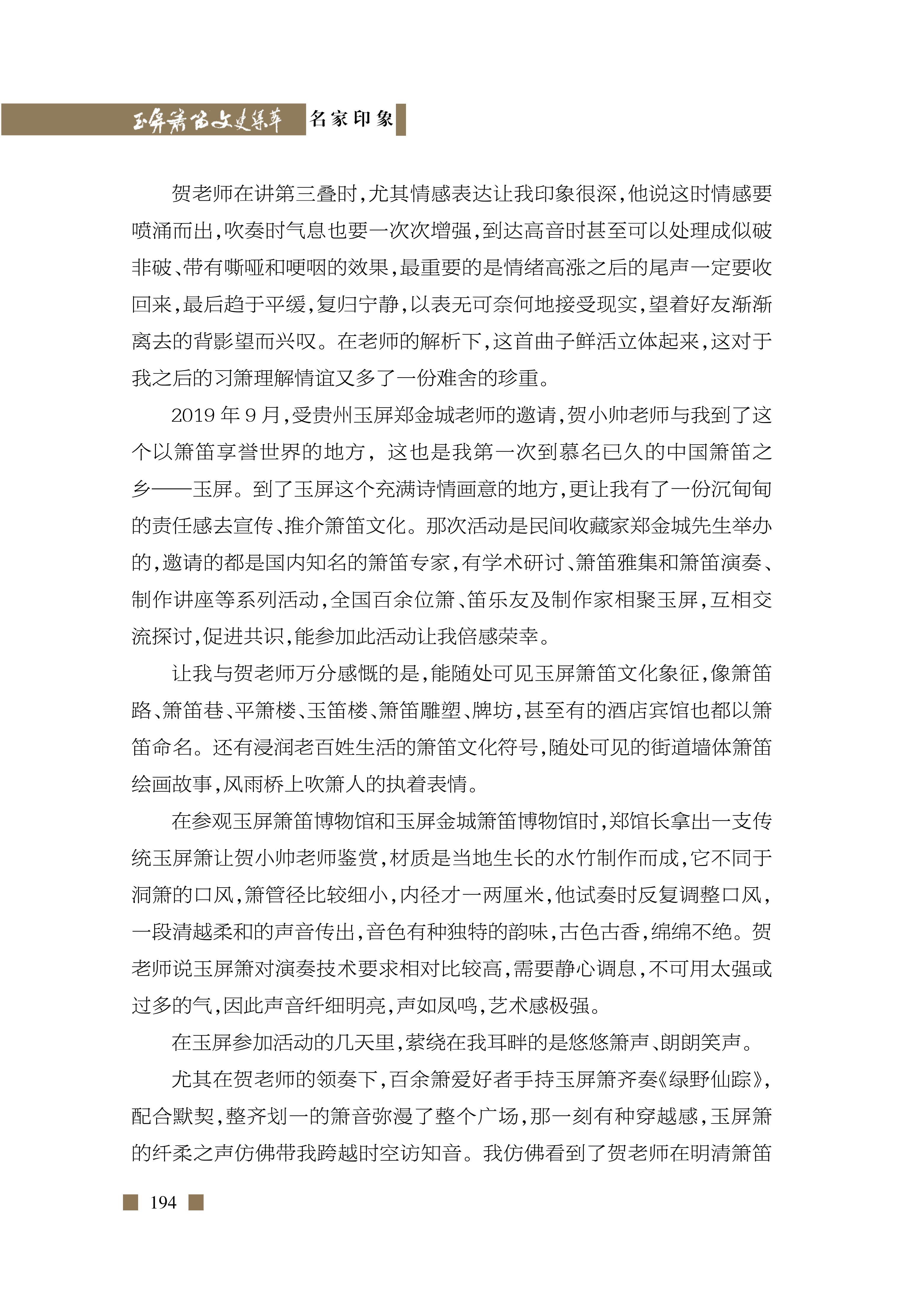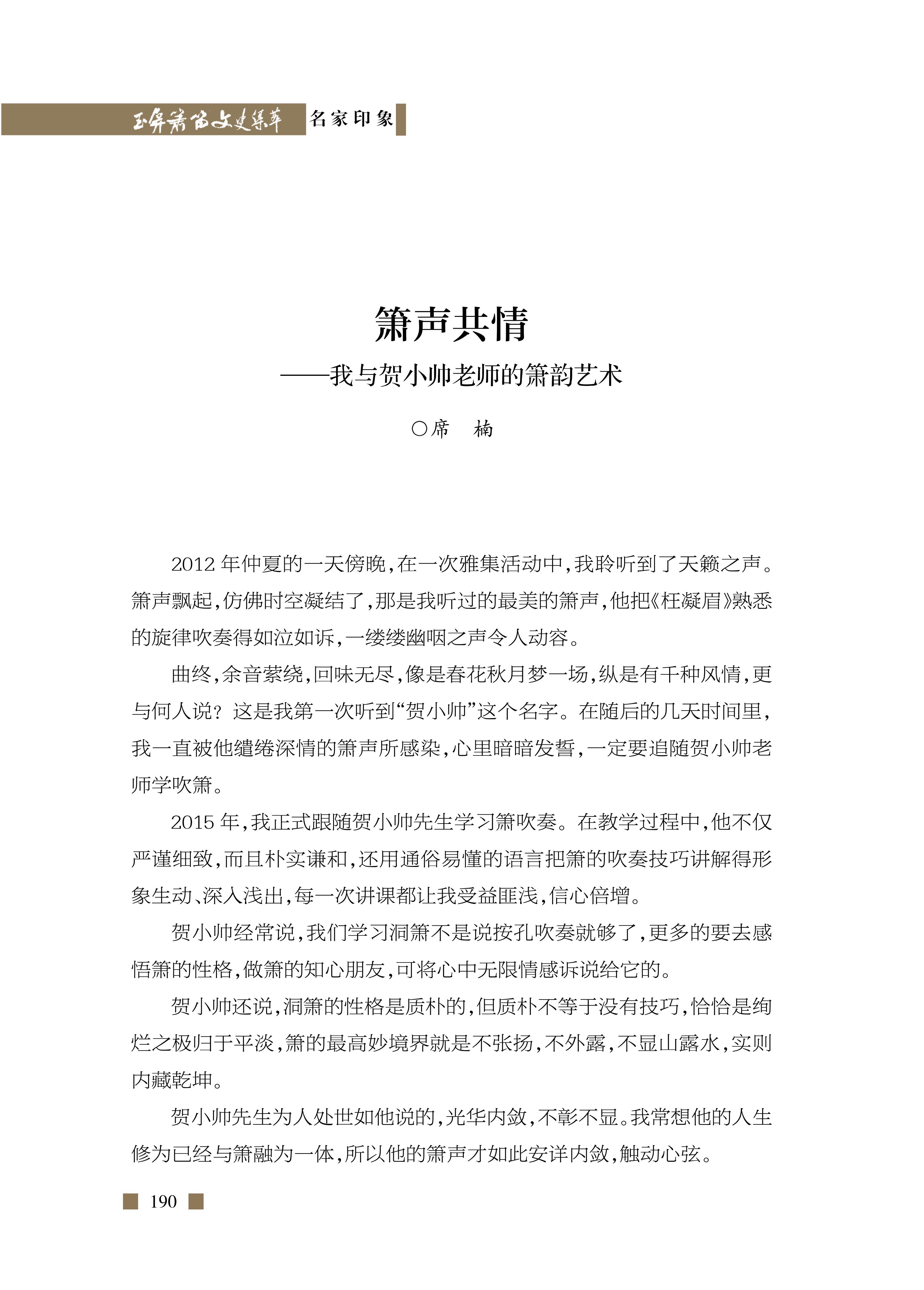 箫声共情——我与贺小帅老师的箫韵艺术 席楠《玉屏箫笛文史集萃》