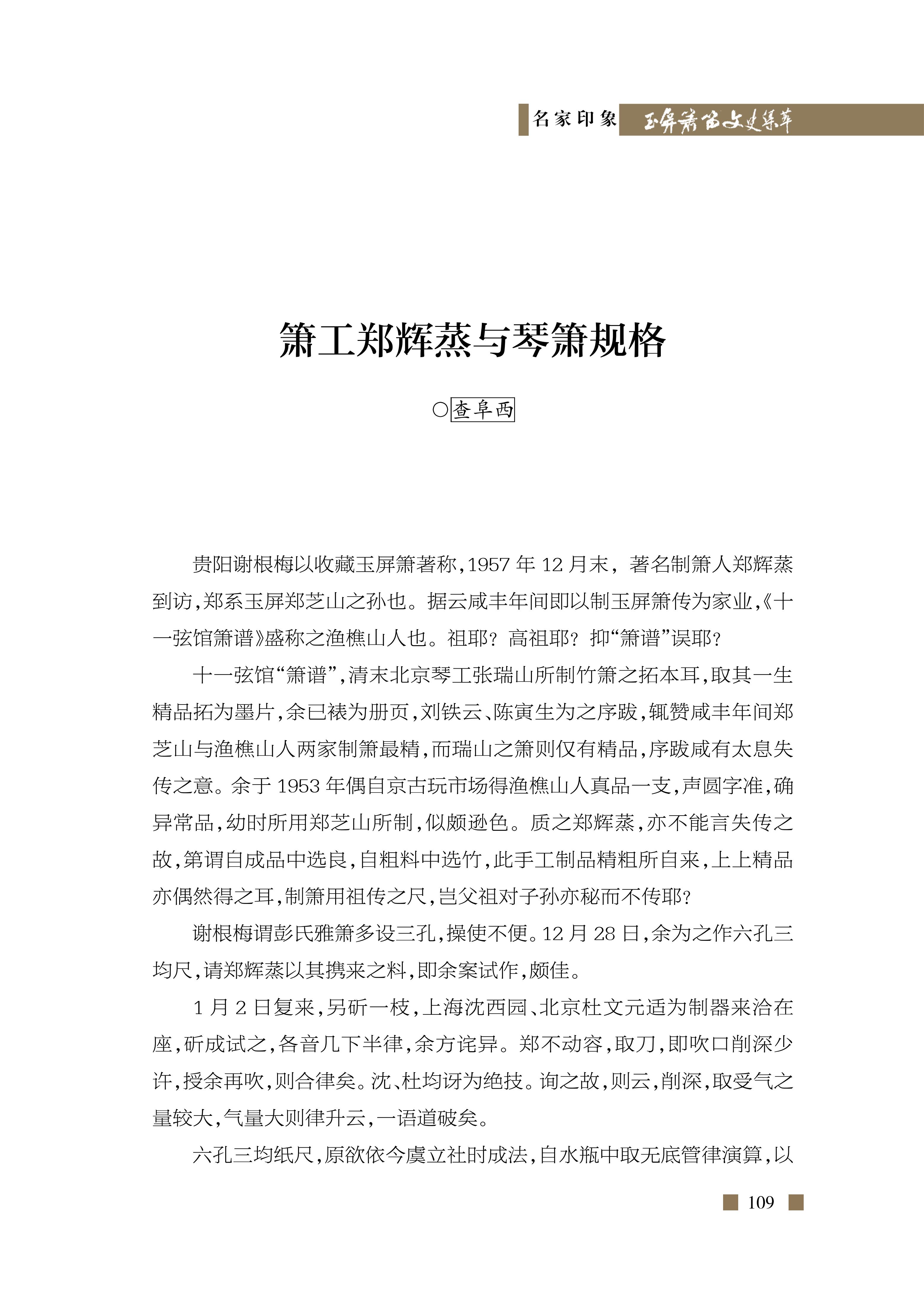 箫工郑辉蒸与琴箫规格 查阜西《玉屏箫笛文史集萃》