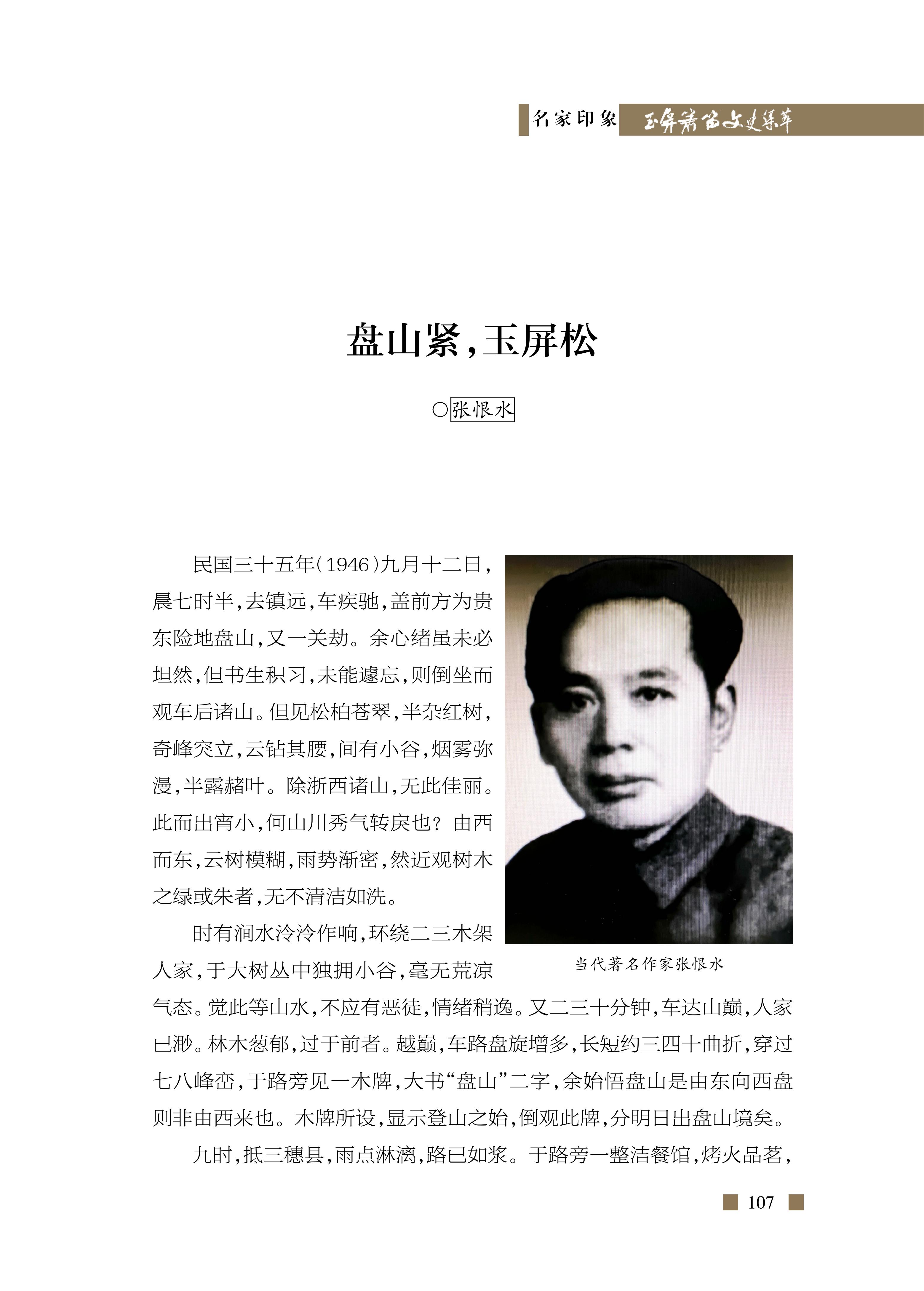 盘山紧,玉屏松 张恨水《玉屏箫笛文史集萃》