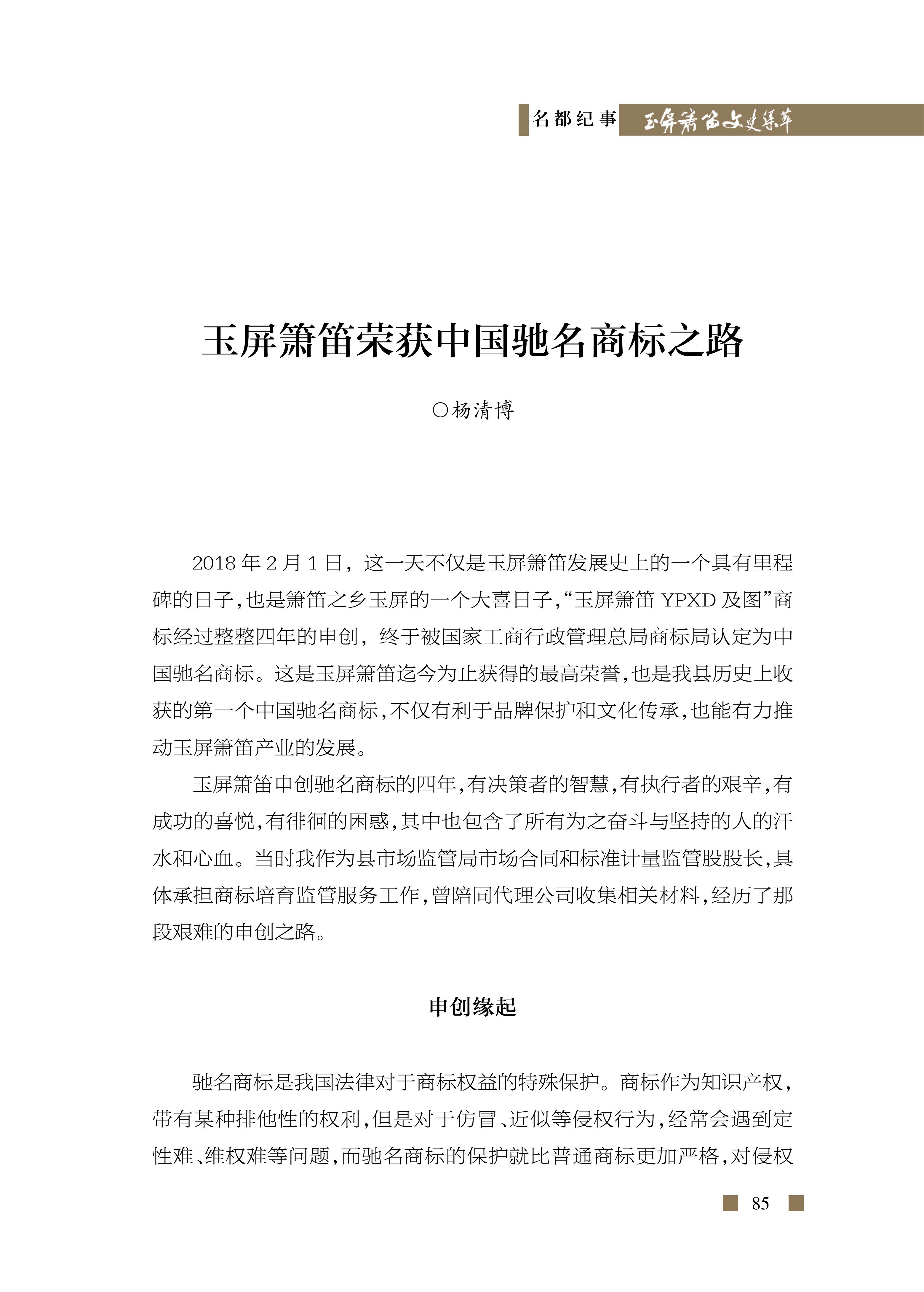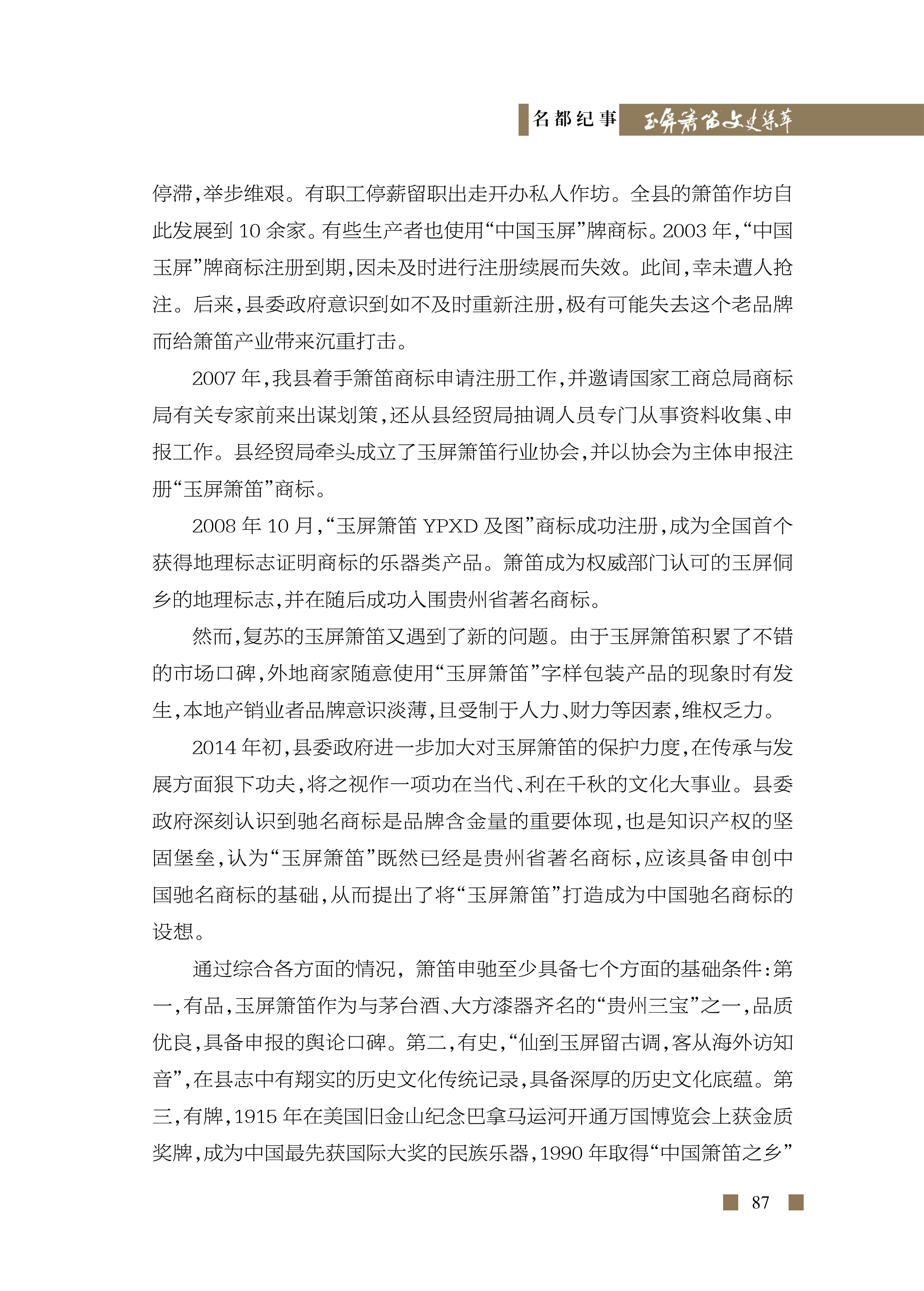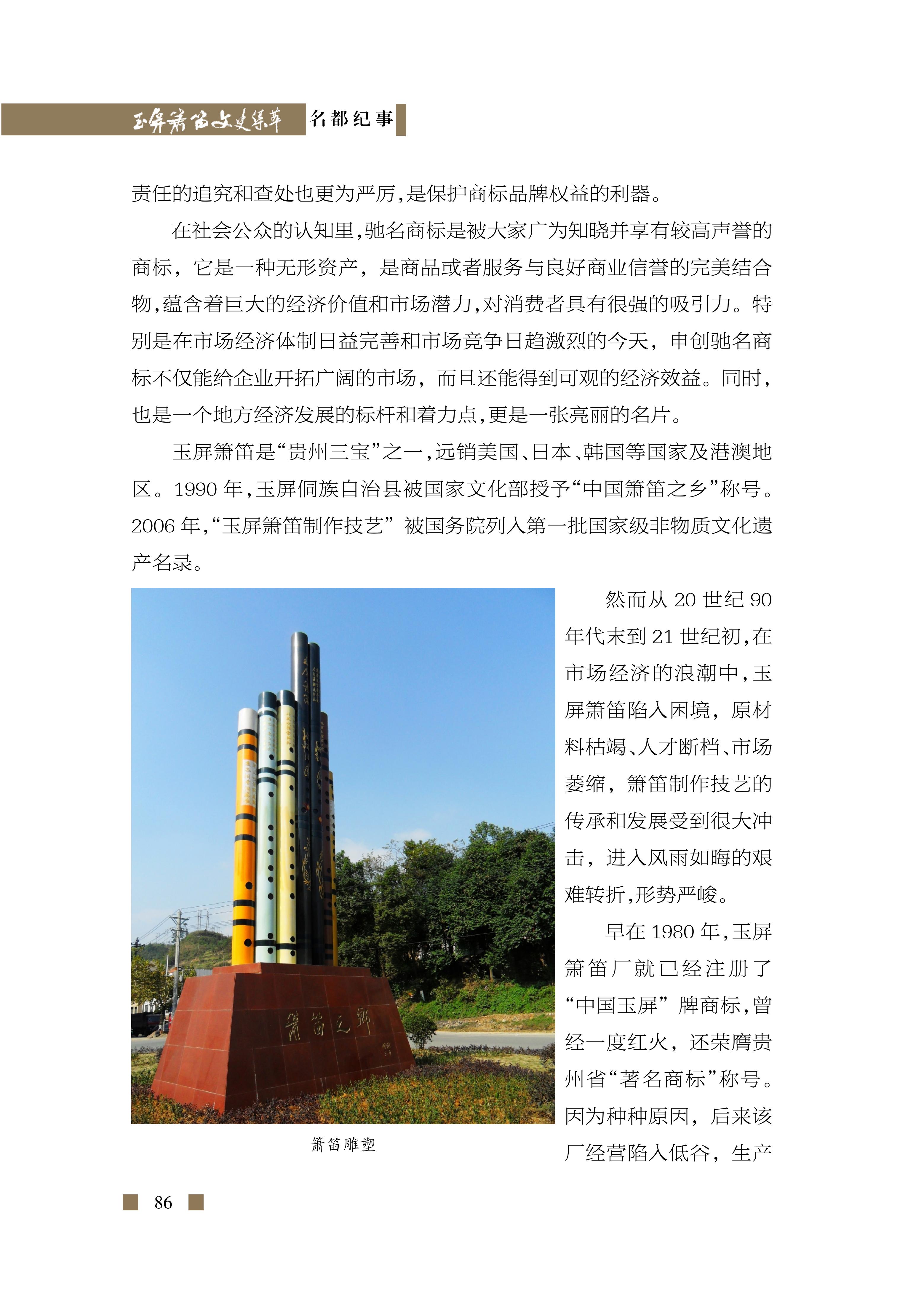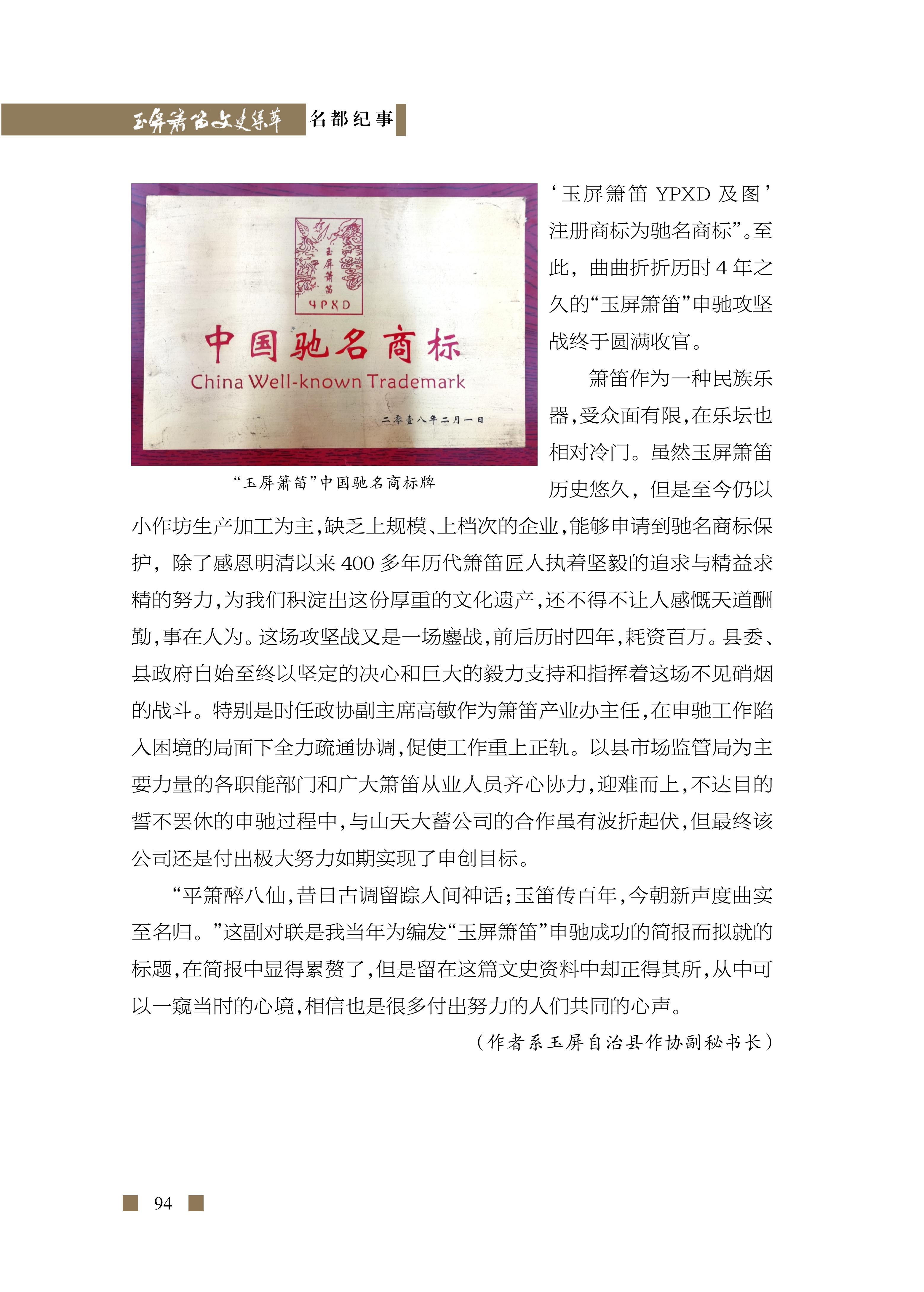玉屏箫笛荣获中国驰名商标之路 杨清博《玉屏箫笛文史集萃》