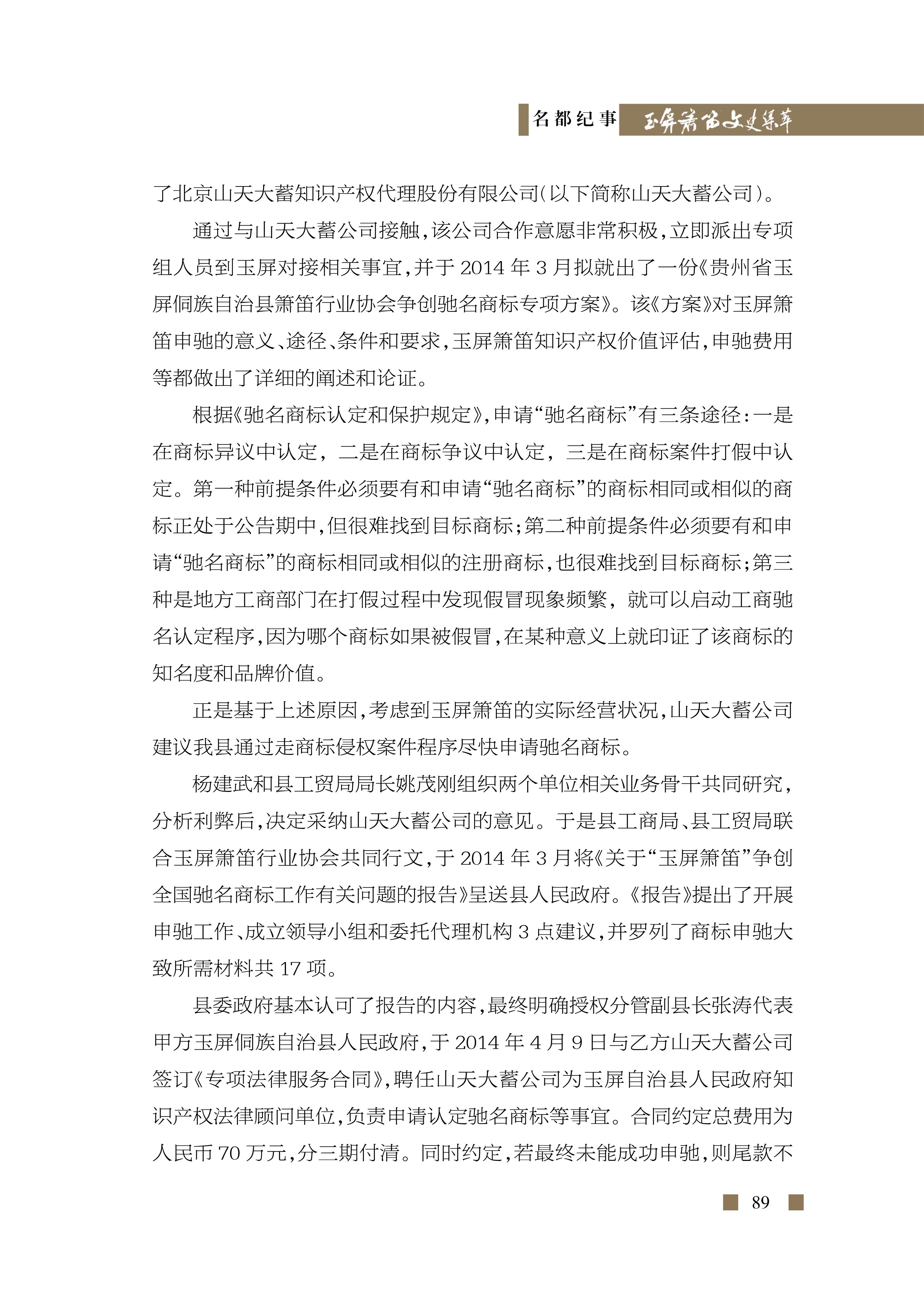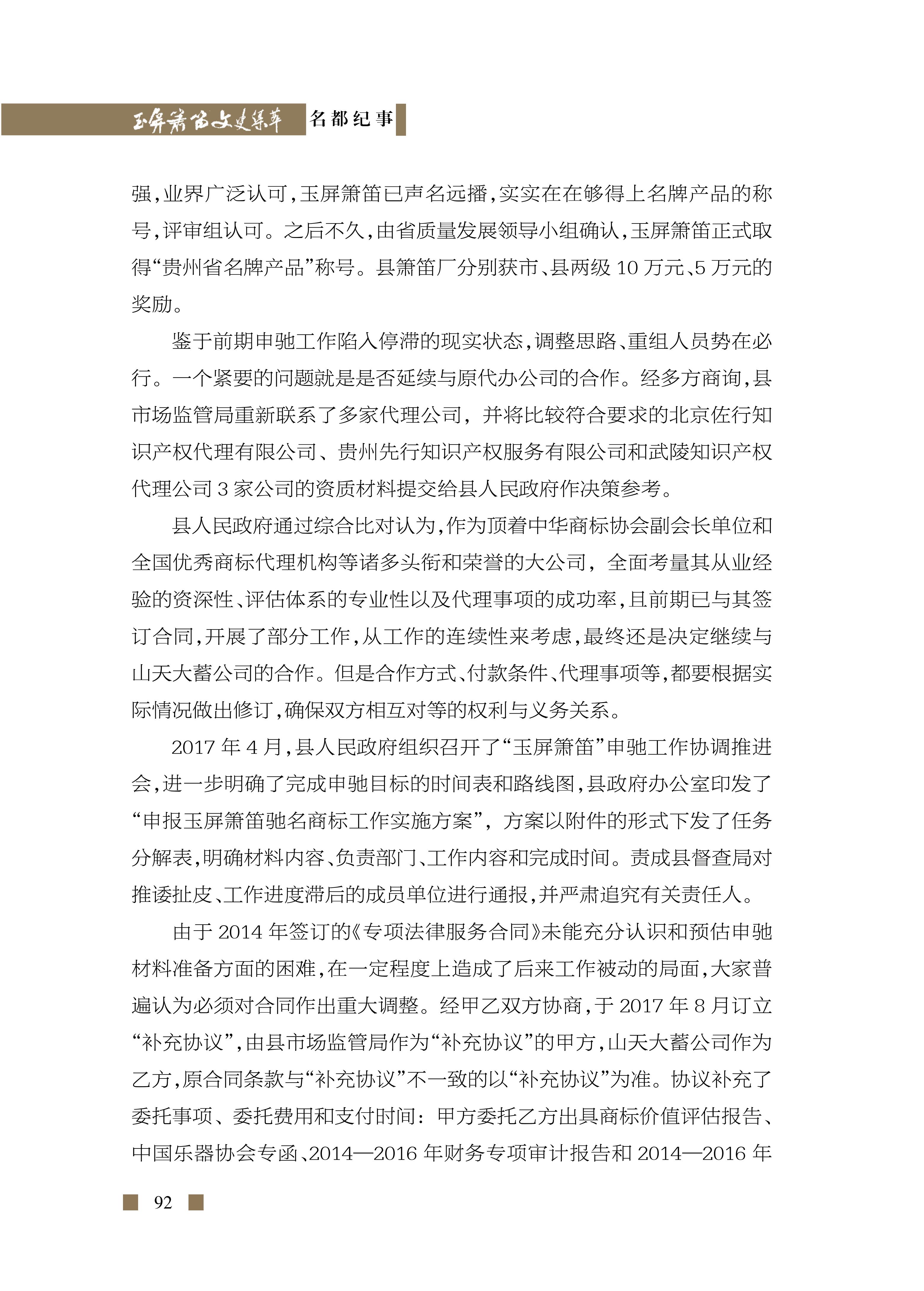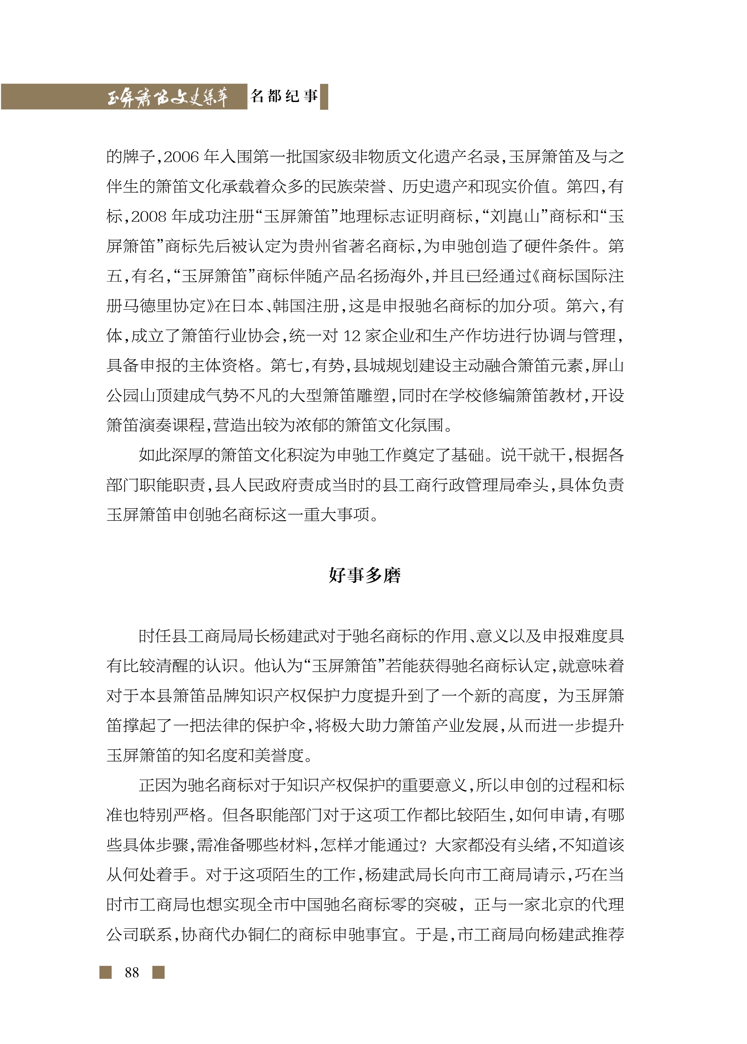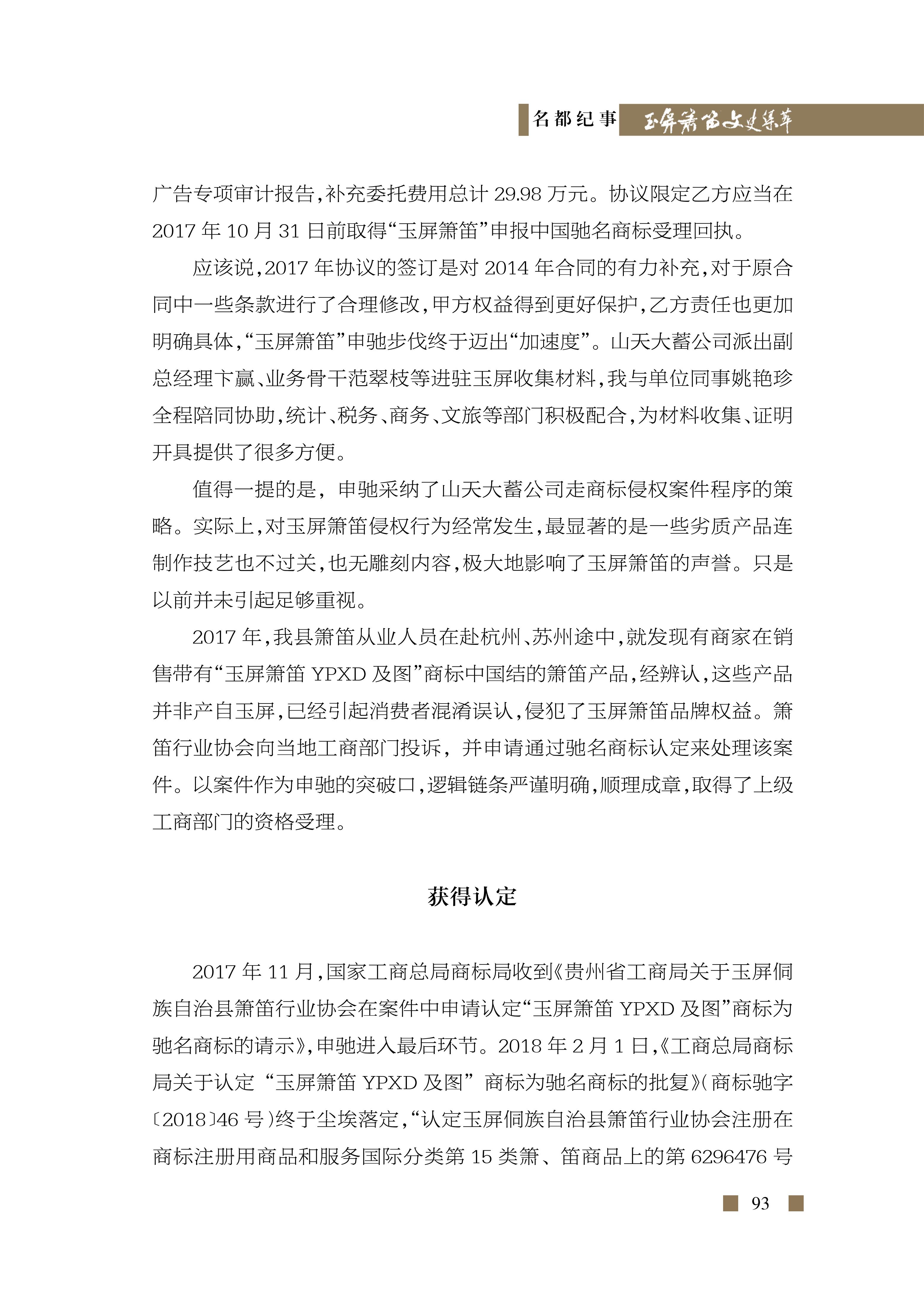 玉屏箫笛荣获中国驰名商标之路 杨清博《玉屏箫笛文史集萃》
