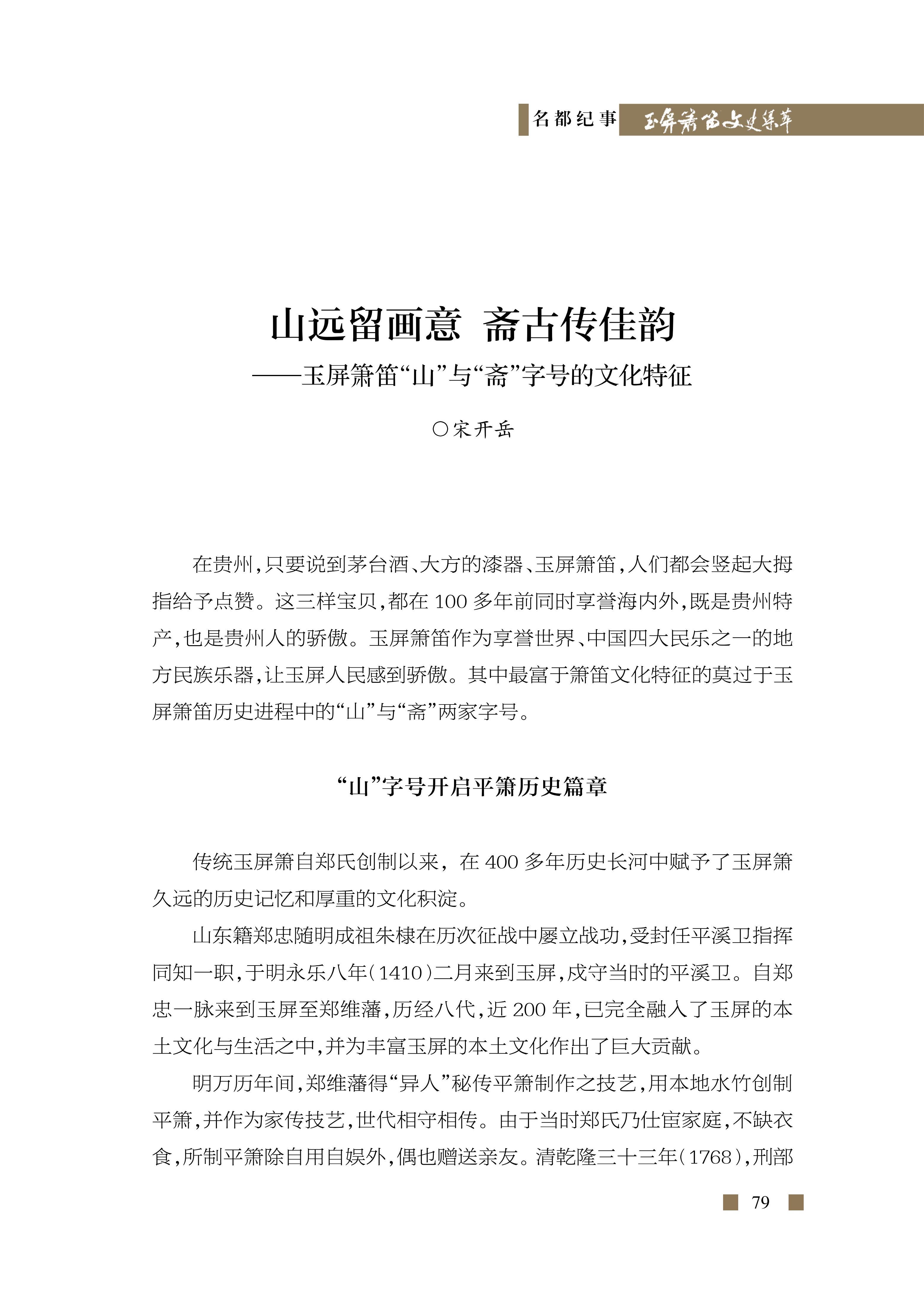 山远留画意 斋古传佳韵——玉屏箫笛“山”与“斋”字号的文化特征 宋开岳《玉屏箫笛文史集萃》