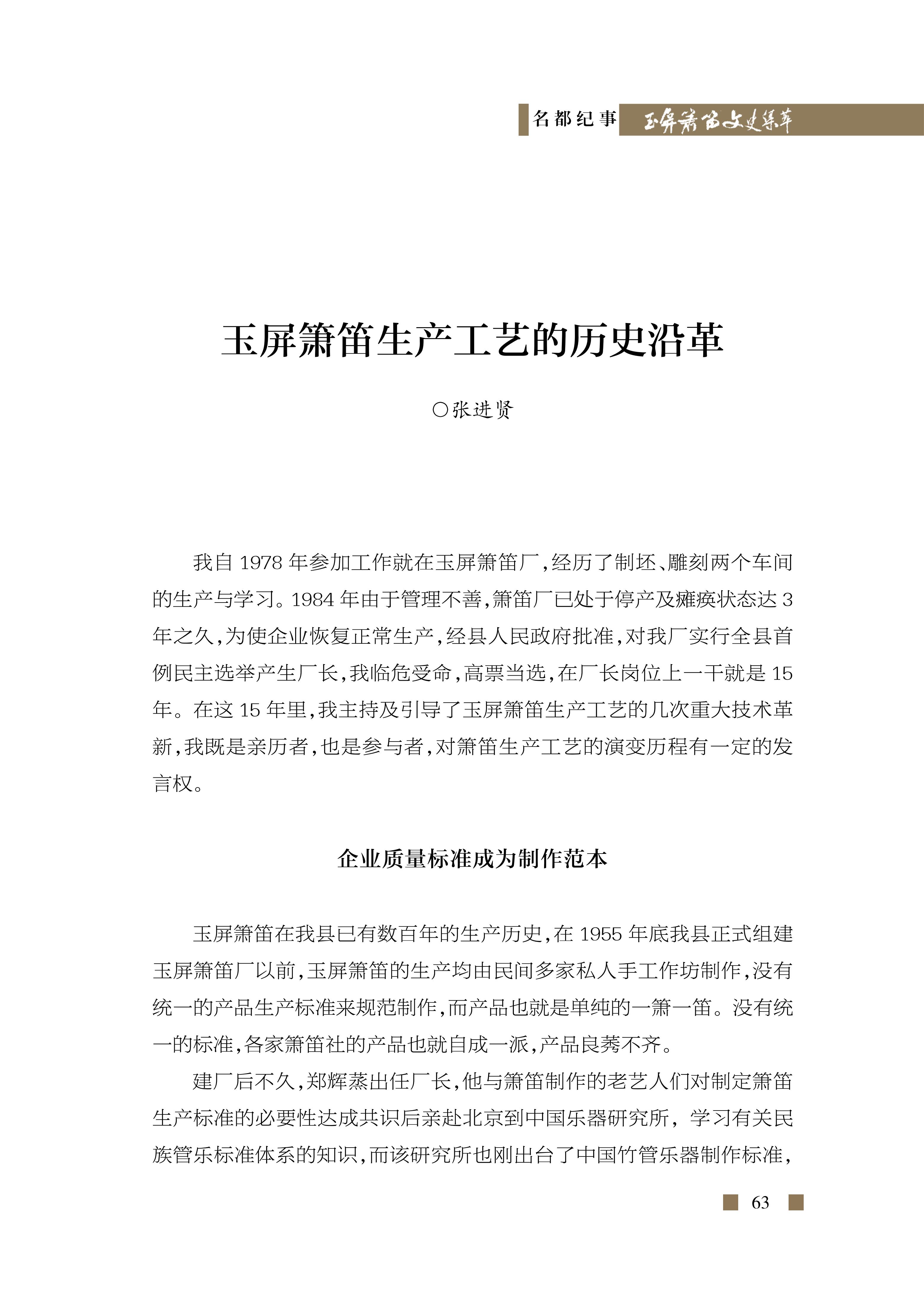 玉屏箫笛生产工艺的历史沿革 张进贤