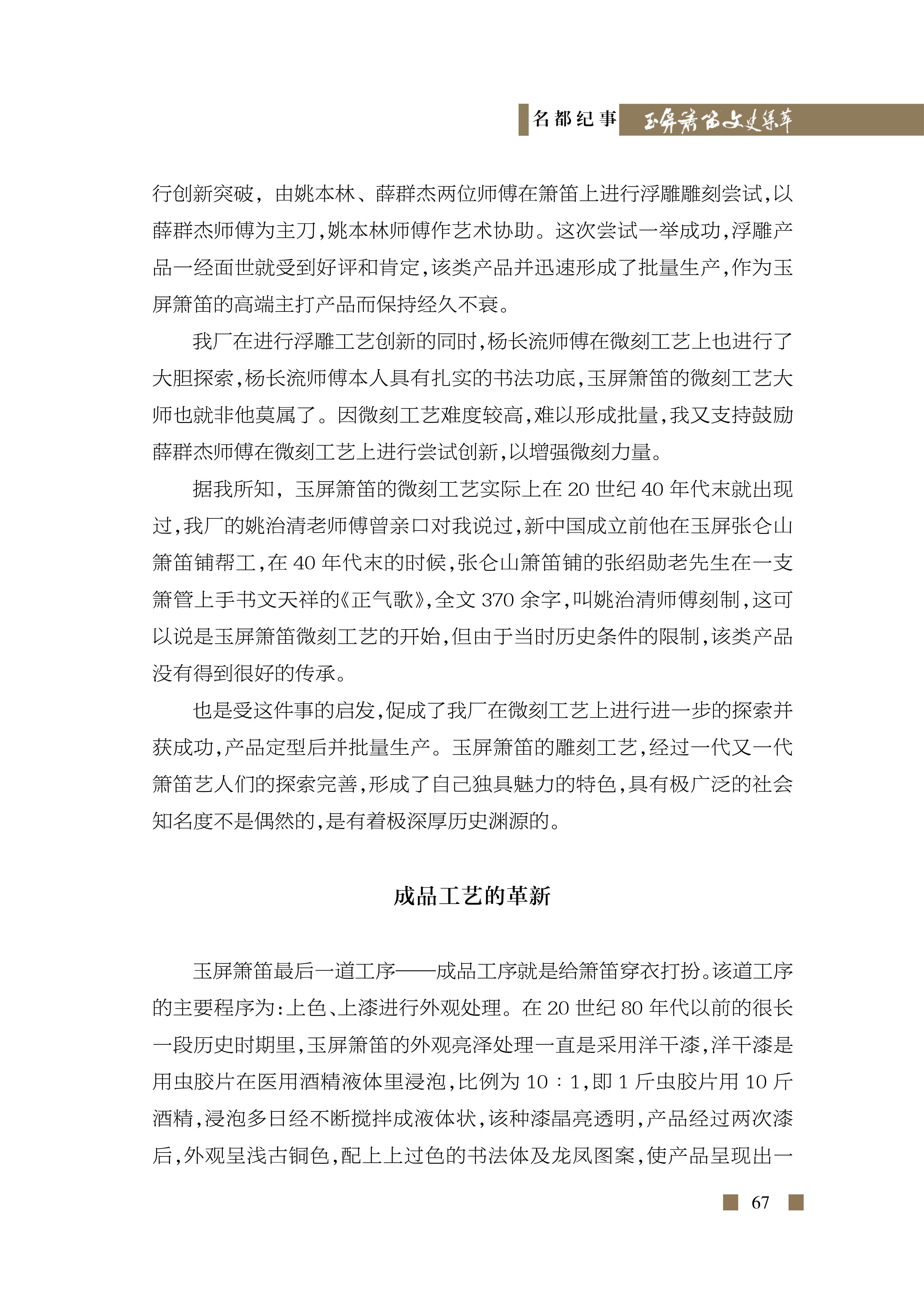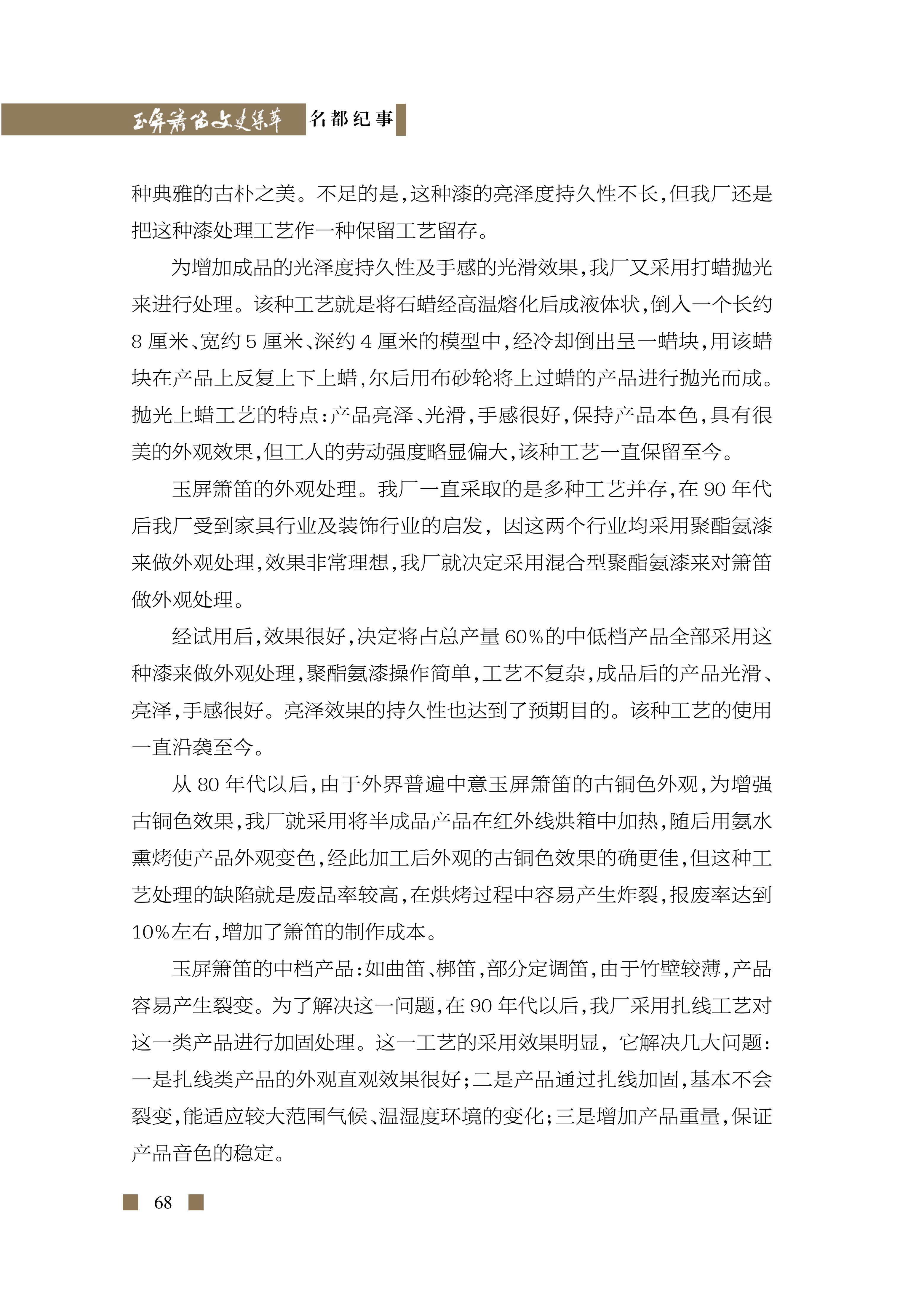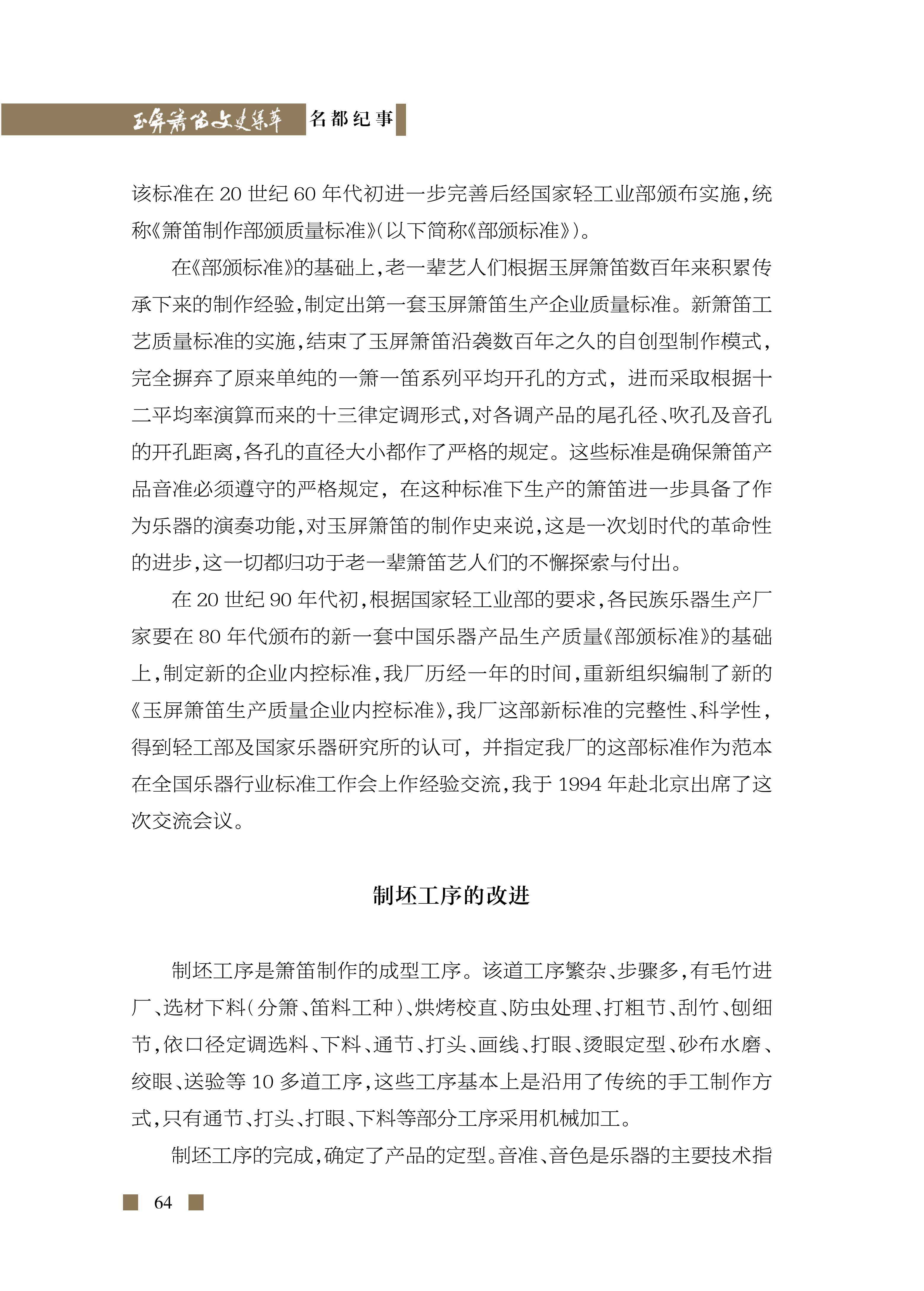 玉屏箫笛生产工艺的历史沿革 张进贤《玉屏箫笛文史集萃》