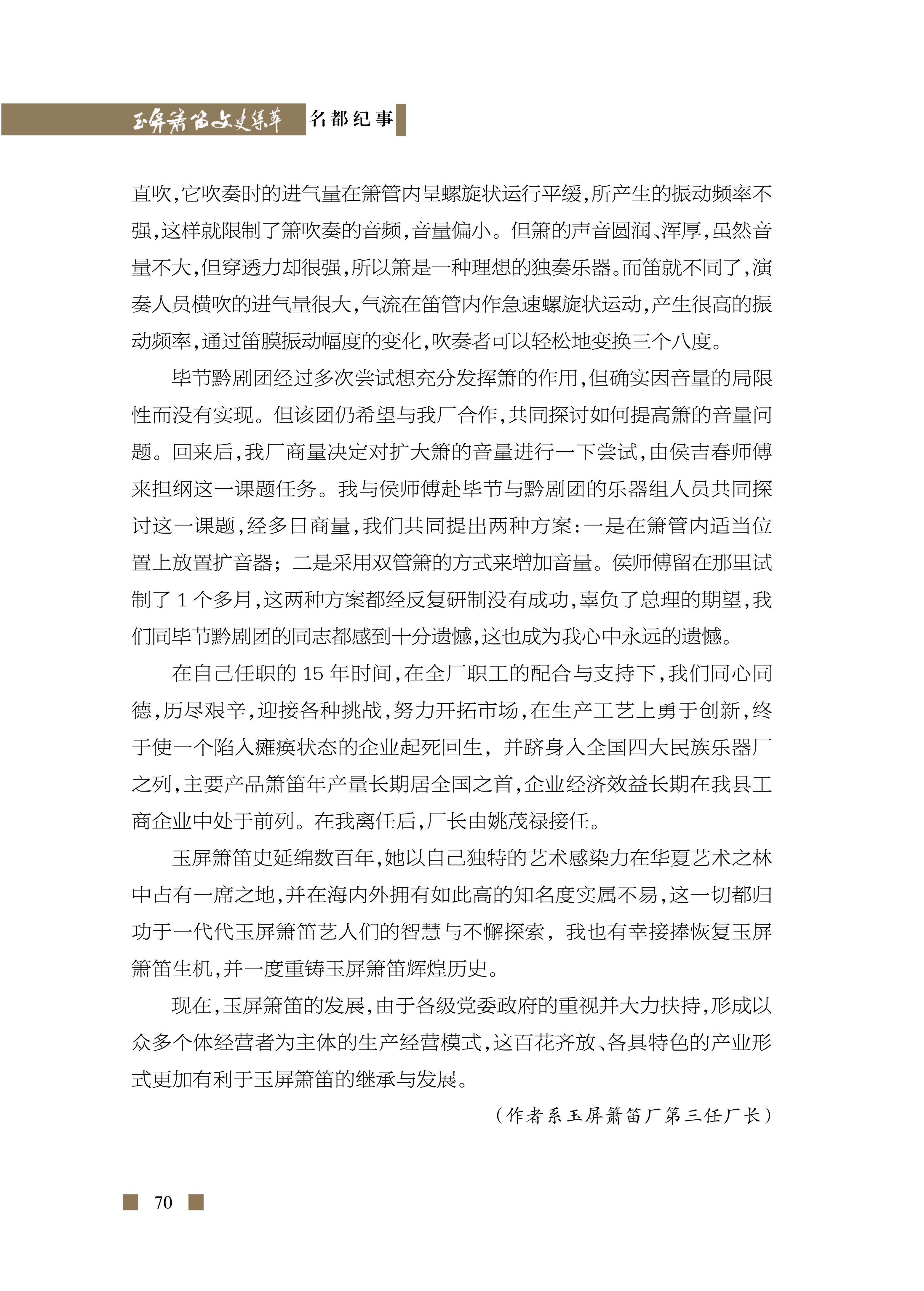 形扁音圆碧玉箫——玉屏扁箫的来历与传承 姚 军