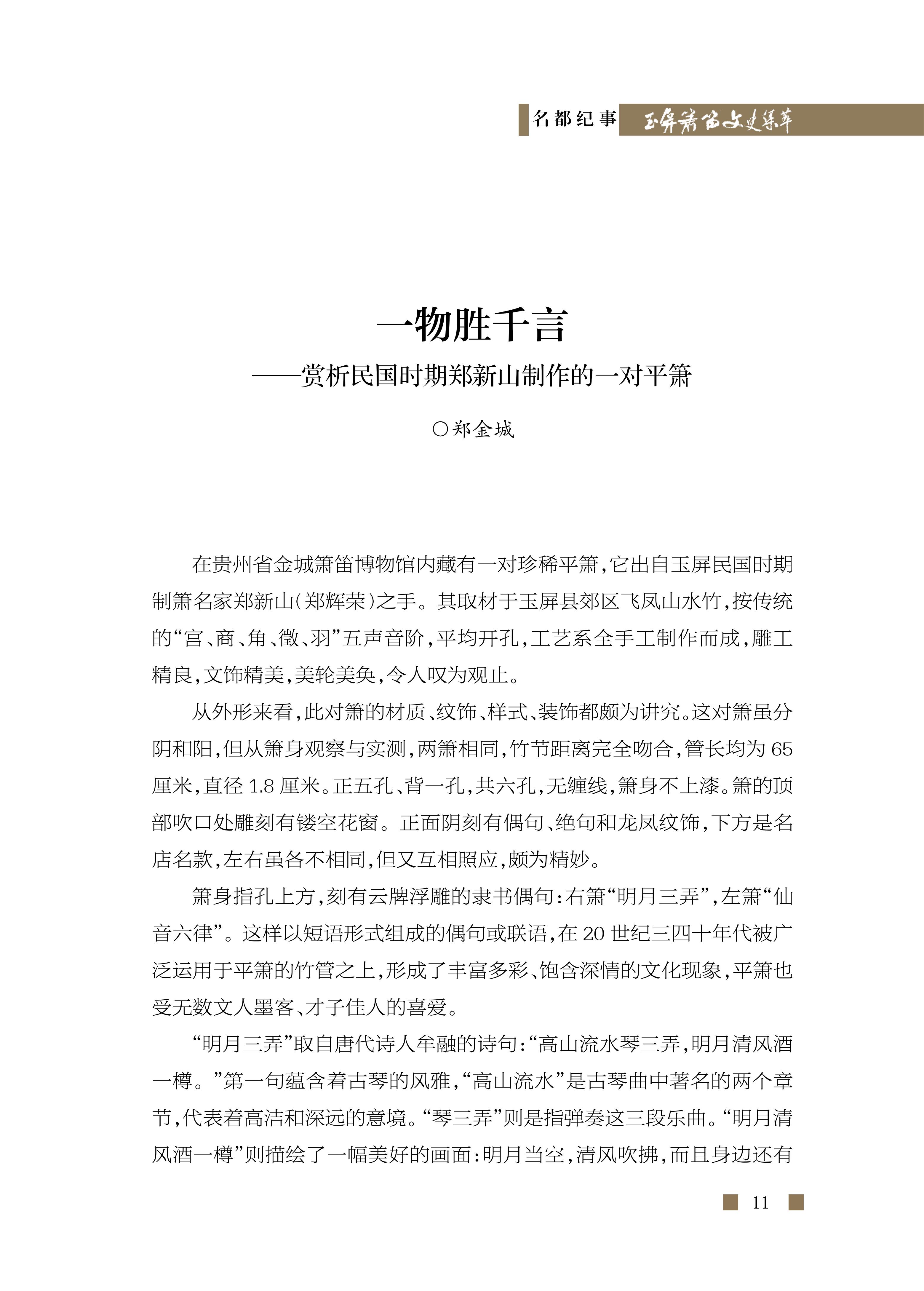 一物胜千言——赏析民国时期郑新山制作的一对平箫 郑金城