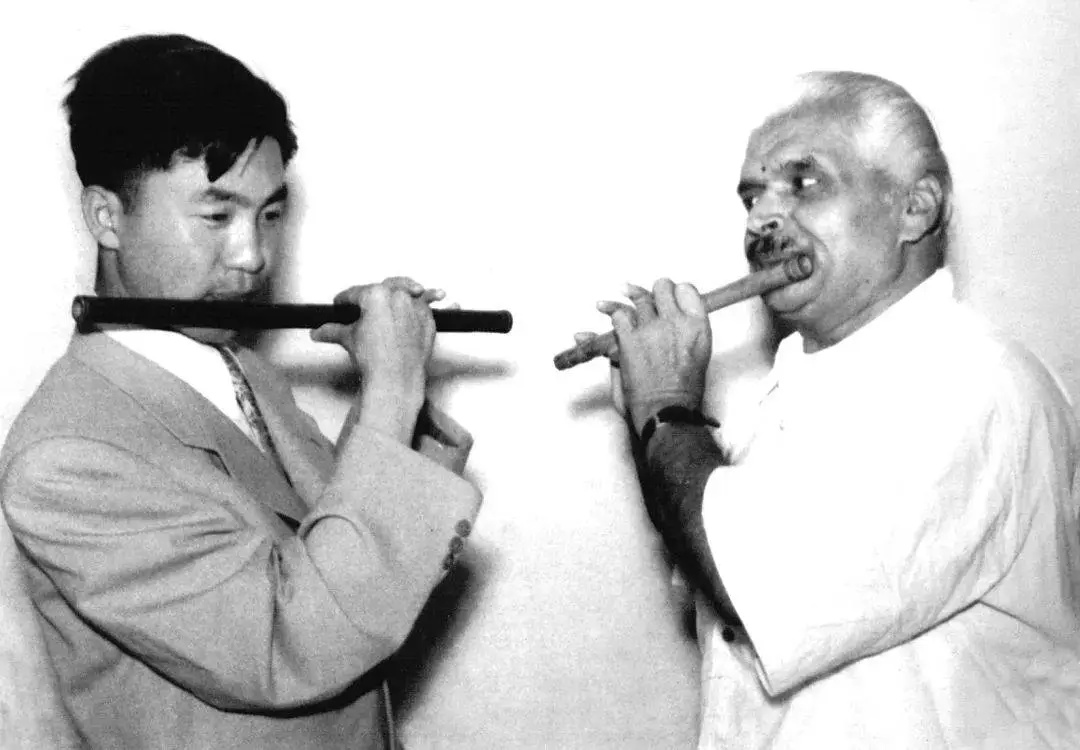 1956年,王铁锤随中国代表团赴印度演出,与当地笛⼦演奏家相互交流切磋技艺
