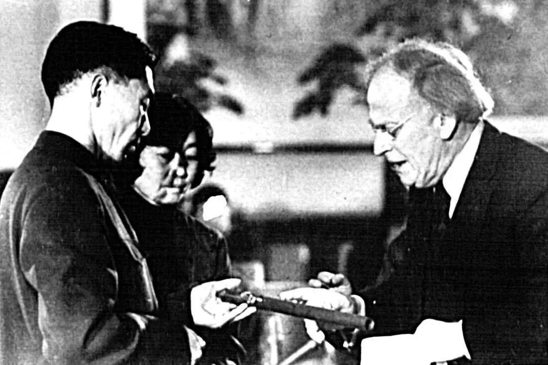 1979年,王铁锤赠给著名小提琴演奏家梅纽因笛⼦