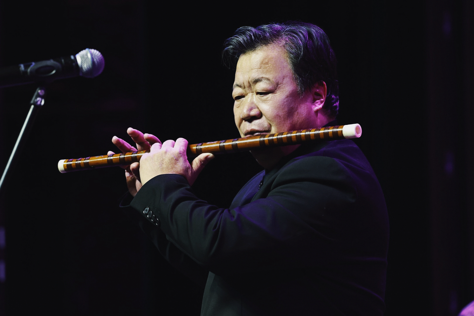 著名青年箫演奏家田龙的箫独奏《飞雪落梅》婉转悠长,以清雅曲调勾勒出飞雪映梅的高洁意境,同时用这首作品纪念本曲的作者、已故著名笛子演奏家张红阳先生;宁英杰、蒋锦雯、张嘉伟、盛家豪、王晴凯五位青年笛子演奏家联袂献上的《春到湘江》,用青春活力演绎湖南花鼓戏的浓郁特色,掀起全场青春风暴;著名笛子演奏家李增光先生带来的竹笛经典之作《麦西莱普》,以七孔笛独特技法展现维吾尔族载歌载舞的欢乐场景,“欢乐的节日”氛围感染全场。