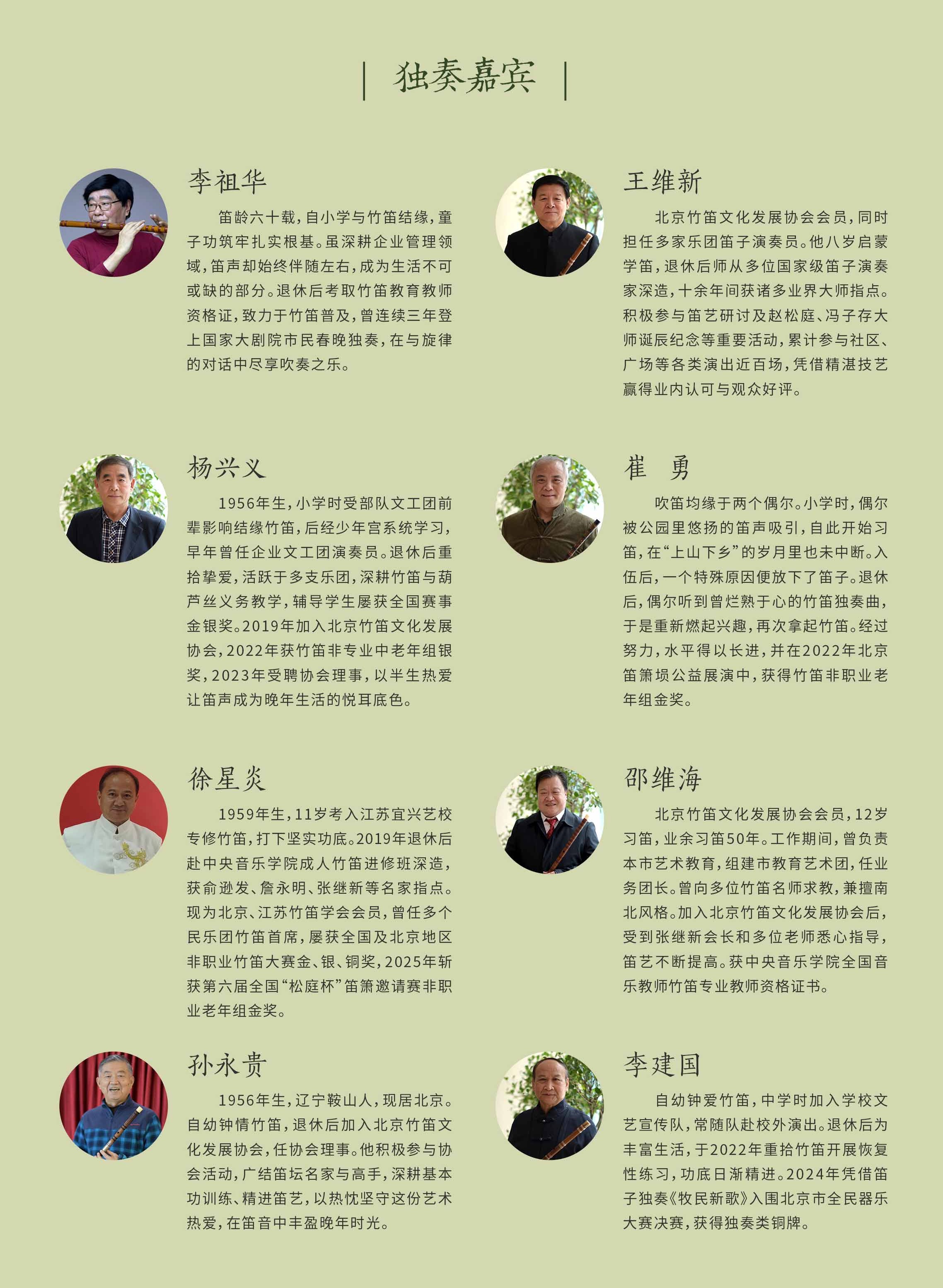 尤为值得点赞的是,王维新、邵维海、李祖华等八位退休业余笛子爱好者,怀揣着对竹笛艺术的赤诚热爱,退休后重拾初心、深耕不辍,不仅刻苦打磨技艺,更耗时许久精心筹备此次演出,用悠扬笛音为退休生活注入滚烫活力,这种 “以乐为伴、不负热爱” 的精神令人动容。而这场音乐会的成功举办,更离不开北京竹笛文化发展协会的深耕细作——自成立以来,协会始终以传承和普及竹笛文化为己任,搭建起专业的笛艺交流平台,通过举办比赛、沙龙、名家讲座等活动,为不同年龄段、不同水平的笛乐爱好者铺路搭桥,更积极开展义务教学、公益展演等活动,让竹笛艺术走进社区、走进大众,既守护了传统国乐的根与魂,又让其在新时代焕发新生机,这份坚守与担当值得充分赞赏。
