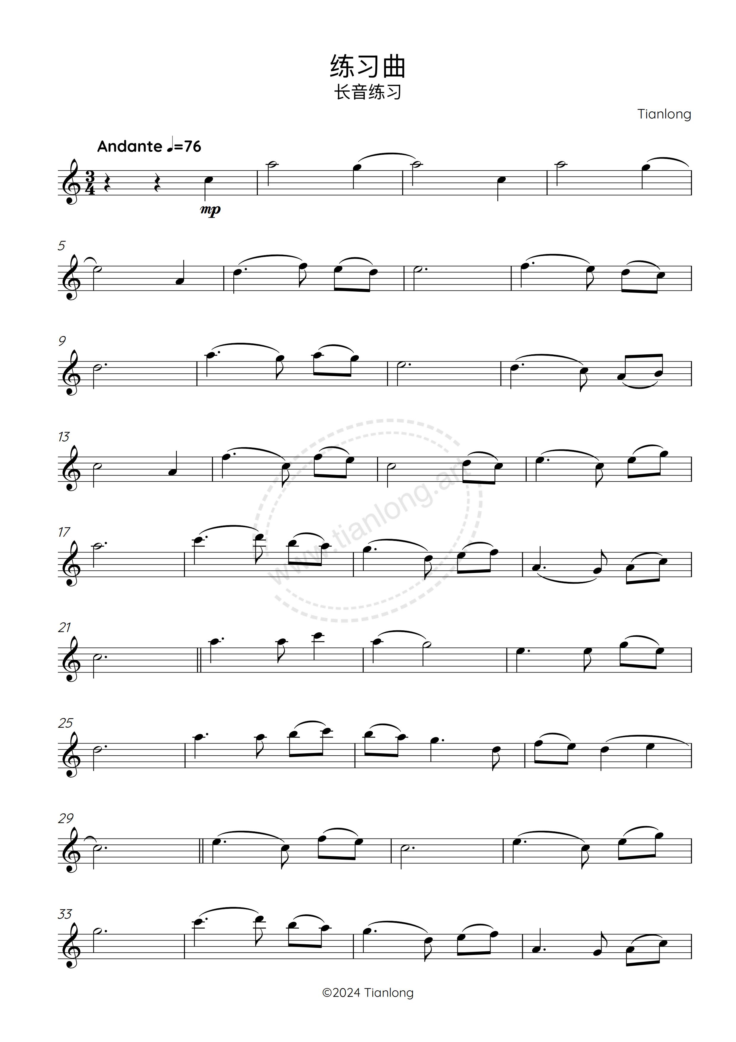 更多练习曲请参考田龙编著的《音之旅——新编中国民族器乐演奏启蒙——箫基础演奏练习》