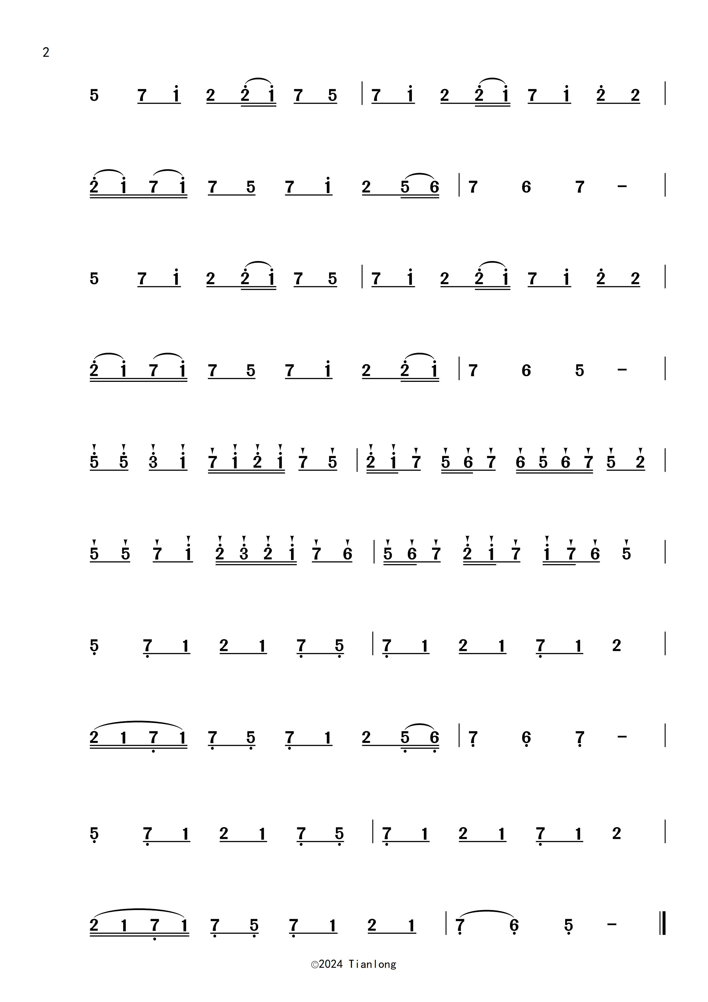 更多练习曲请参考田龙编著的《音之旅——新编中国民族器乐演奏启蒙——箫基础演奏练习》