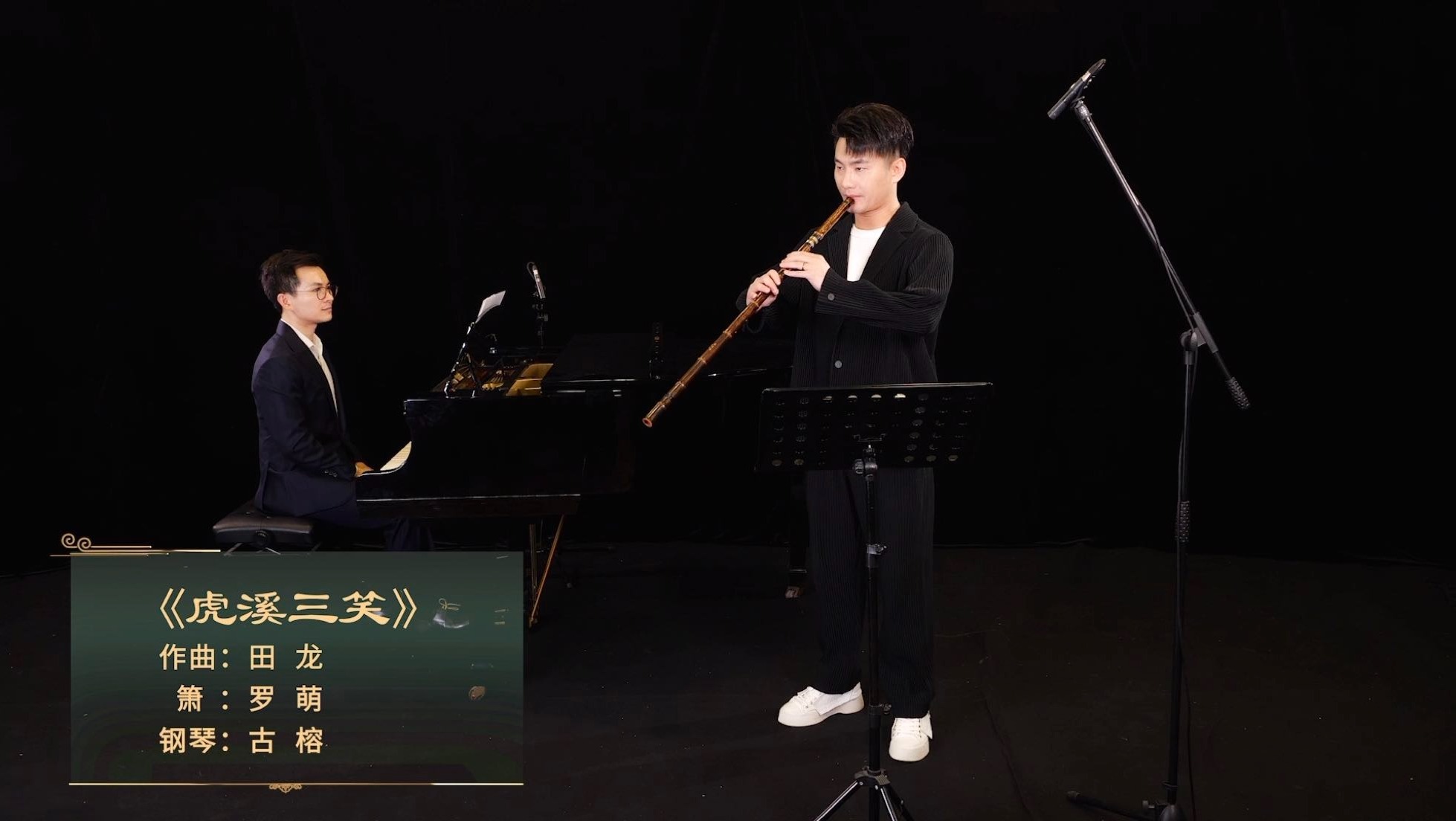 《虎溪三笑》取材于中国传统文化中“虎溪三笑”的经典典故,以音乐描绘东晋高僧慧远、儒者陶渊明、道士陆修静三人于庐山相晤,意趣相投,言谈忘机,乃至送客过虎溪而相视大笑的和谐境界。乐曲巧妙化用佛家的庄重梵呗、道家的逍遥步虚、儒家的中和雅乐等元素,通过音色、节奏与气息的微妙变化,描绘一次跨越思想的“音乐对话”。是对古代佳话的音诗再现,以箫喻理,传递了万物并育、和而不同的东方哲学美感。